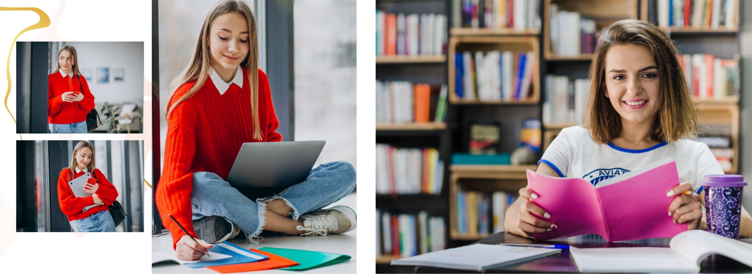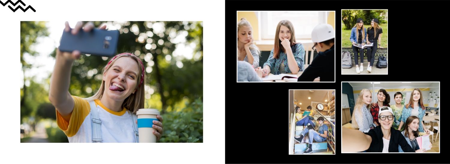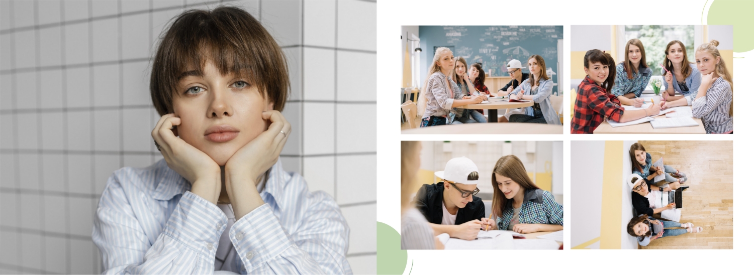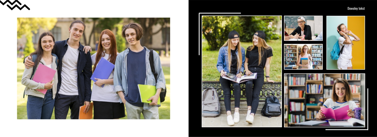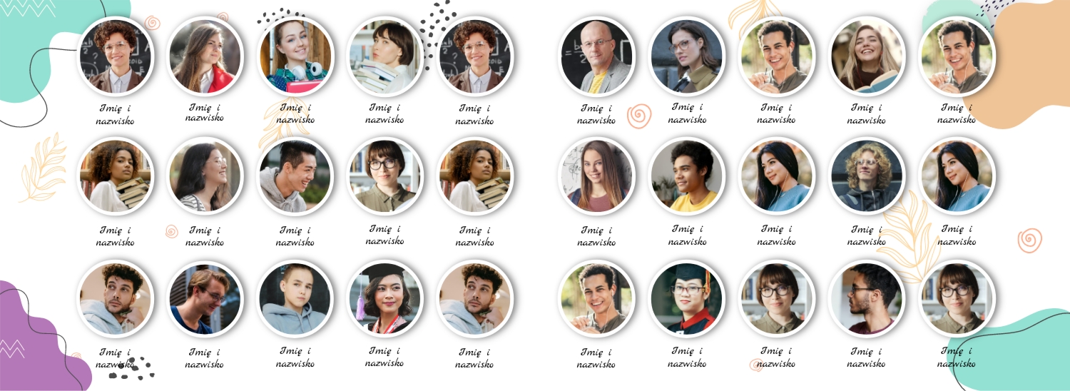 Darmowy szablon fotoksiążki absolwentów uczelni, szkoły, liceum. Utwórz makietę DIY w internetowym kreatorze fotoksiążek.