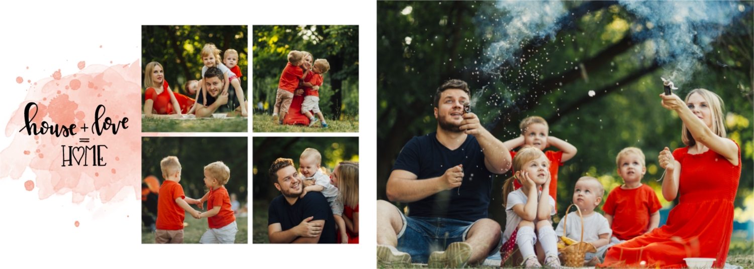 Gotowy szablon poziomej panoramicznej fotoksiążki "miłość mamy" został stworzony, aby zachować najcieplejsze i najbardziej serdeczne chwile. W kreatorze online ten szablon otwiera szerokie możliwości dostosowywania. Możesz dodawać własne zdjęcia w żądanej kolejności, zmieniać podpisy, dopasowywać czcionki i kolorystykę do swojego gustu lub stylu fotografowania. Strony można łatwo edytować: możesz usunąć niepotrzebne elementy, zmienić układ bloków, wstawić wiersze, pamiątkowe napisy, a nawet rysunki dziecka. Dostępna jest również możliwość przesyłania własnych elementów dekoracyjnych-ramek, ikon, tła, dzięki czemu każda fotoksiążka jest naprawdę wyjątkowa. Tworzenie fotoksiążki "miłość mamy" w naszym kreatorze online zamienia się w wzruszający proces twórczy. Ty decydujesz, jak będzie wyglądać Twoja historia, nadajesz jej nastrój i wypełniasz ją treścią. To nie tylko gotowy szablon - to podstawa bardzo osobistego i pięknego projektu, który pozostanie z tobą przez wiele lat.