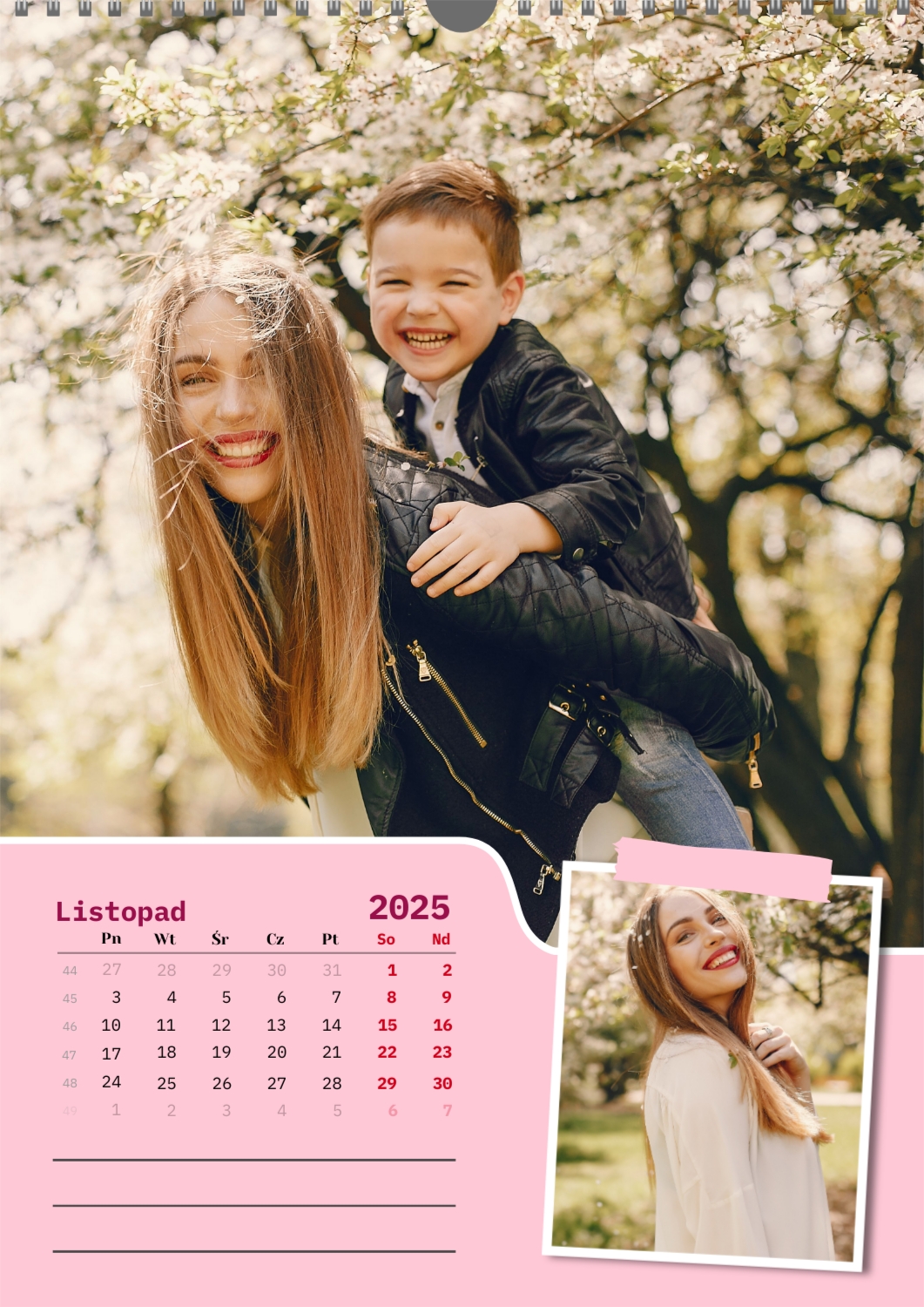 Gotowy szablon kalendarza "miłość mamy" to wzruszający i delikatny projekt, pełen ciepła, troski i komfortu. Jest urządzony w delikatnych pastelowych kolorach z elementami symbolizującymi pieszczoty matki: serca, rysunki dzieci, motywy kwiatowe. Taki kalendarz jest idealny na rodzinne sesje zdjęciowe, Prezenty na dzień matki, a także będzie doskonałym rozwiązaniem dla specjalistów pracujących w dziedzinie rozwoju dziecka, psychologii rodzinnej, Pedagogiki i Edukacji Przedszkolnej. Może być stosowany w przedszkolach, ośrodkach wczesnego rozwoju, prywatnych studiach fotograficznych, a także w organizacjach charytatywnych pomagających rodzinom. W kreatorze online ten szablon można łatwo dostosować do dowolnego formatu i treści. Wszystkie elementy są edytowalne: możesz przesłać własne zdjęcia, zmienić napisy, wybrać czcionkę i jej kolor, dostosować lokalizację miesięcy, dodać ważne daty i wydarzenia. Dzięki elastycznym ustawieniom Kalendarz można łatwo przekształcić w osobisty prezent lub profesjonalne narzędzie — na przykład markowy kalendarz z logo i kontaktami z centrum. Nawet bez doświadczenia w projektowaniu możesz łatwo stworzyć unikalny kalendarz własnymi rękami-interfejs projektanta jest intuicyjny, wszystkie zmiany są wyświetlane od razu, a szablon zachowuje harmonię i styl nawet przy dużym przeprojektowaniu. Kalendarz "miłość mamy" staje się nie tylko ozdobą wnętrza, ale prawdziwym nośnikiem emocji i wspomnień stworzonych z duszą.