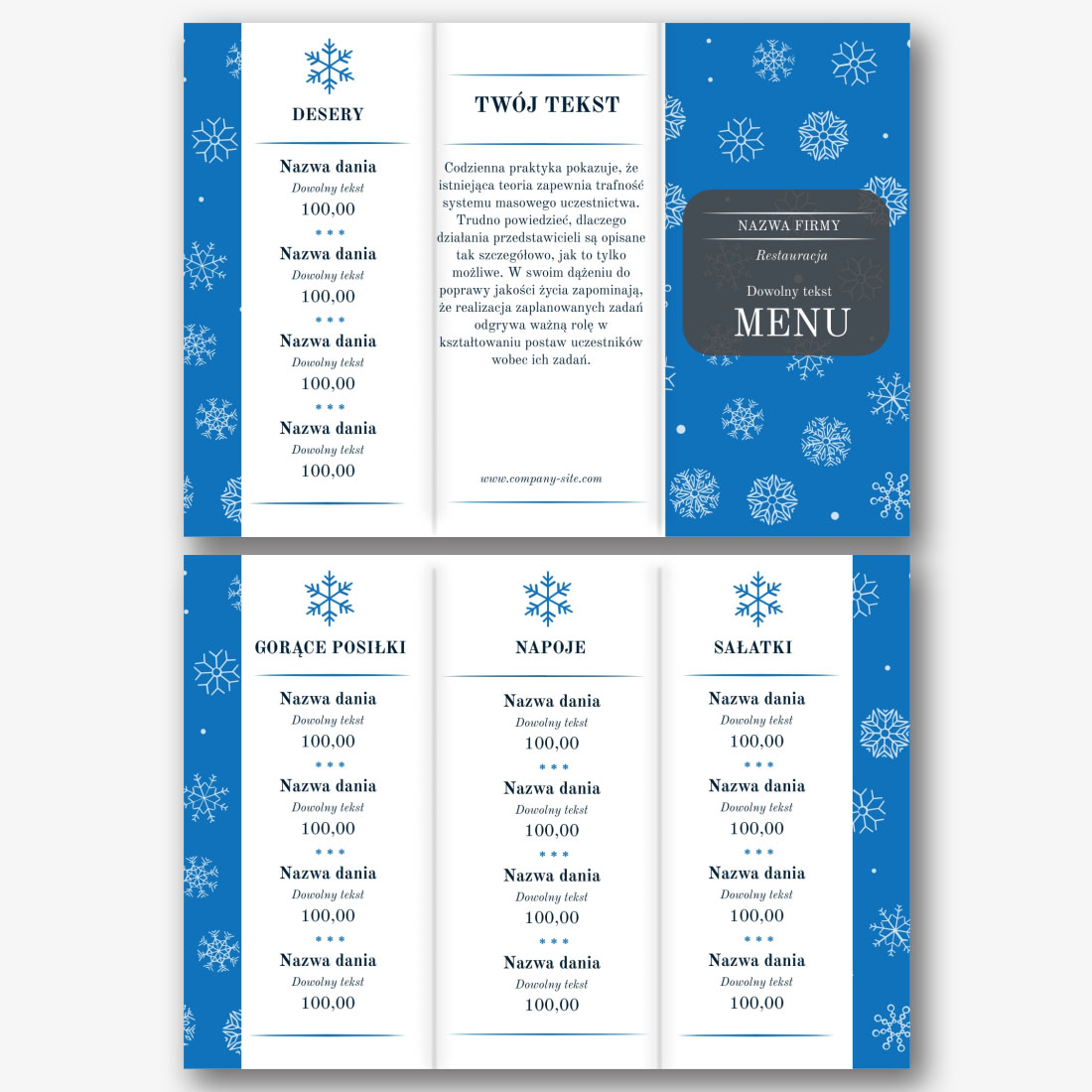 Gotowy szablon składanego menu broszury włoskiej restauracji to wygodne i stylowe narzędzie do tworzenia atrakcyjnego i funkcjonalnego menu, które podkreśli indywidualność lokalu. Ten szablon jest idealny nie tylko dla restauracji, ale także dla kawiarni, barów, firm cateringowych, a także dla food trucków i cukierni. Został stworzony z myślą o nowoczesnych trendach projektowych i sprawia, że menu jest łatwe do uchwycenia, a jednocześnie efektowne. W kreatorze online ten szablon otwiera szerokie możliwości edycji i dostosowania do konkretnych potrzeb. Możesz łatwo zmienić kolorystykę, aby menu było w harmonii z wnętrzem lokalu lub stylem korporacyjnym, a także dodać własne zdjęcia potraw, aby przyciągnąć uwagę klientów i pobudzić apetyt.