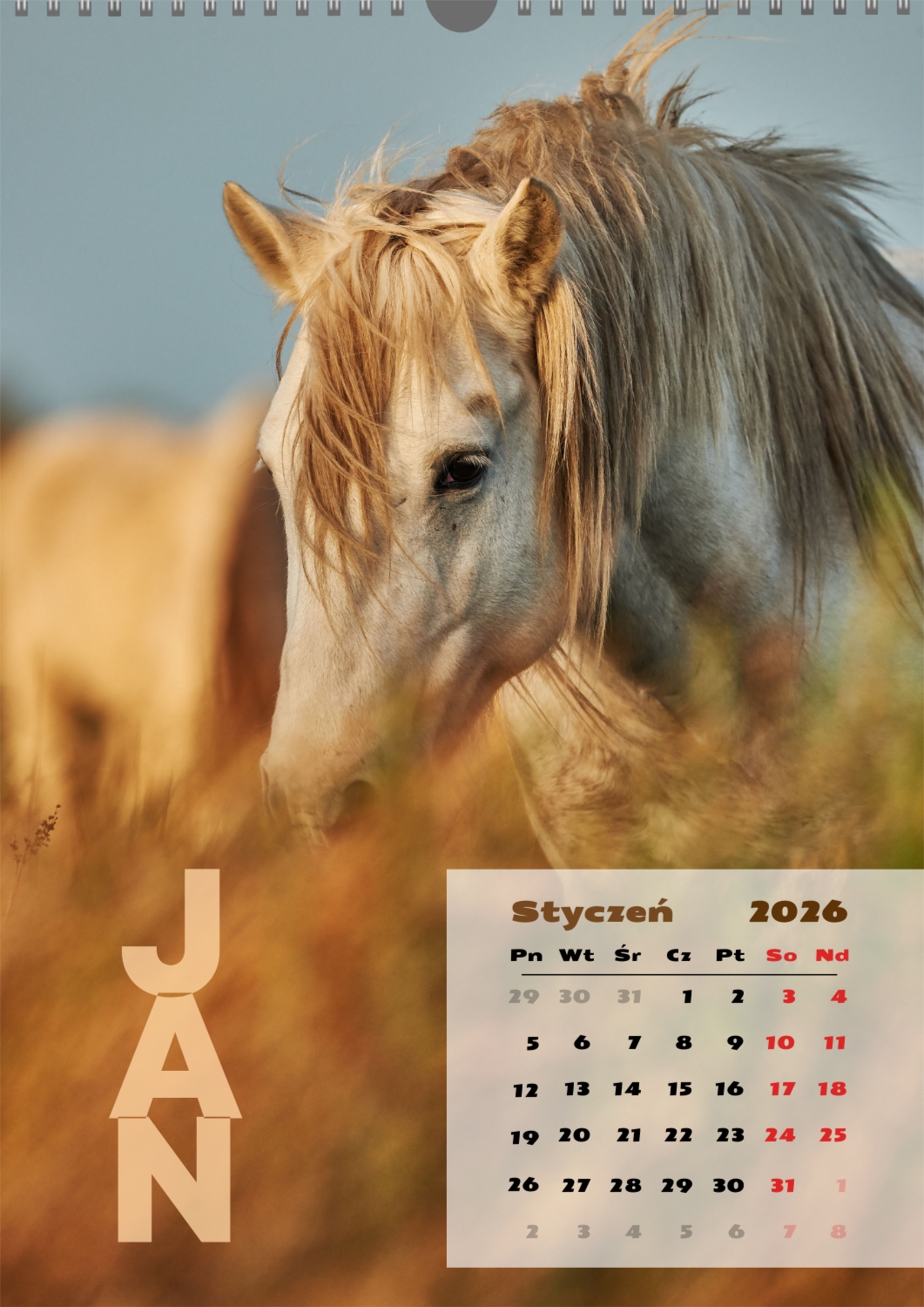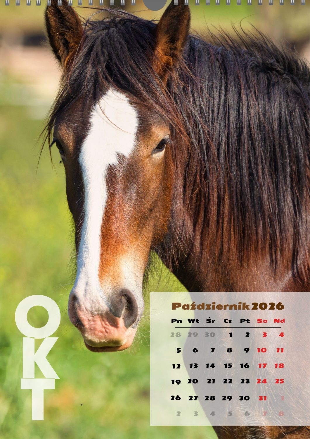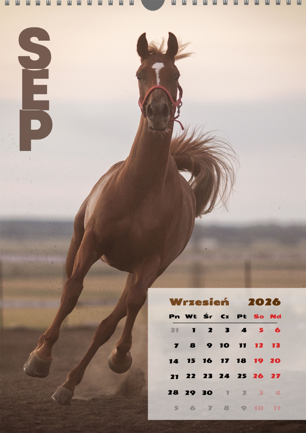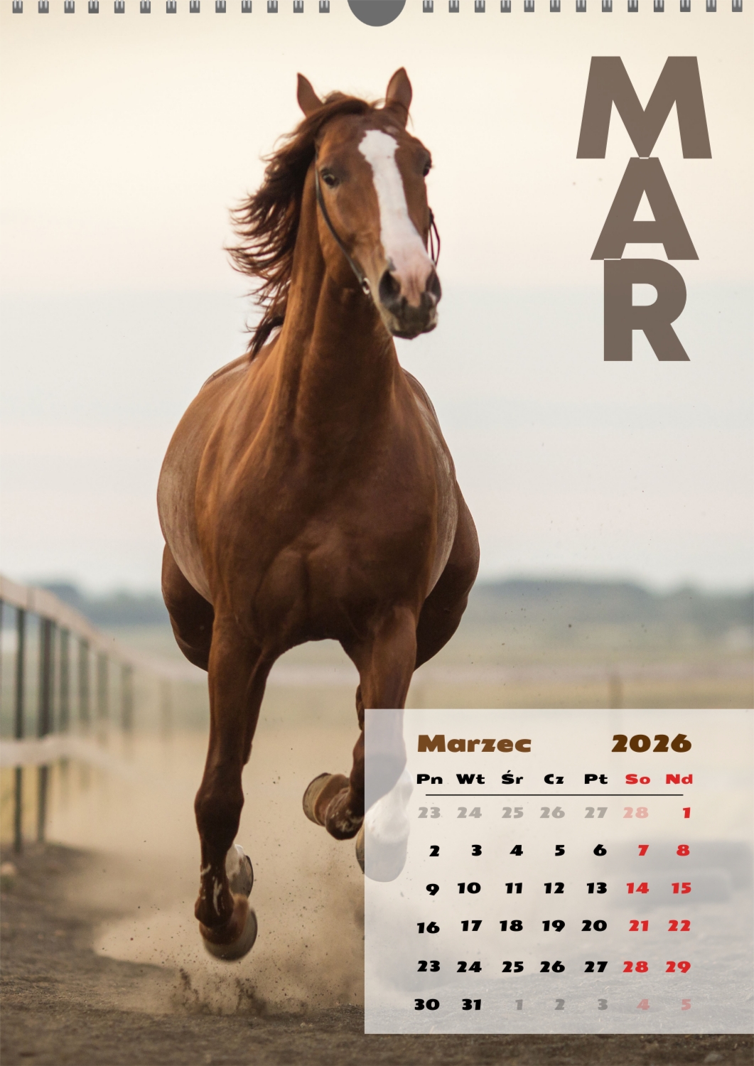 Gotowy szablon kalendarza ściennego z końmi został stworzony dla tych, którzy cenią naturalną harmonię, dynamikę i symbolikę siły. Obrazy przedstawiają potężne i szlachetne zwierzęta, które kojarzą się z wolnością, dążeniem do przodu i wewnętrzną równowagą. Taki kalendarz jest idealny dla klubów jeździeckich, Farm, ośrodków weterynaryjnych, sklepów zoologicznych, a także dla trenerów, instruktorów, fotografów i wszystkich, którzy pasjonują się jeździectwem lub po prostu kochają konie. Będzie równie odpowiedni zarówno w biurze, jak i we wnętrzu domu, tworząc atmosferę spokoju i inspiracji. W naszym kreatorze online ten szablon można łatwo dostosować do osobistych preferencji. Możesz zamienić zdjęcia na własne zdjęcia koni, dodać logo klubu lub gospodarstwa, zmienić czcionki, kolory i rozmieszczenie elementów. Istnieje możliwość podpisania miesięcy, podkreślenia ważnych dat, świętowania zawodów, treningów, urodzin i innych wydarzeń. Każdy element kalendarza – od tła po drobne szczegóły-można edytować, co pozwala stworzyć naprawdę spersonalizowaną opcję. Kreator online działa tak wygodnie i prosto, jak to możliwe: wszystkie zmiany są wyświetlane jednocześnie, możesz eksperymentować z kompozycjami, wypróbować różne style i zapisać kilka opcji. W rezultacie otrzymujesz unikalny kalendarz ścienny z końmi, który odzwierciedla twój charakter, aktywność zawodową lub wartości osobiste. Taki kalendarz nie tylko stanie się funkcjonalnym asystentem na każdy dzień, ale także ozdobi przestrzeń, przypominając o ruchu do przodu i sile wewnętrznej inspiracji.