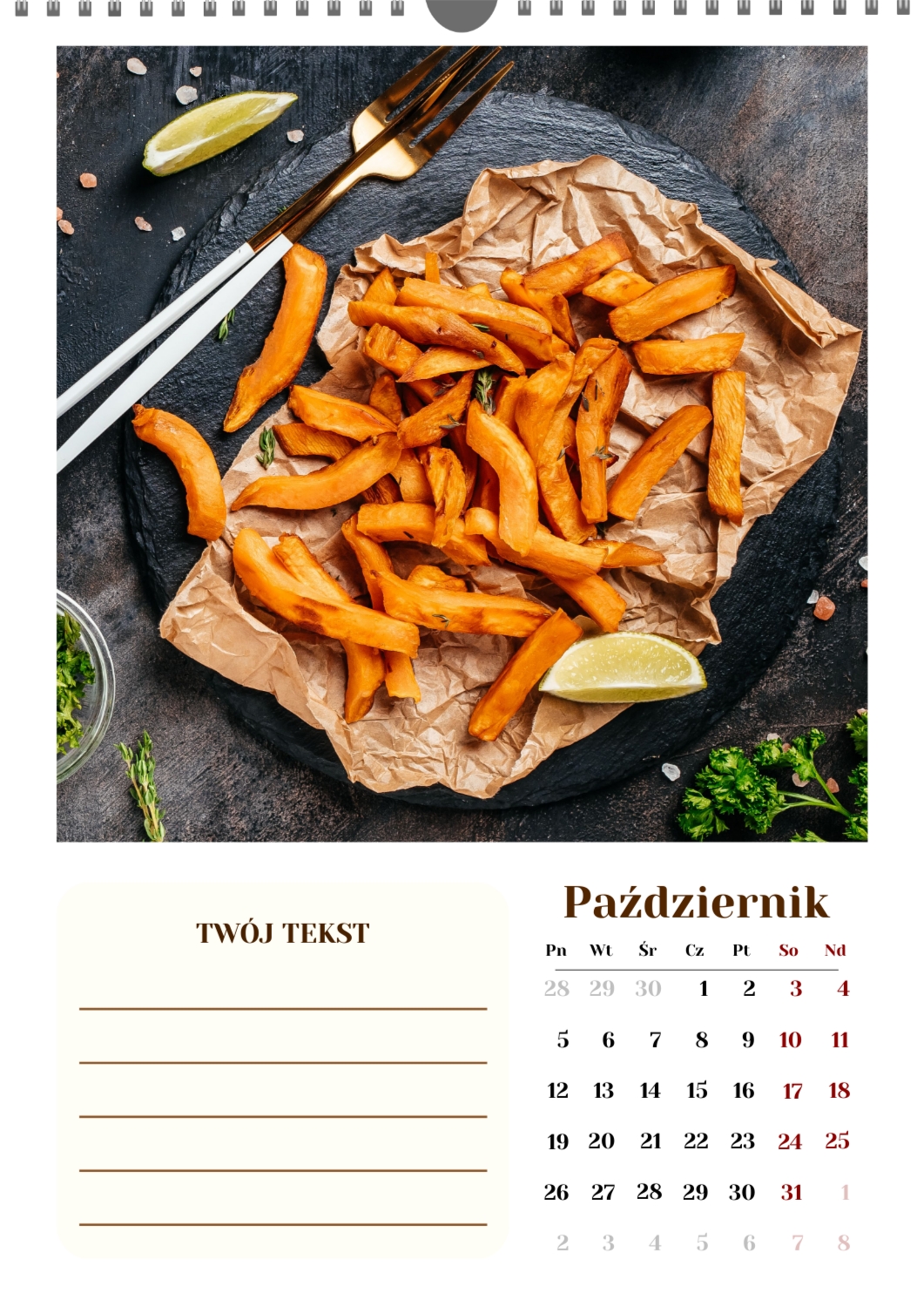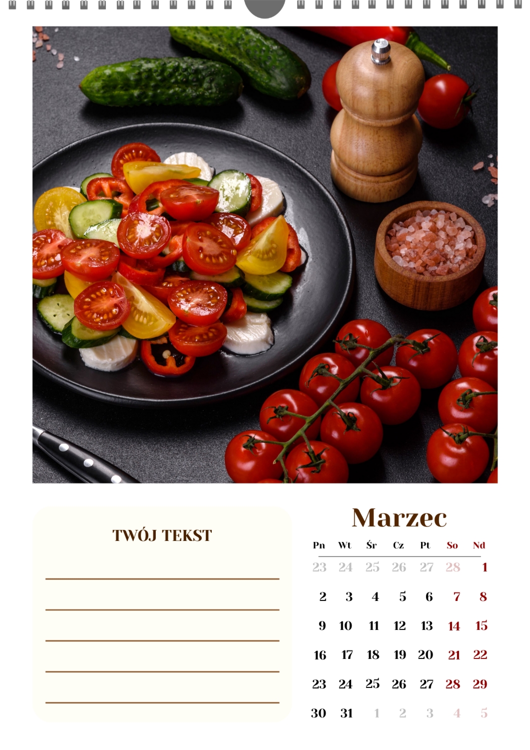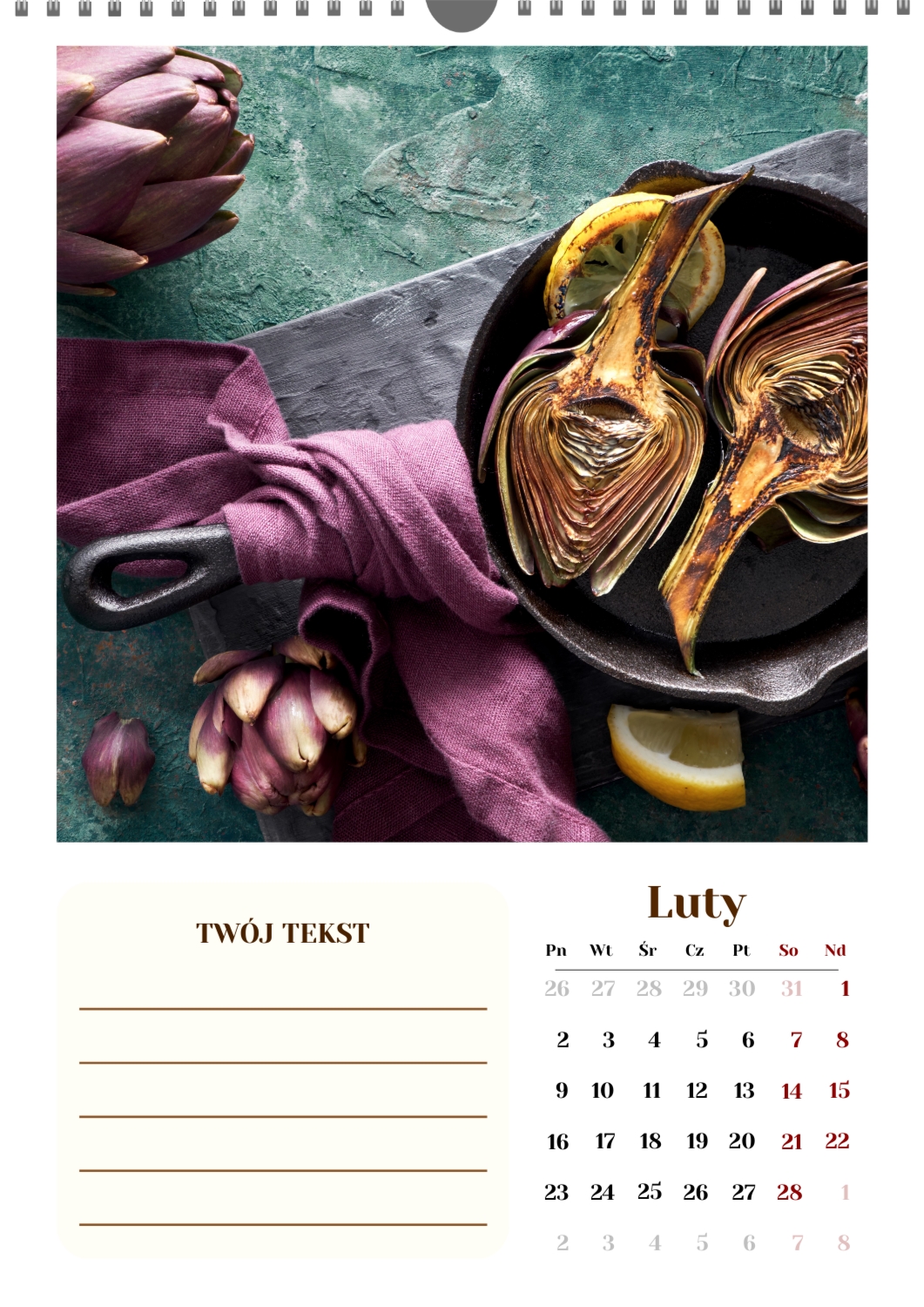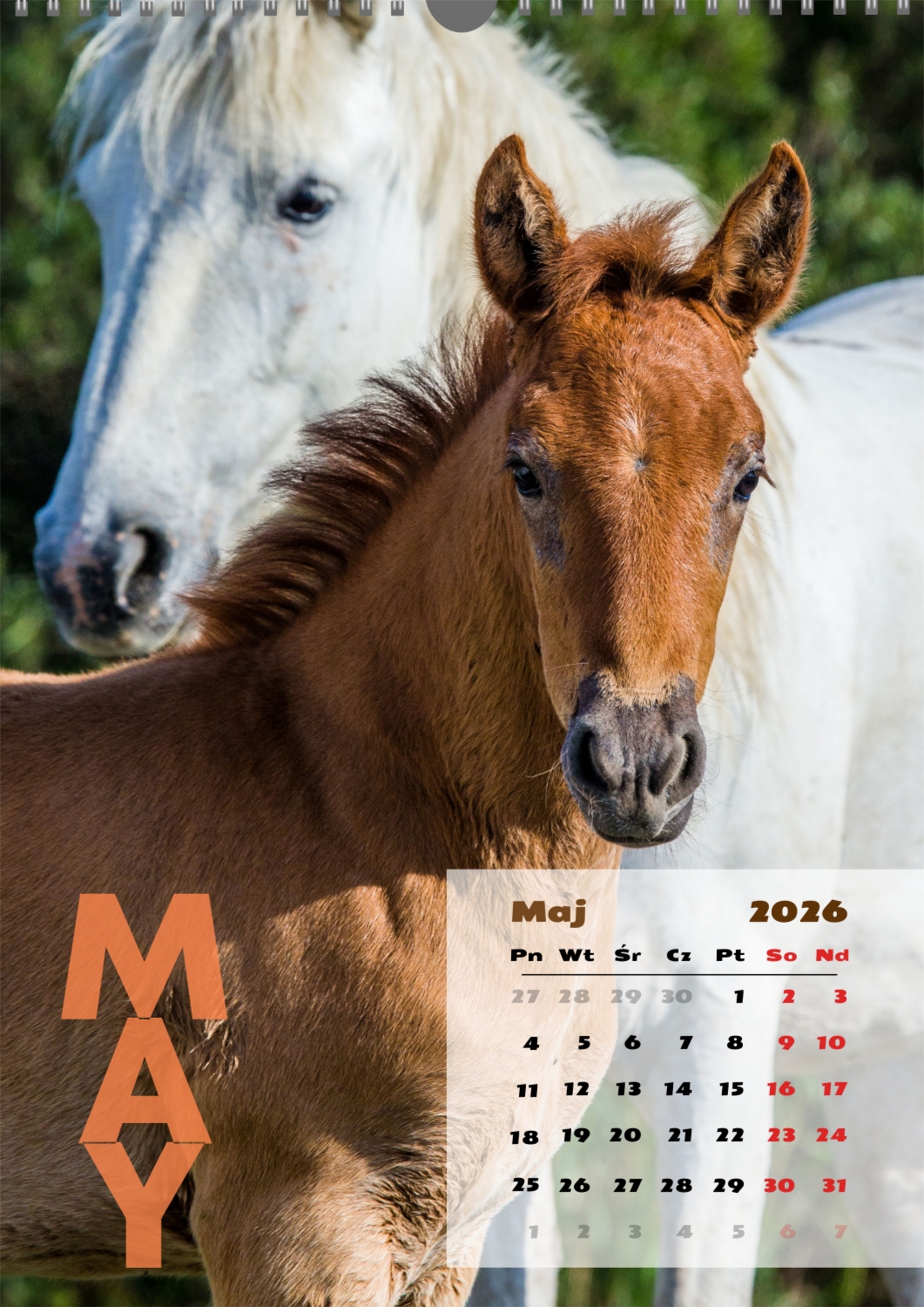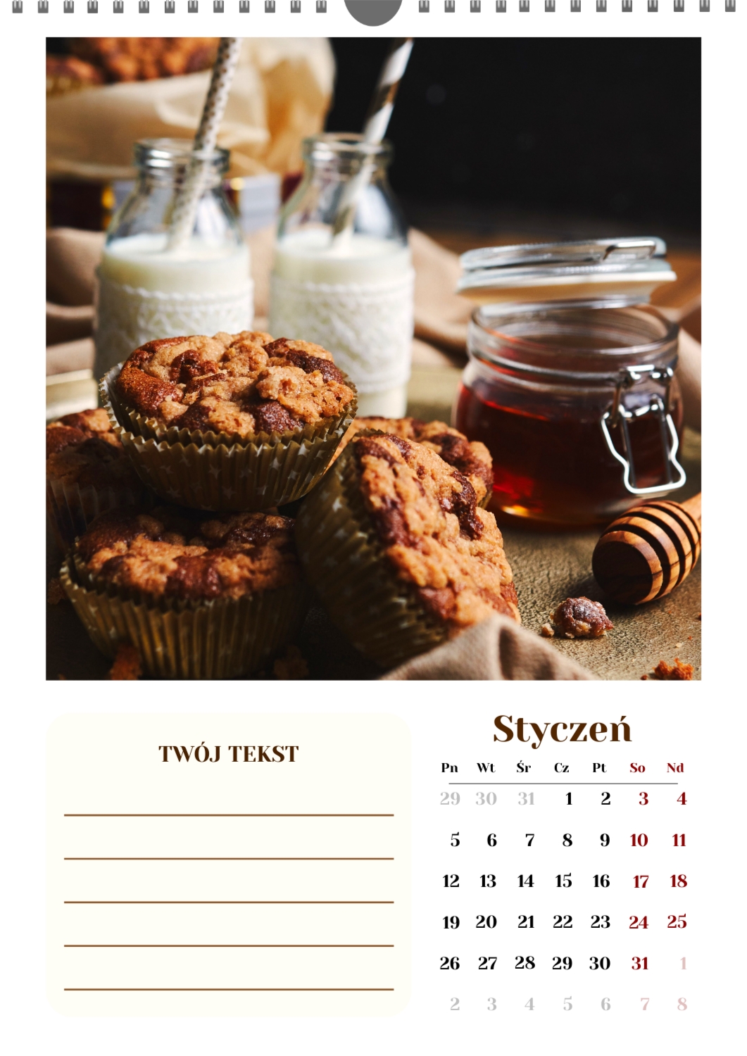 Gotowy szablon kalendarza ściennego z końmi został stworzony dla tych, którzy cenią naturalną harmonię, dynamikę i symbolikę siły. Obrazy przedstawiają potężne i szlachetne zwierzęta, które kojarzą się z wolnością, dążeniem do przodu i wewnętrzną równowagą. Taki kalendarz jest idealny dla klubów jeździeckich, Farm, ośrodków weterynaryjnych, sklepów zoologicznych, a także dla trenerów, instruktorów, fotografów i wszystkich, którzy pasjonują się jeździectwem lub po prostu kochają konie. Będzie równie odpowiedni zarówno w biurze, jak i we wnętrzu domu, tworząc atmosferę spokoju i inspiracji. W naszym kreatorze online ten szablon można łatwo dostosować do osobistych preferencji. Możesz zamienić zdjęcia na własne zdjęcia koni, dodać logo klubu lub gospodarstwa, zmienić czcionki, kolory i rozmieszczenie elementów. Istnieje możliwość podpisania miesięcy, podkreślenia ważnych dat, świętowania zawodów, treningów, urodzin i innych wydarzeń. Każdy element kalendarza – od tła po drobne szczegóły-można edytować, co pozwala stworzyć naprawdę spersonalizowaną opcję. Kreator online działa tak wygodnie i prosto, jak to możliwe: wszystkie zmiany są wyświetlane jednocześnie, możesz eksperymentować z kompozycjami, wypróbować różne style i zapisać kilka opcji. W rezultacie otrzymujesz unikalny kalendarz ścienny z końmi, który odzwierciedla twój charakter, aktywność zawodową lub wartości osobiste. Taki kalendarz nie tylko stanie się funkcjonalnym asystentem na każdy dzień, ale także ozdobi przestrzeń, przypominając o ruchu do przodu i sile wewnętrznej inspiracji.