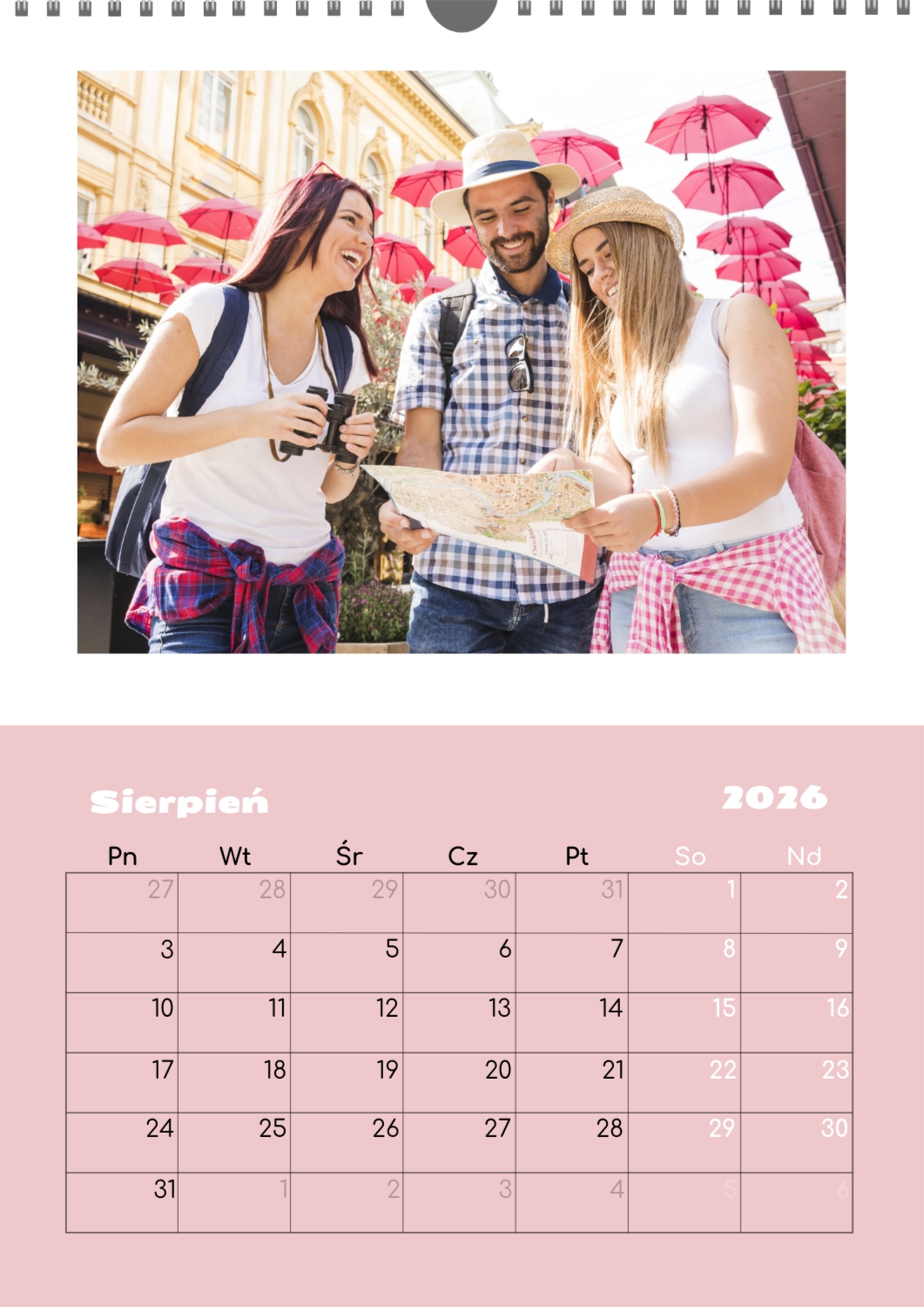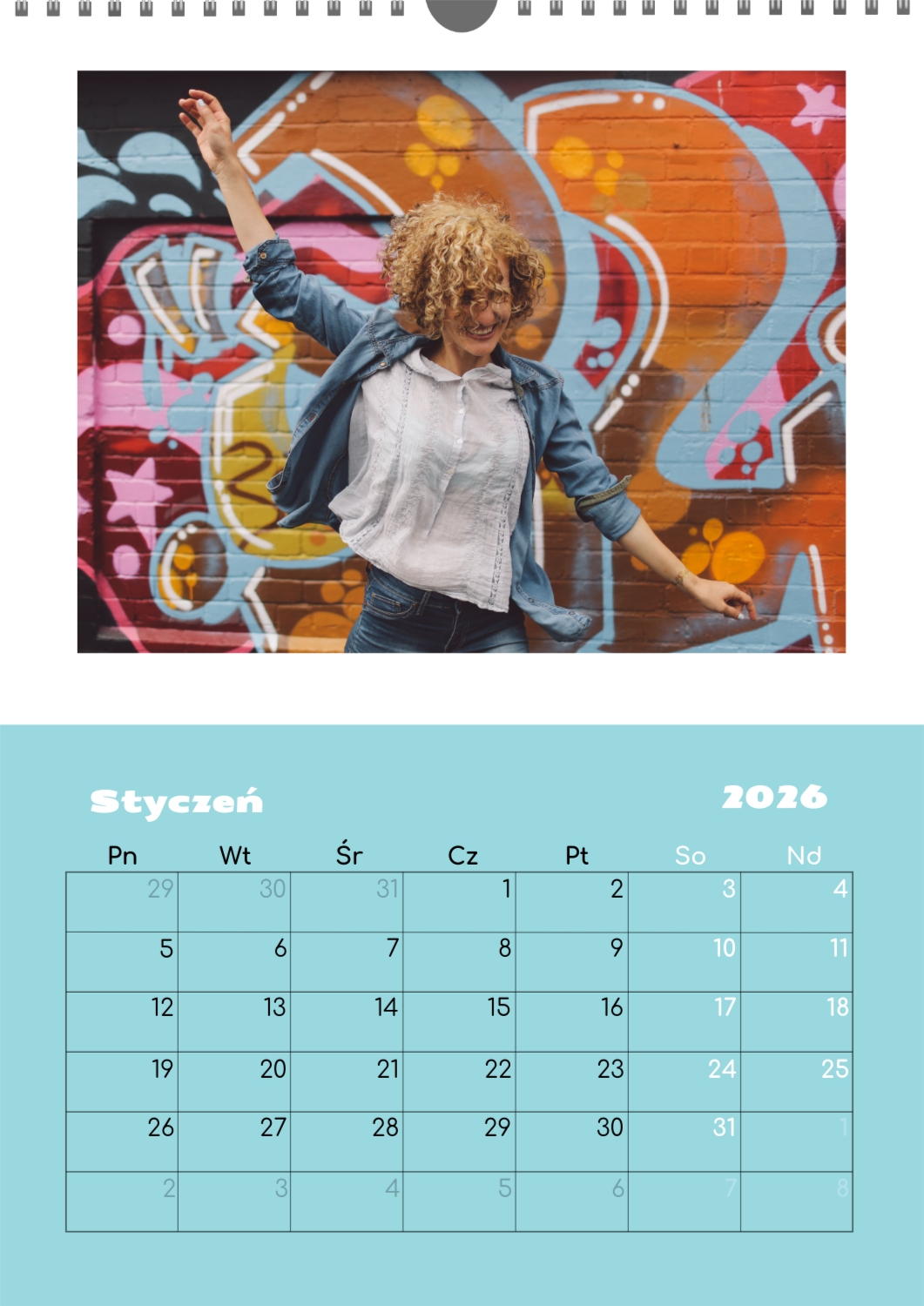Gotowy szablon kalendarza ściennego ze słowami pożegnalnymi na przyszły rok został stworzony dla tych, którzy cenią inspirujący styl wizualny i chcą codziennie otrzymywać małe przypomnienie o celu, motywacji lub ważnym życiowym punkcie orientacyjnym. Taki kalendarz nadaje się do prawie każdej dziedziny: można go umieścić w biurze, kreatywnym studiu, klasie edukacyjnej, salonie kosmetycznym, gabinecie psychologa, domowej przestrzeni roboczej lub dać Klientom, Współpracownikom i partnerom jako mały znak uwagi. Dla specjalistów ze środowisk szkoleniowych, projektowych, marketingowych, doradczych, sprzedażowych lub HR stanie się to szczególnie cenne, ponieważ pomaga utrzymać koncentrację i ustawia emocjonalny nastrój na każdy nowy dzień roku. W naszym kreatorze online szablon można łatwo dostosować do własnego stylu i zadań. Możesz zmienić słowo pożegnalne, zastępując je frazą bliską tobie lub Twojemu zespołowi; dostosuj gamę kolorów do odcieni marki; wymień czcionki, dostosuj nasycenie tła lub dodaj dodatkowe elementy dekoracyjne. Jeśli kalendarz jest przeznaczony do użytku korporacyjnego, wygodnie jest dodać logo firmy, stronę internetową, kontakty, a nawet firmowe wartości wewnętrzne, aby kalendarz stał się częścią tożsamości wizualnej. Do użytku osobistego można przesyłać zdjęcia, wybierać ulubione kolory i stylizować kalendarz w ciepły, inspirujący lub minimalistyczny sposób. Edycja odbywa się bezpośrednio w przeglądarce i nie wymaga skomplikowanych umiejętności projektowania: wszystkie elementy można przeciągać, zmieniać ich rozmiar, obracać, usuwać lub uzupełniać. Rezultatem jest całkowicie unikalny kalendarz ścienny DIY, który nie tylko ozdobi przestrzeń, ale także stanie się miękkim, ale pewnym przypomnieniem wybranego kierunku na nadchodzący rok.