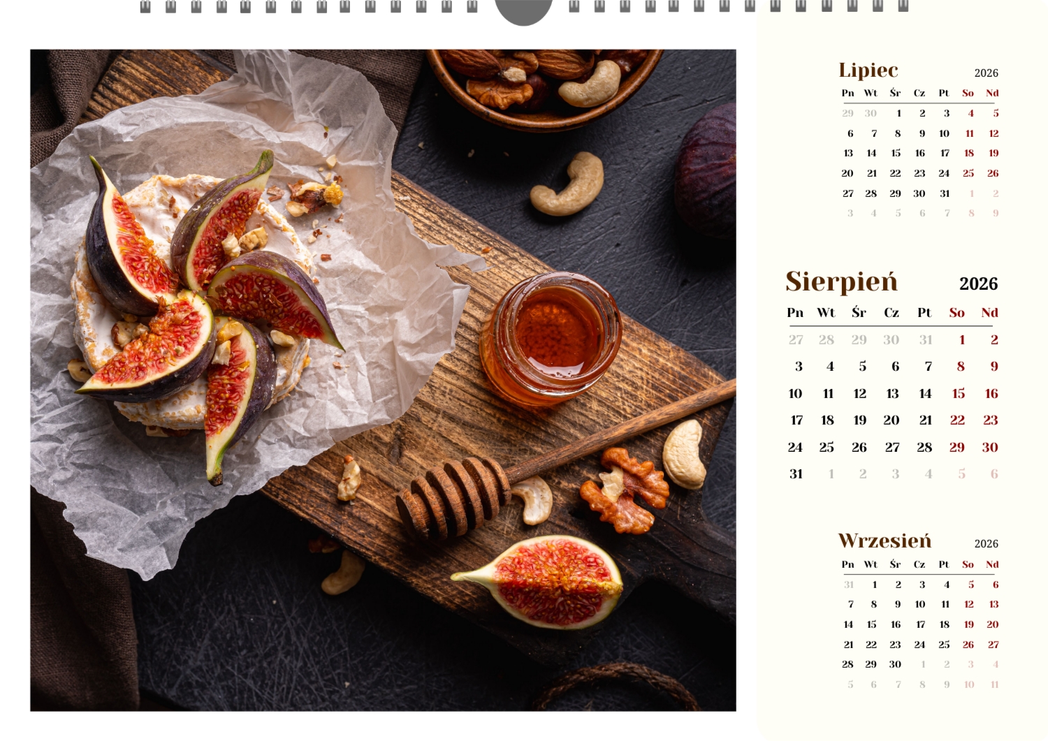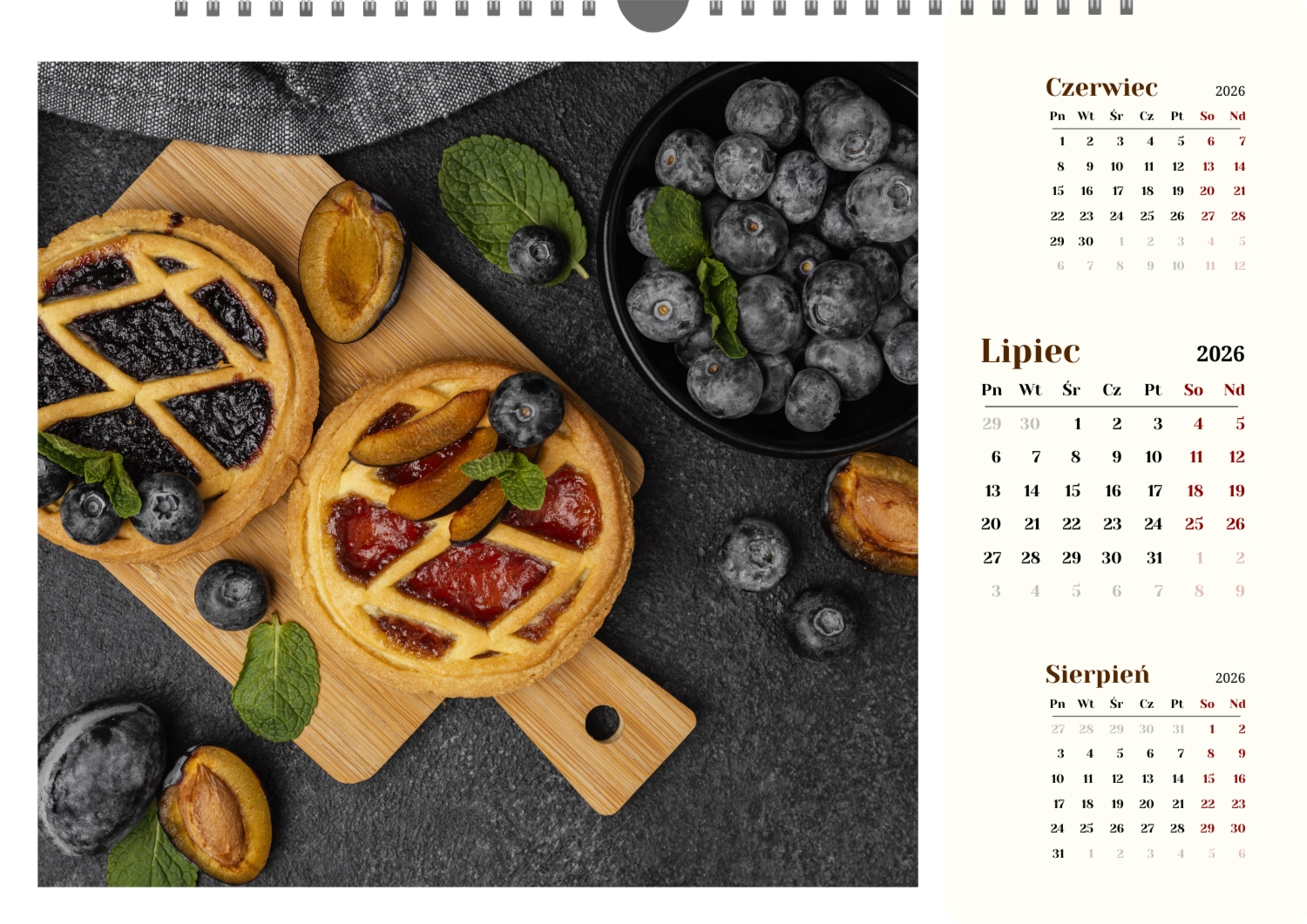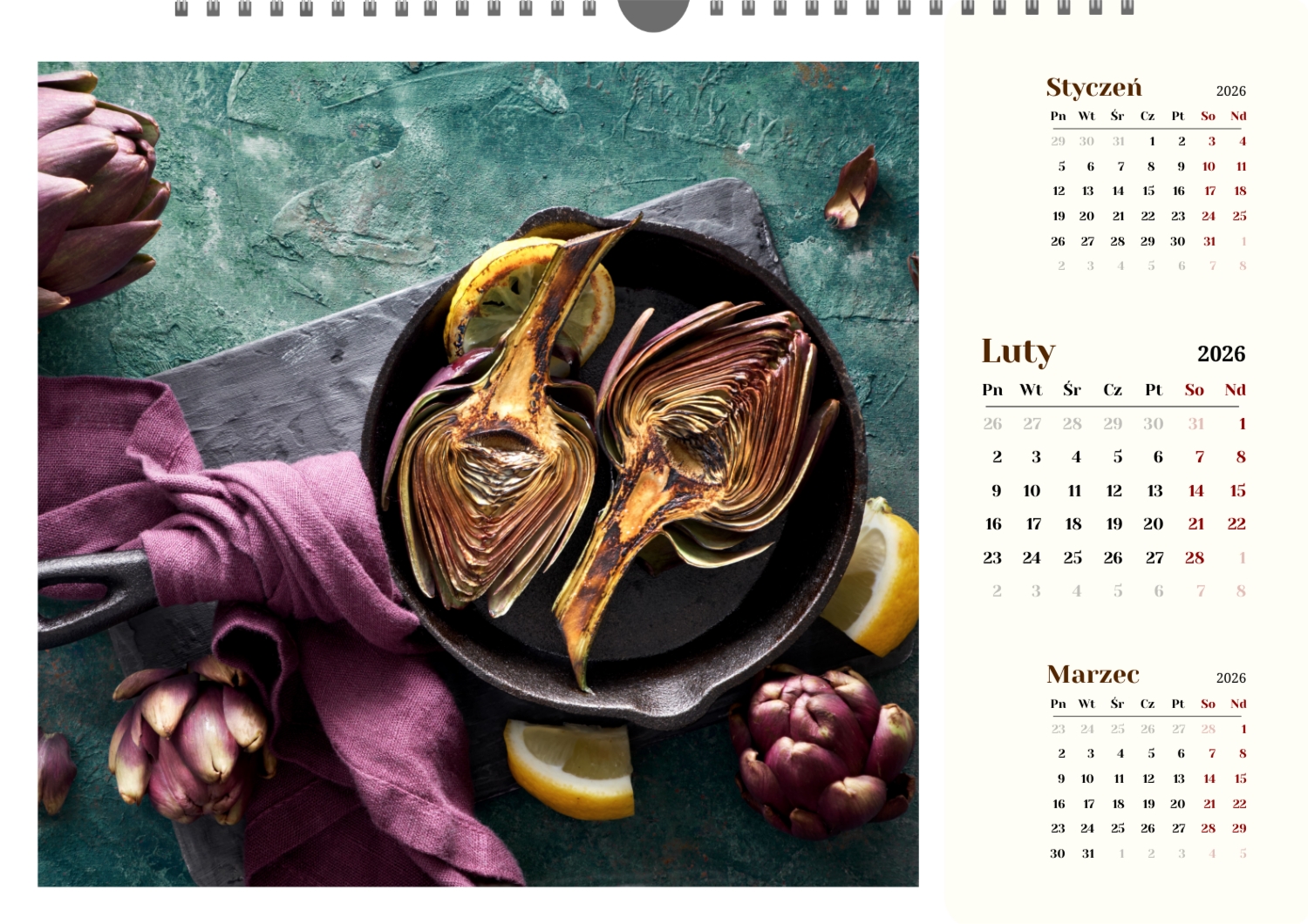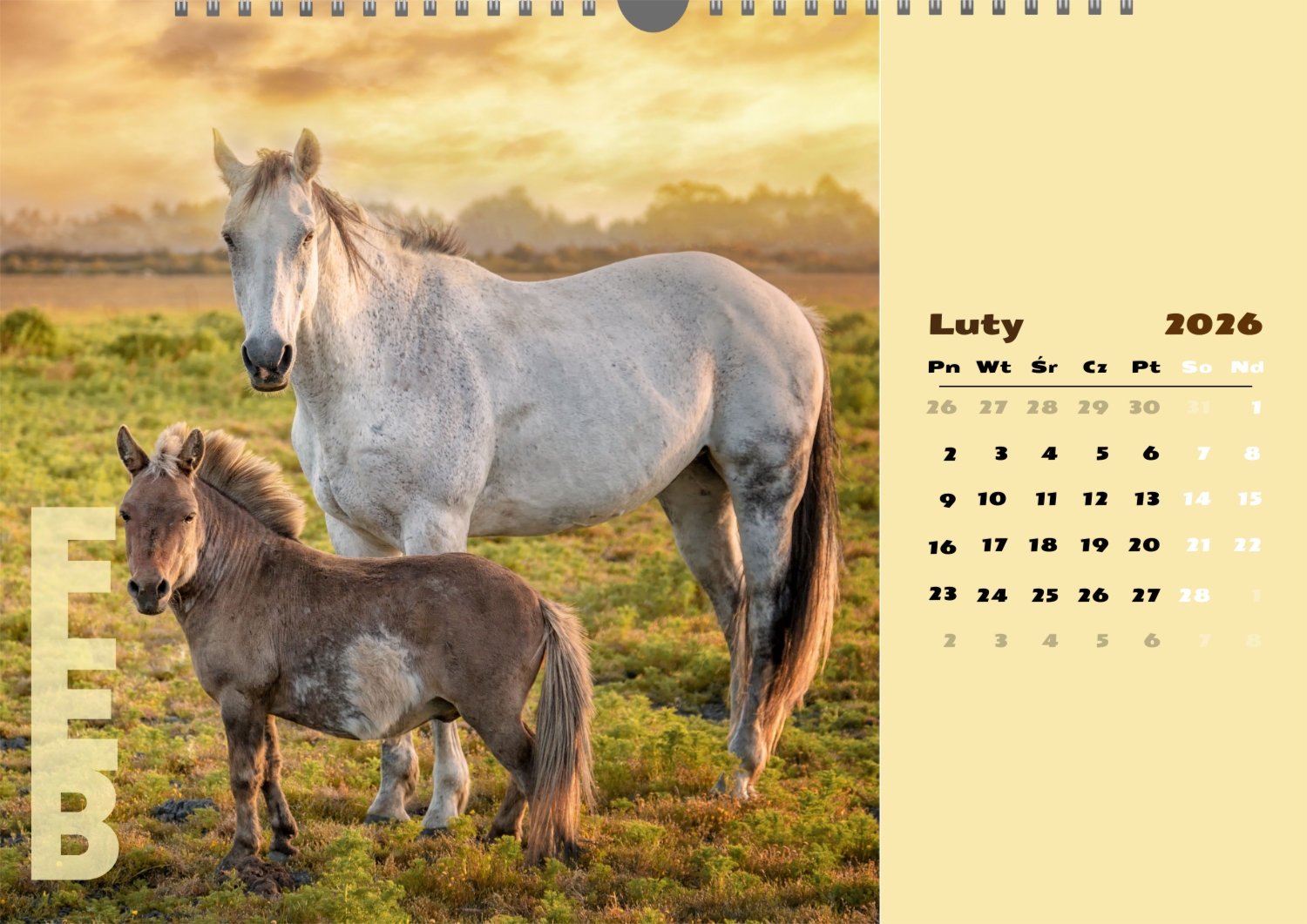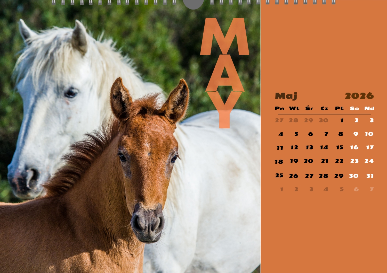 Gotowy szablon kalendarza ściennego z końmi został stworzony dla tych, którzy cenią naturalną harmonię, dynamikę i symbolikę siły. Obrazy przedstawiają potężne i szlachetne zwierzęta, które kojarzą się z wolnością, dążeniem do przodu i wewnętrzną równowagą. Taki kalendarz jest idealny dla klubów jeździeckich, Farm, ośrodków weterynaryjnych, sklepów zoologicznych, a także dla trenerów, instruktorów, fotografów i wszystkich, którzy pasjonują się jeździectwem lub po prostu kochają konie. Będzie równie odpowiedni zarówno w biurze, jak i we wnętrzu domu, tworząc atmosferę spokoju i inspiracji. W naszym kreatorze online ten szablon można łatwo dostosować do osobistych preferencji. Możesz zamienić zdjęcia na własne zdjęcia koni, dodać logo klubu lub gospodarstwa, zmienić czcionki, kolory i rozmieszczenie elementów. Istnieje możliwość podpisania miesięcy, podkreślenia ważnych dat, świętowania zawodów, treningów, urodzin i innych wydarzeń. Każdy element kalendarza – od tła po drobne szczegóły-można edytować, co pozwala stworzyć naprawdę spersonalizowaną opcję. Kreator online działa tak wygodnie i prosto, jak to możliwe: wszystkie zmiany są wyświetlane jednocześnie, możesz eksperymentować z kompozycjami, wypróbować różne style i zapisać kilka opcji.