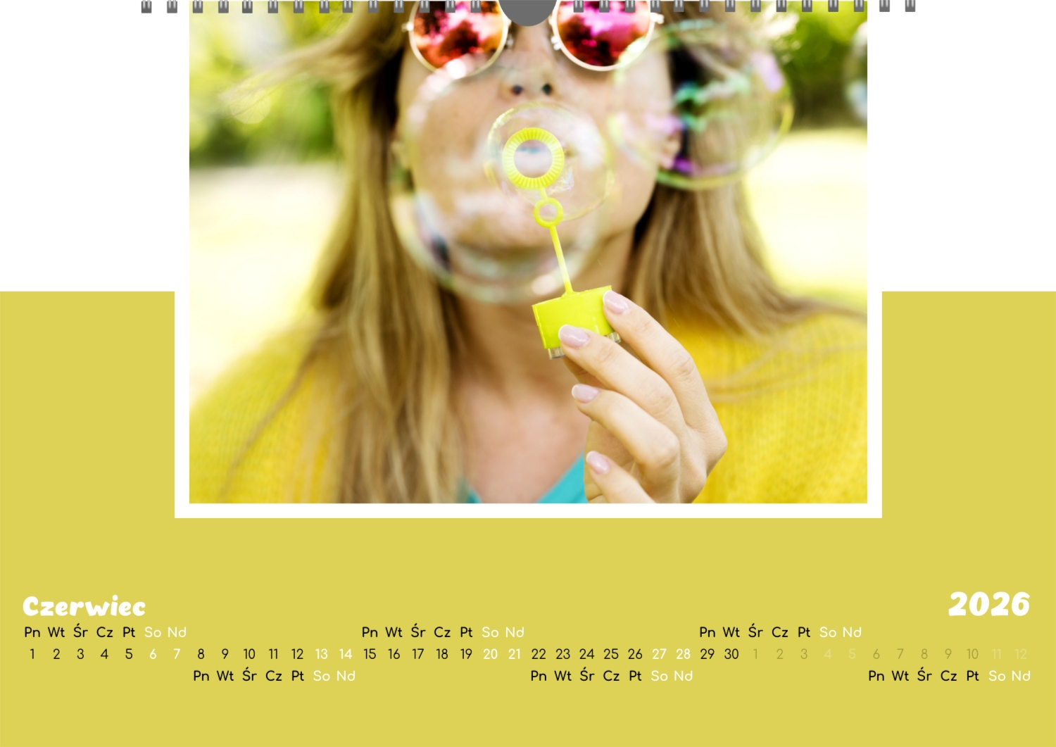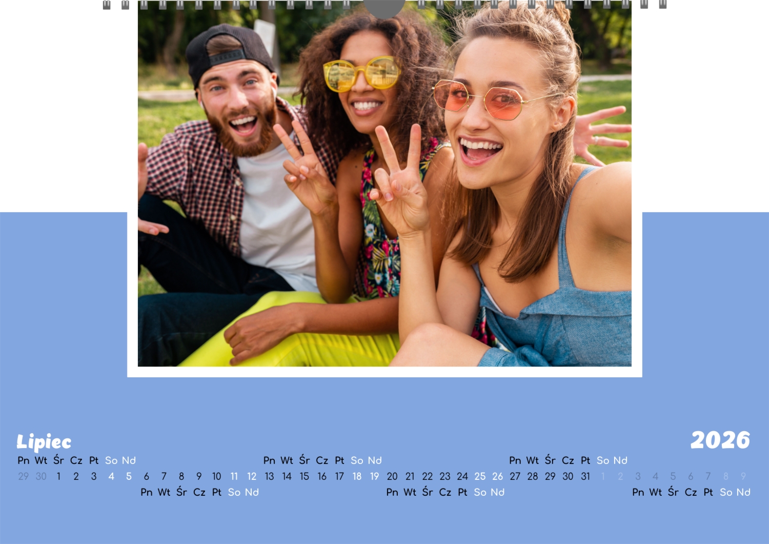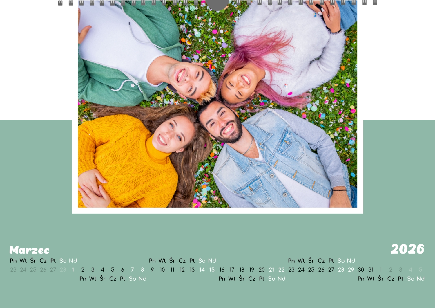 Gotowy szablon ściennego kalendarza poziomego z pożegnalnym słowem na przyszły rok został stworzony dla tych, którzy cenią inspirujący styl wizualny i chcą codziennie otrzymywać małe przypomnienie o celu, motywacji lub ważnym życiowym punkcie orientacyjnym. W naszym kreatorze online szablon można łatwo dostosować do własnego stylu i zadań. Możesz zmienić słowo pożegnalne, zastępując je frazą bliską tobie lub Twojemu zespołowi; dostosuj gamę kolorów do odcieni marki; wymień czcionki, dostosuj nasycenie tła lub dodaj dodatkowe elementy dekoracyjne. Jeśli kalendarz jest przeznaczony do użytku korporacyjnego, wygodnie jest dodać logo firmy, stronę internetową, kontakty, a nawet firmowe wartości wewnętrzne, aby kalendarz stał się częścią tożsamości wizualnej. Do użytku osobistego można przesyłać zdjęcia, wybierać ulubione kolory i stylizować kalendarz w ciepły, inspirujący lub minimalistyczny sposób. Edycja odbywa się bezpośrednio w przeglądarce i nie wymaga skomplikowanych umiejętności projektowania: wszystkie elementy można przeciągać, zmieniać ich rozmiar, obracać, usuwać lub uzupełniać. Rezultatem jest całkowicie unikalny kalendarz ścienny DIY, który nie tylko ozdobi przestrzeń, ale także stanie się miękkim, ale pewnym przypomnieniem wybranego kierunku na nadchodzący rok.