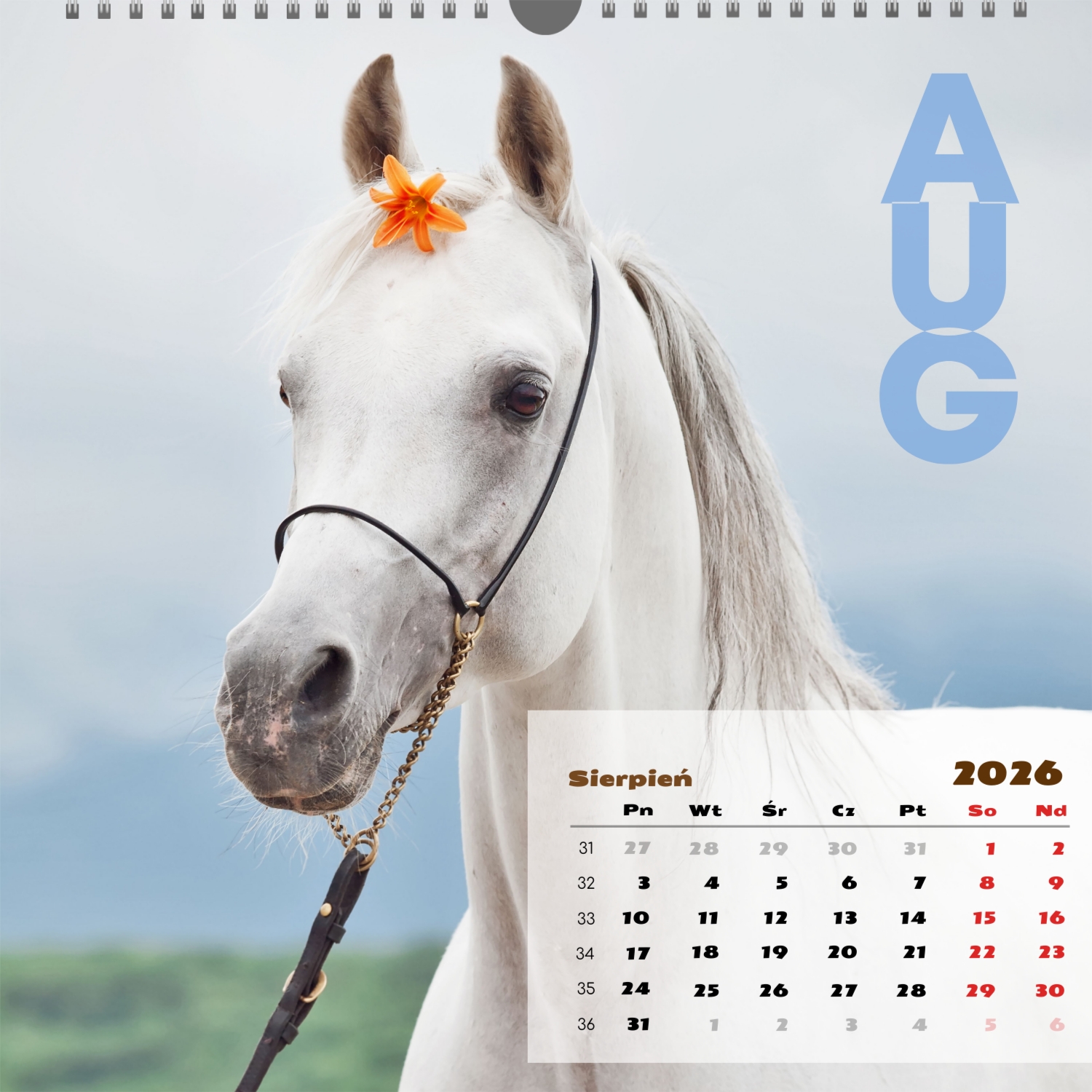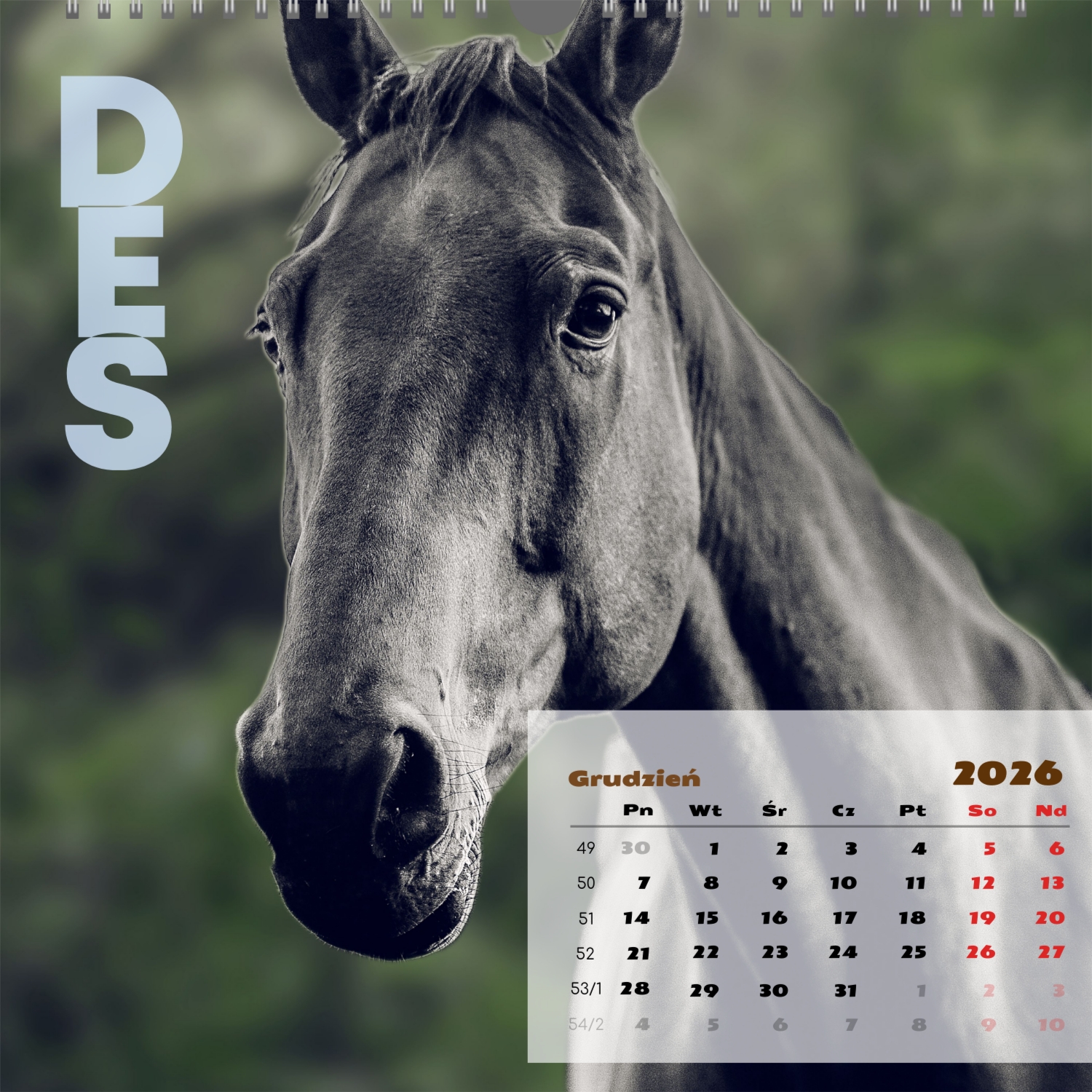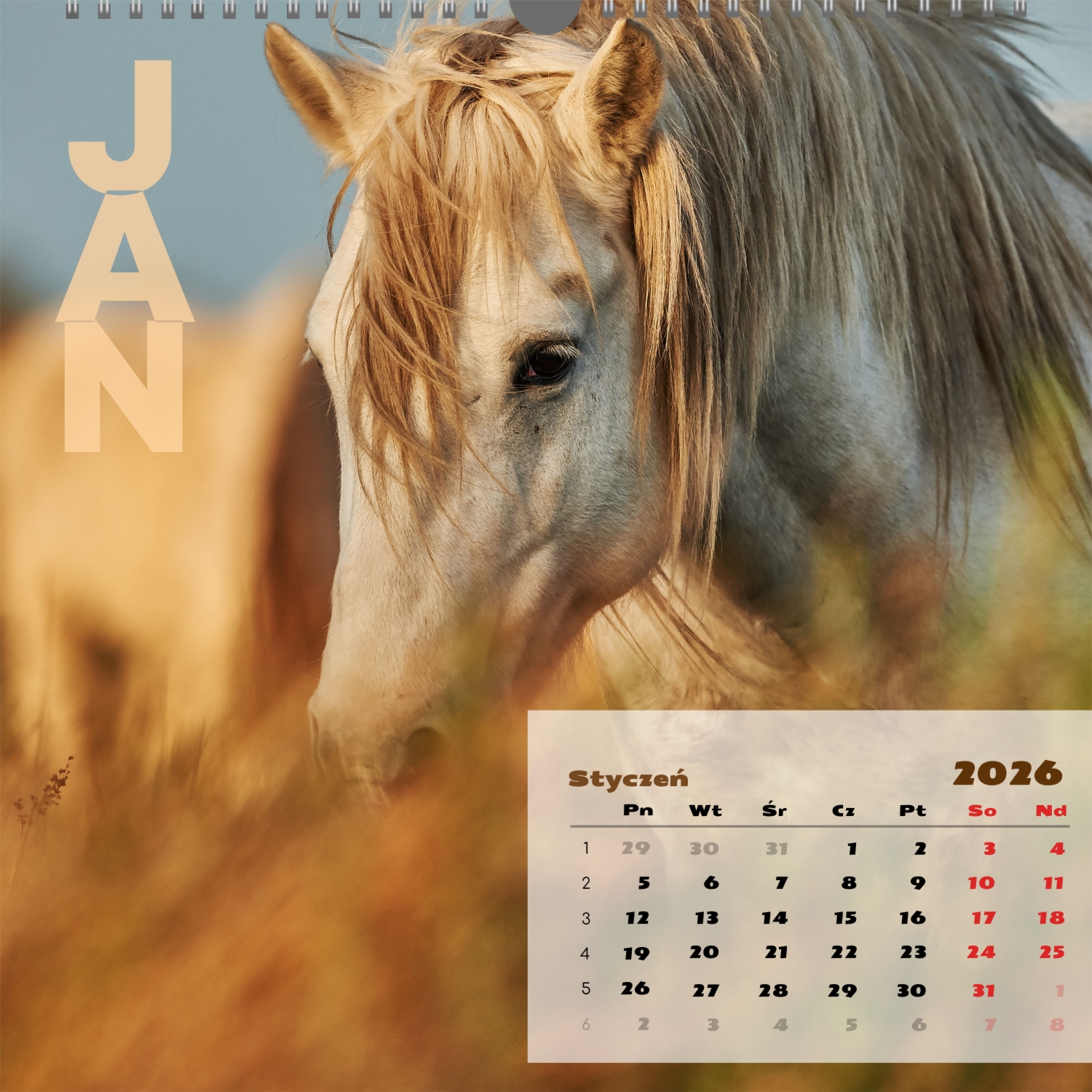Gotowy szablon kwadratowego kalendarza ściennego z końmi został stworzony dla tych, którzy cenią naturalną harmonię, dynamikę i symbolikę siły. W naszym kreatorze online ten szablon można łatwo dostosować do osobistych preferencji. Możesz zamienić zdjęcia na własne zdjęcia koni, dodać logo klubu lub gospodarstwa, zmienić czcionki, kolory i rozmieszczenie elementów. Istnieje możliwość podpisania miesięcy, podkreślenia ważnych dat, świętowania zawodów, treningów, urodzin i innych wydarzeń. Każdy element kalendarza – od tła po drobne szczegóły-można edytować, co pozwala stworzyć naprawdę spersonalizowaną opcję. Kreator online działa tak wygodnie i prosto, jak to możliwe: wszystkie zmiany są wyświetlane jednocześnie, możesz eksperymentować z kompozycjami, wypróbować różne style i zapisać kilka opcji. W rezultacie otrzymujesz unikalny kalendarz ścienny z końmi, który odzwierciedla twój charakter, aktywność zawodową lub wartości osobiste. Taki kalendarz nie tylko stanie się funkcjonalnym asystentem na każdy dzień, ale także ozdobi przestrzeń, przypominając o ruchu do przodu i sile wewnętrznej inspiracji.