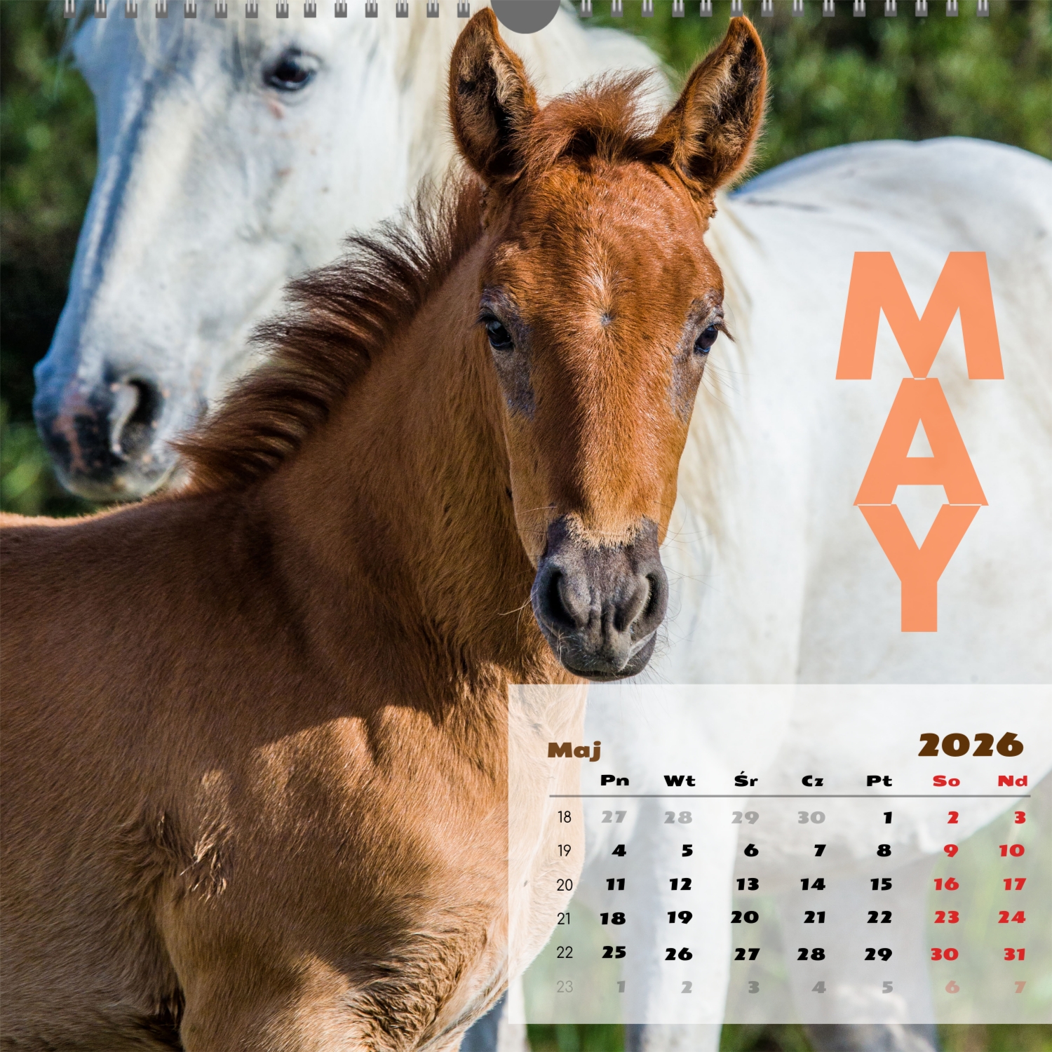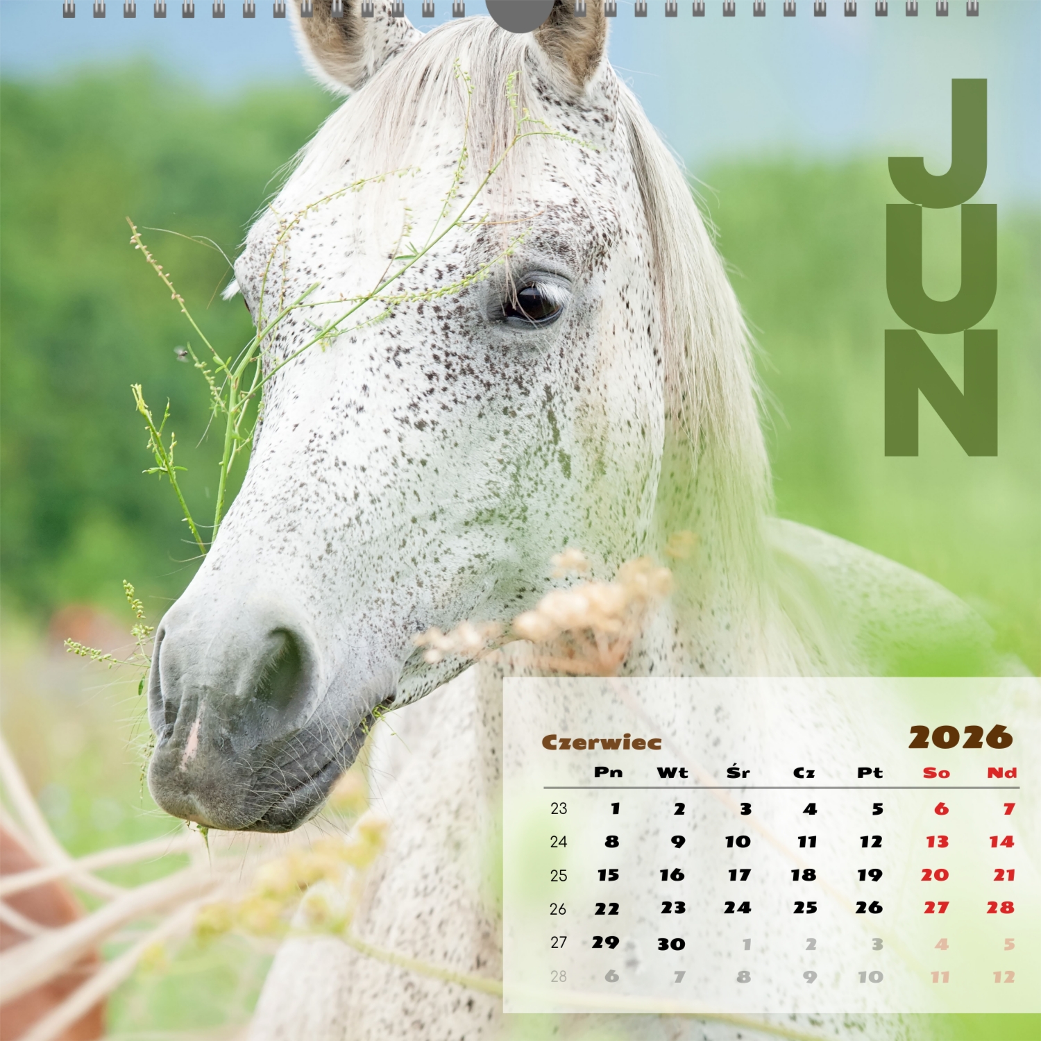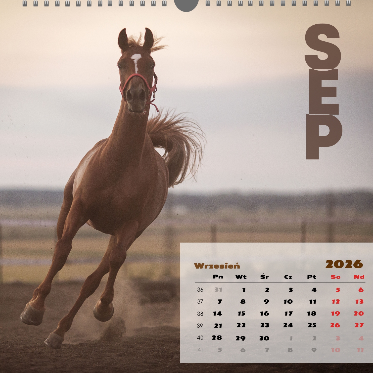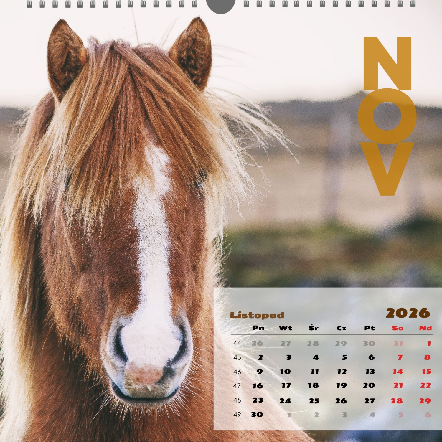 Gotowy szablon kwadratowego kalendarza ściennego z końmi został stworzony dla tych, którzy cenią naturalną harmonię, dynamikę i symbolikę siły. W naszym kreatorze online ten szablon można łatwo dostosować do osobistych preferencji. Możesz zamienić zdjęcia na własne zdjęcia koni, dodać logo klubu lub gospodarstwa, zmienić czcionki, kolory i rozmieszczenie elementów. Istnieje możliwość podpisania miesięcy, podkreślenia ważnych dat, świętowania zawodów, treningów, urodzin i innych wydarzeń. Każdy element kalendarza – od tła po drobne szczegóły-można edytować, co pozwala stworzyć naprawdę spersonalizowaną opcję. Kreator online działa tak wygodnie i prosto, jak to możliwe: wszystkie zmiany są wyświetlane jednocześnie, możesz eksperymentować z kompozycjami, wypróbować różne style i zapisać kilka opcji. W rezultacie otrzymujesz unikalny kalendarz ścienny z końmi, który odzwierciedla twój charakter, aktywność zawodową lub wartości osobiste. Taki kalendarz nie tylko stanie się funkcjonalnym asystentem na każdy dzień, ale także ozdobi przestrzeń, przypominając o ruchu do przodu i sile wewnętrznej inspiracji.