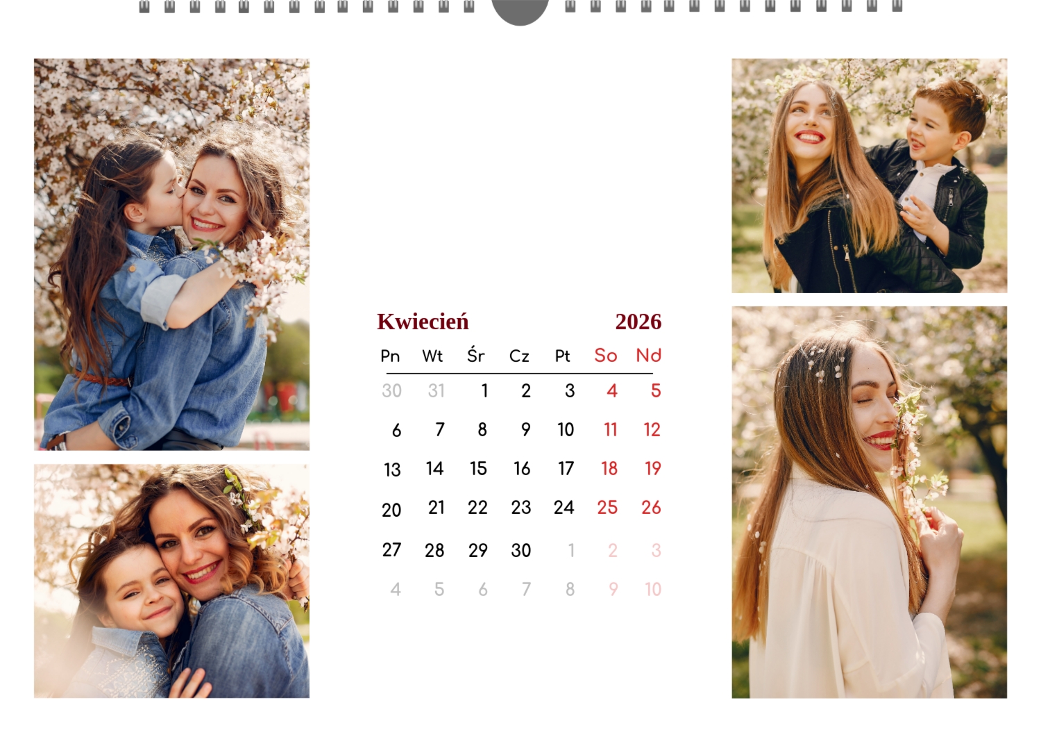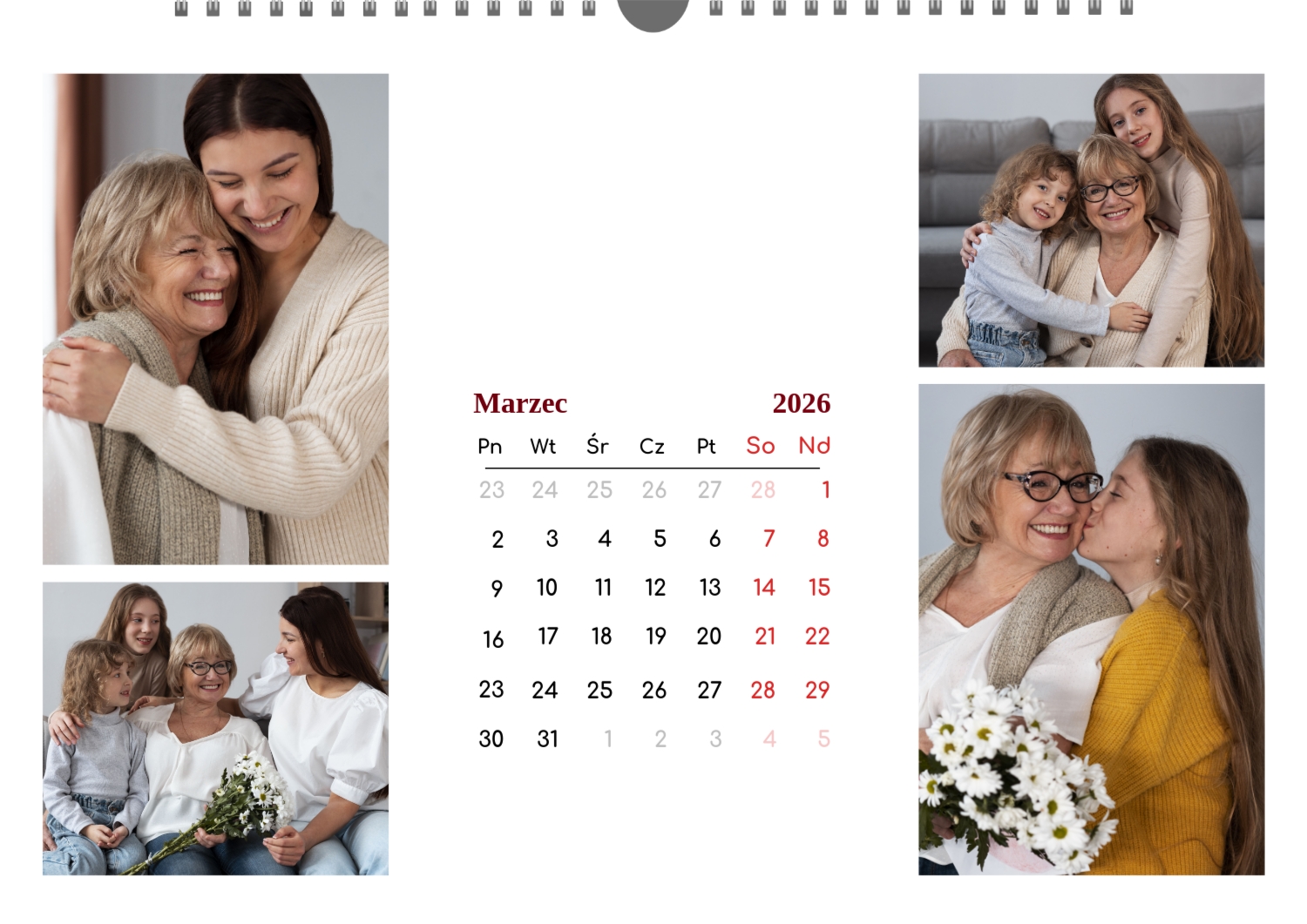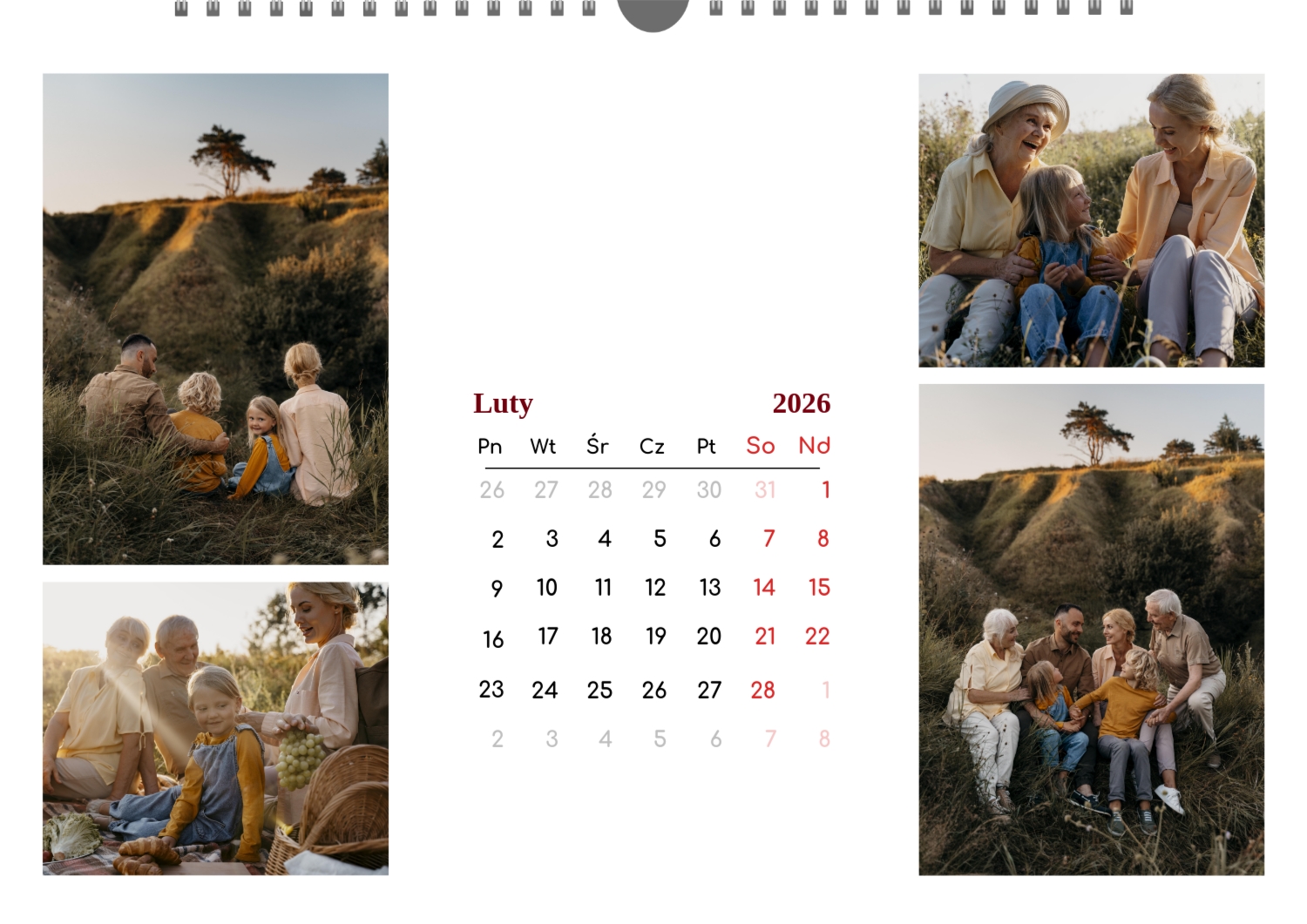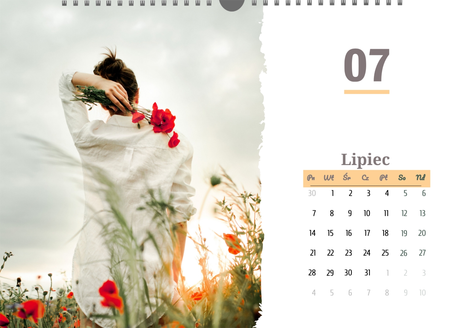 Gotowy szablon ściennego poziomego kalendarza z pozdrowieniami jest wykonany w minimalistycznym i nowoczesnym stylu, w którym co miesiąc wita użytkownika krótkim pozdrowieniem. Takie podejście sprawia, że kalendarz jest nie tylko narzędziem do planowania, ale także stylowym elementem wnętrza. Może być odpowiedni dla projektantów, marketerów, fotografów, kreatywnych, nauczycieli, freelancerów, właścicieli małych studiów lub salonów oraz każdego, kto ceni sobie estetykę i schludną wizualną organizację przestrzeni roboczej. W kreatorze online ten szablon można łatwo dostosować do zadań osobistych lub korporacyjnych. Możesz zmienić tło, wybrać inne kombinacje czcionek, zastąpić frazy powitalne lub pozostawić je w oryginalnej formie, dostosować schemat kolorów, dodać zdjęcia, ilustracje lub grafikę marki. W razie potrzeby można wstawić logo firmy, dane kontaktowe lub cytaty motywacyjne, aby kalendarz stał się częścią stylu korporacyjnego lub osobistym kreatywnym przedmiotem inspiracji. Edycja odbywa się bezpośrednio w przeglądarce, bez konieczności instalowania dodatkowych programów. Wszystkie elementy można przesuwać, skalować i dostosowywać, aby kalendarz wyglądał harmonijnie i odzwierciedlał charakter użytkownika lub marki. Rezultatem jest całkowicie spersonalizowany, poziomy, szeroki kalendarz DIY oparty na przemyślanym szablonie, który pozostaje zarówno wygodny, funkcjonalny, jak i atrakcyjny wizualnie.
