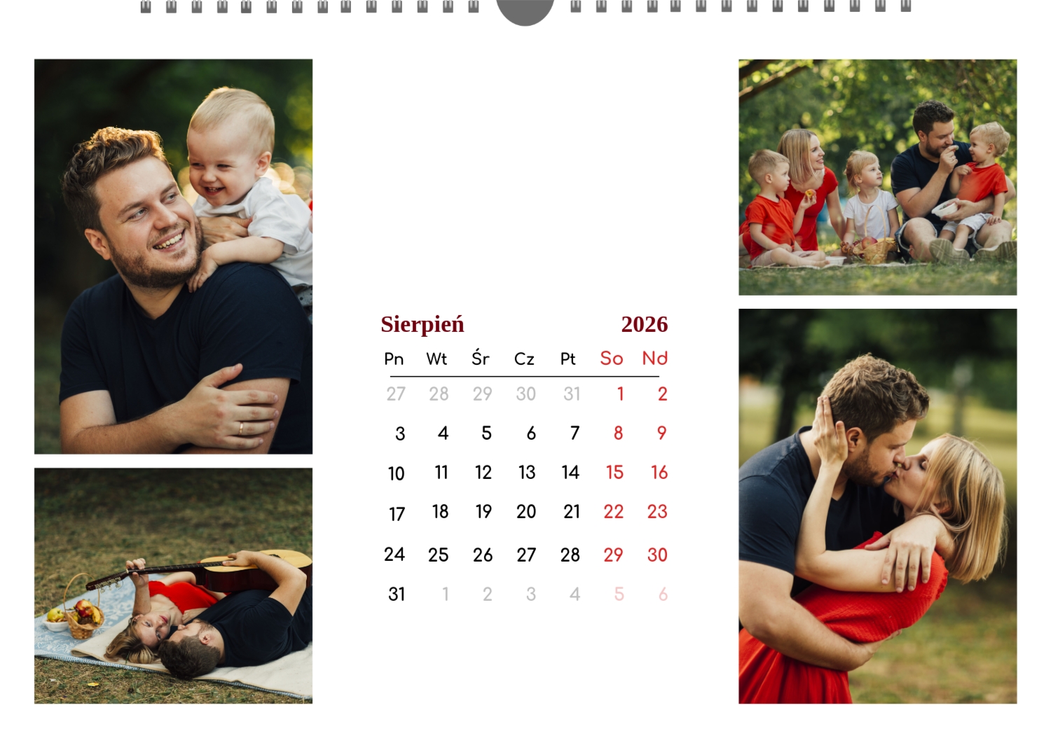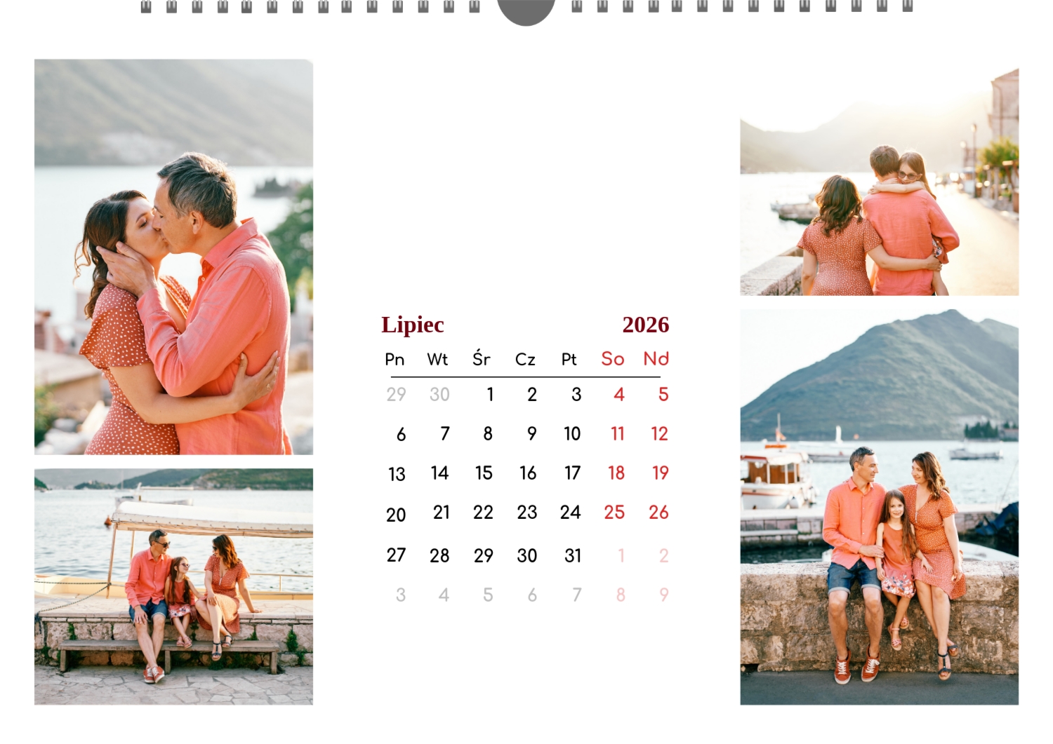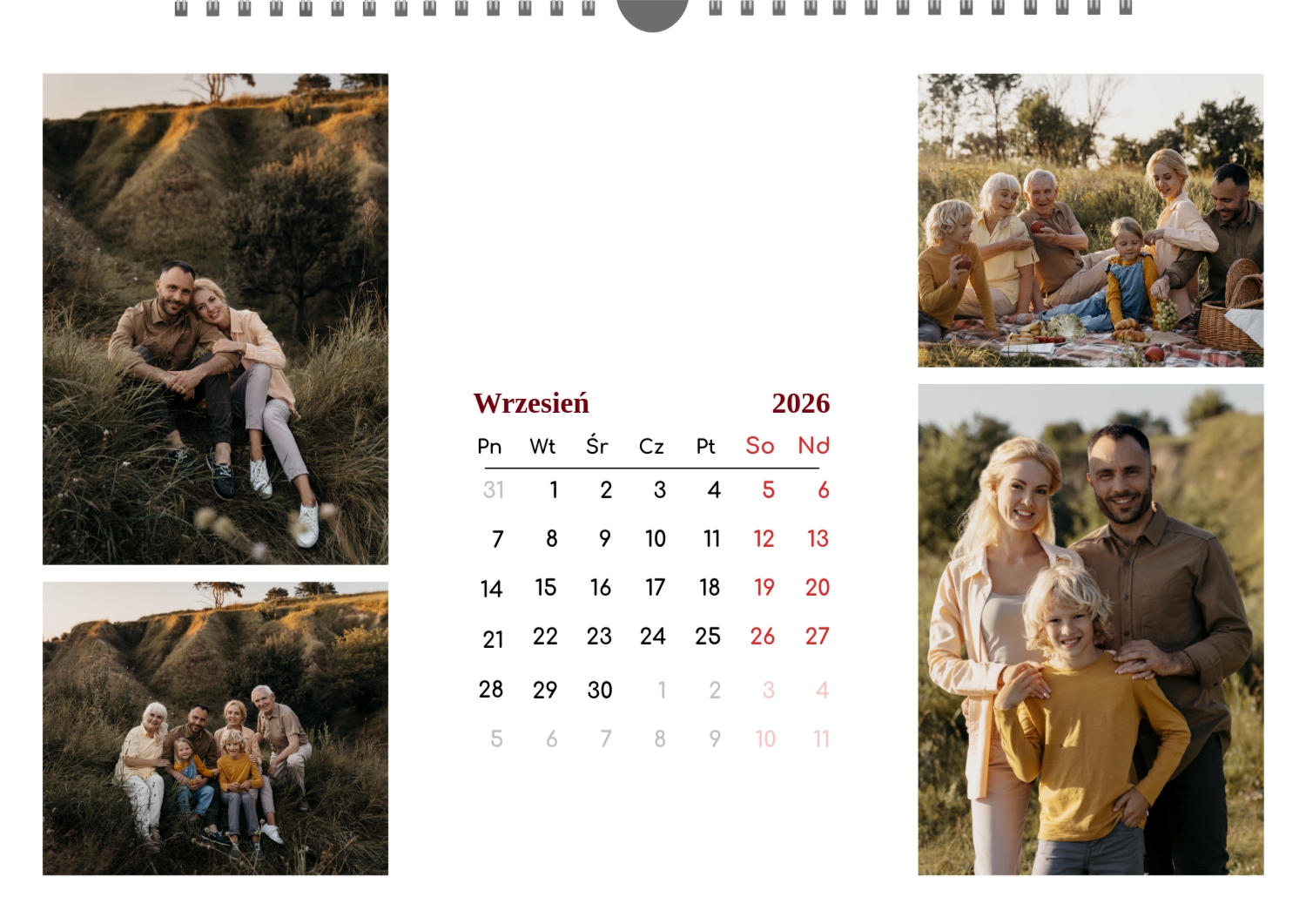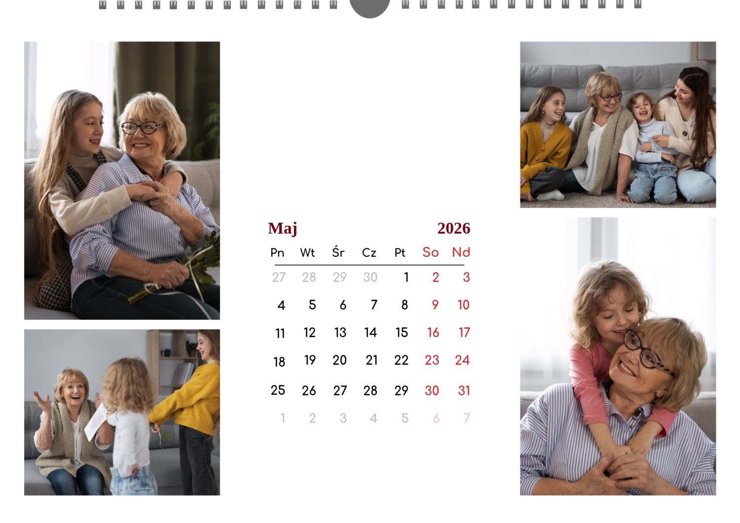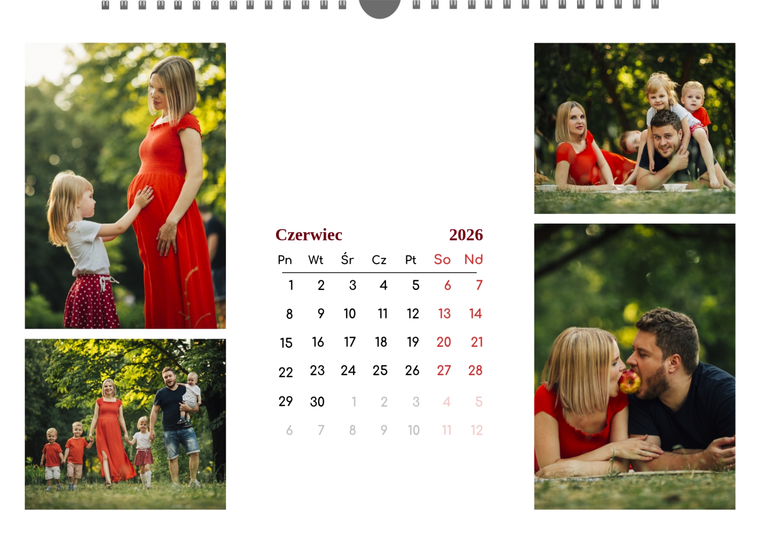 Gotowy szablon ściennego poziomego kalendarza z pozdrowieniami jest wykonany w minimalistycznym i nowoczesnym stylu, w którym co miesiąc wita użytkownika krótkim pozdrowieniem. Takie podejście sprawia, że kalendarz jest nie tylko narzędziem do planowania, ale także stylowym elementem wnętrza. Może być odpowiedni dla projektantów, marketerów, fotografów, kreatywnych, nauczycieli, freelancerów, właścicieli małych studiów lub salonów oraz każdego, kto ceni sobie estetykę i schludną wizualną organizację przestrzeni roboczej. W kreatorze online ten szablon można łatwo dostosować do zadań osobistych lub korporacyjnych. Możesz zmienić tło, wybrać inne kombinacje czcionek, zastąpić frazy powitalne lub pozostawić je w oryginalnej formie, dostosować schemat kolorów, dodać zdjęcia, ilustracje lub grafikę marki. W razie potrzeby można wstawić logo firmy, dane kontaktowe lub cytaty motywacyjne, aby kalendarz stał się częścią stylu korporacyjnego lub osobistym kreatywnym przedmiotem inspiracji. Edycja odbywa się bezpośrednio w przeglądarce, bez konieczności instalowania dodatkowych programów. Wszystkie elementy można przesuwać, skalować i dostosowywać, aby kalendarz wyglądał harmonijnie i odzwierciedlał charakter użytkownika lub marki. Rezultatem jest całkowicie spersonalizowany, poziomy, szeroki kalendarz DIY oparty na przemyślanym szablonie, który pozostaje zarówno wygodny, funkcjonalny, jak i atrakcyjny wizualnie.