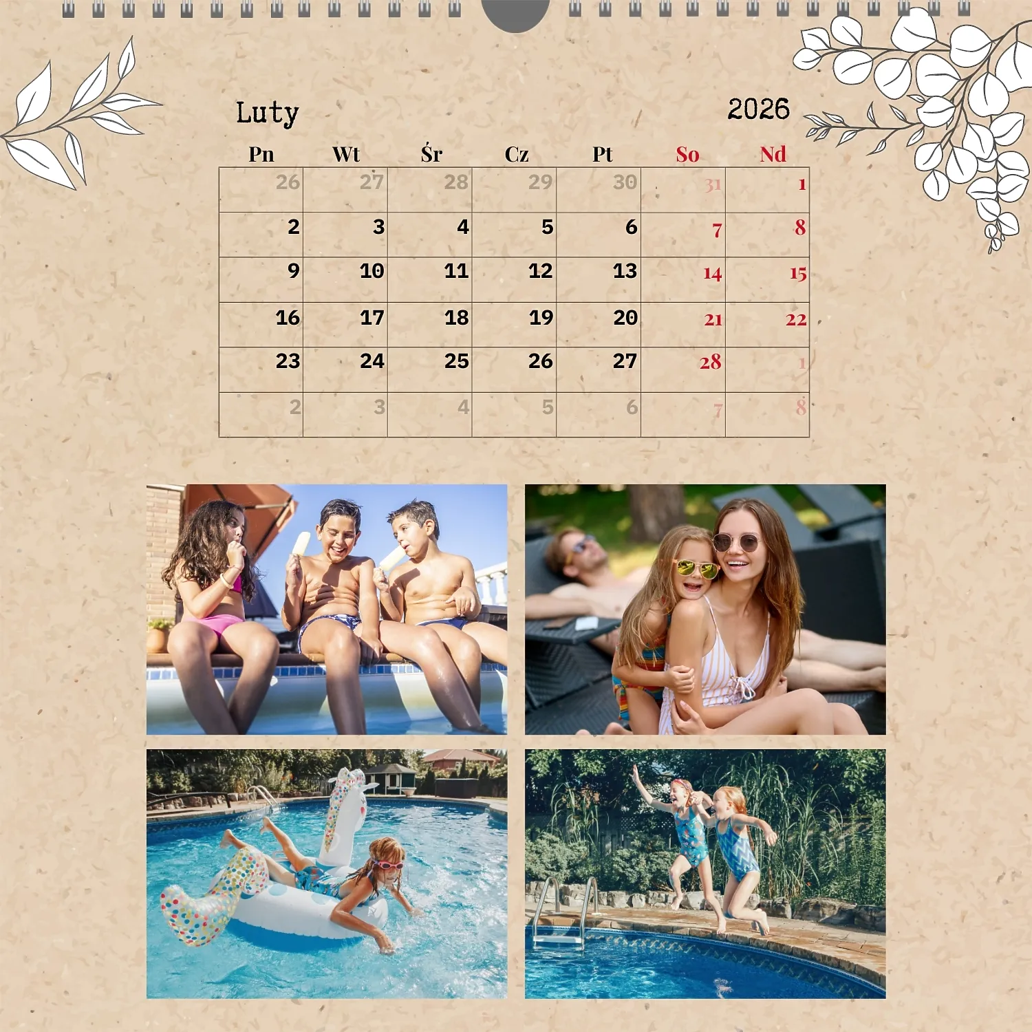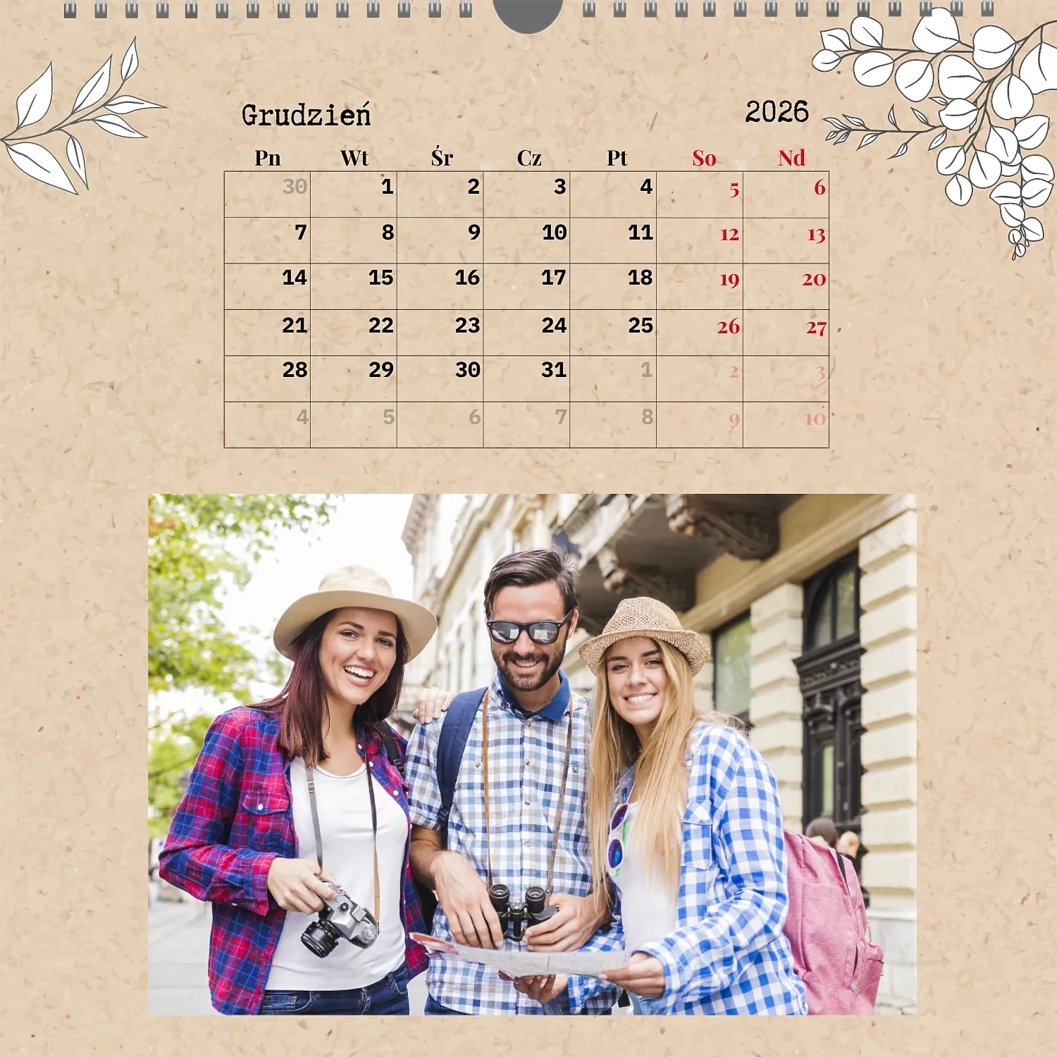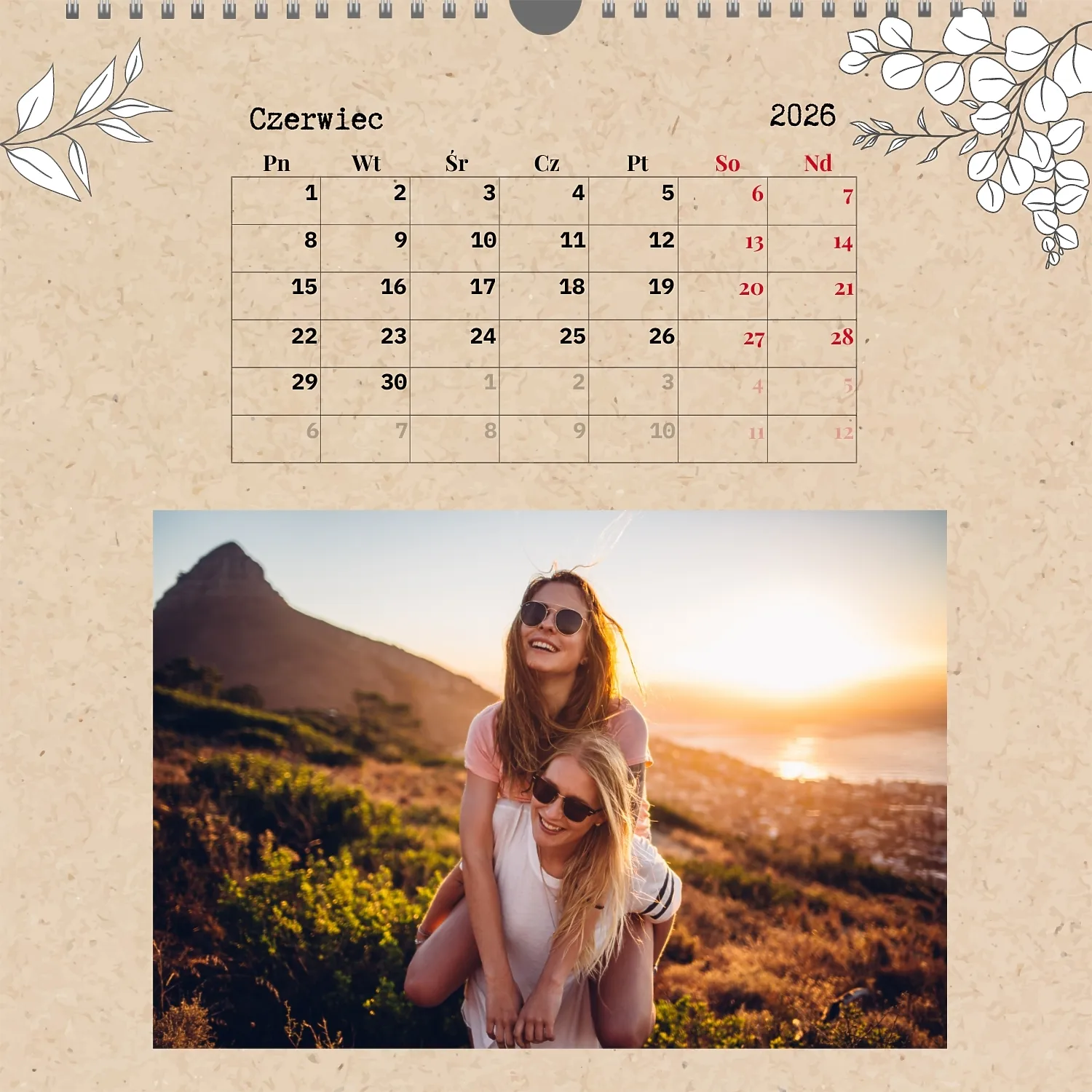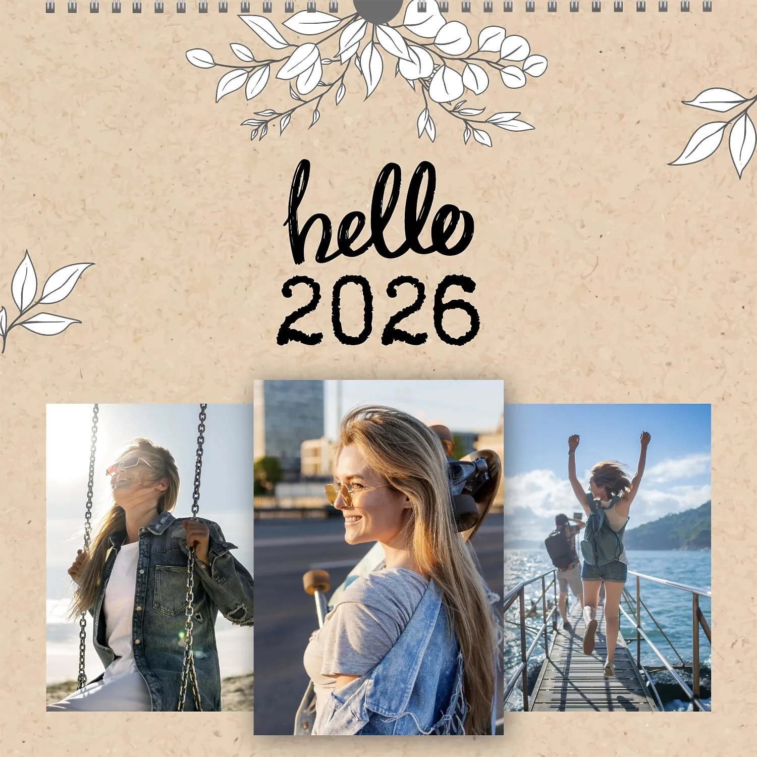 Gotowy szablon kalendarza ściennego z osobistymi zdjęciami to świetne rozwiązanie dla tych, którzy chcą stworzyć wyjątkowy i stylowy dodatek do domu, biura lub prezentu. Ten kwadratowy kalendarz jest idealny dla osób, które cenią sobie indywidualność i chcą otoczyć się rzeczami pełnymi znaczenia i miłych wspomnień. Główną zaletą szablonu jest jego dostępność w wygodnym kreatorze online. Możesz łatwo przesyłać zdjęcia, zmieniać układ elementów, dodawać komentarze tekstowe, wyróżniać ważne daty lub wydarzenia. Projektant pozwala dostosować szablon do swojego stylu: wybierz kolorystykę, czcionkę, a nawet dostosuj poszczególne szczegóły projektu.