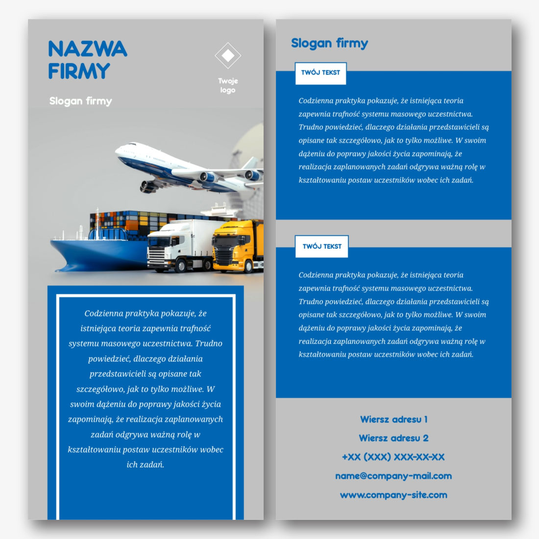 Szablon ulotki międzynarodowej firmy logistycznej