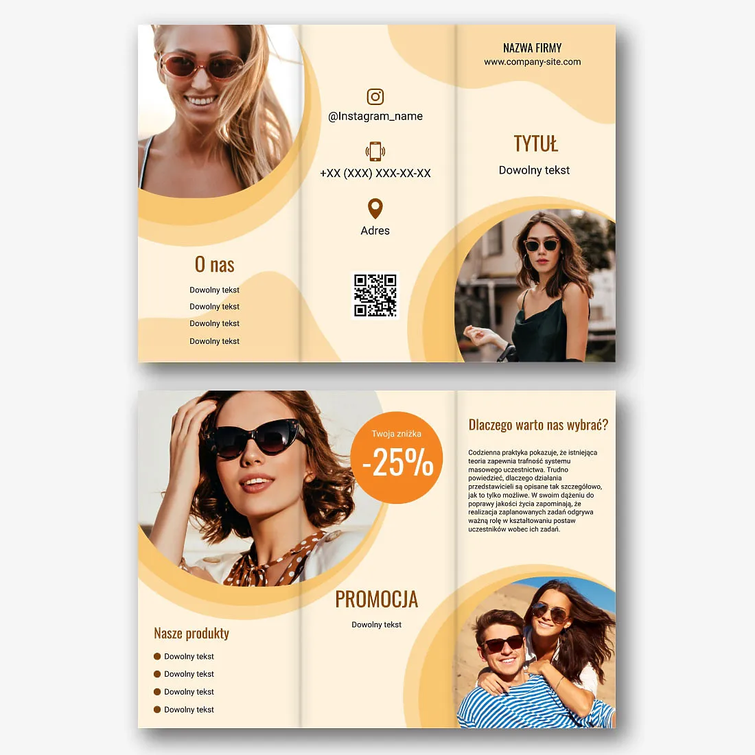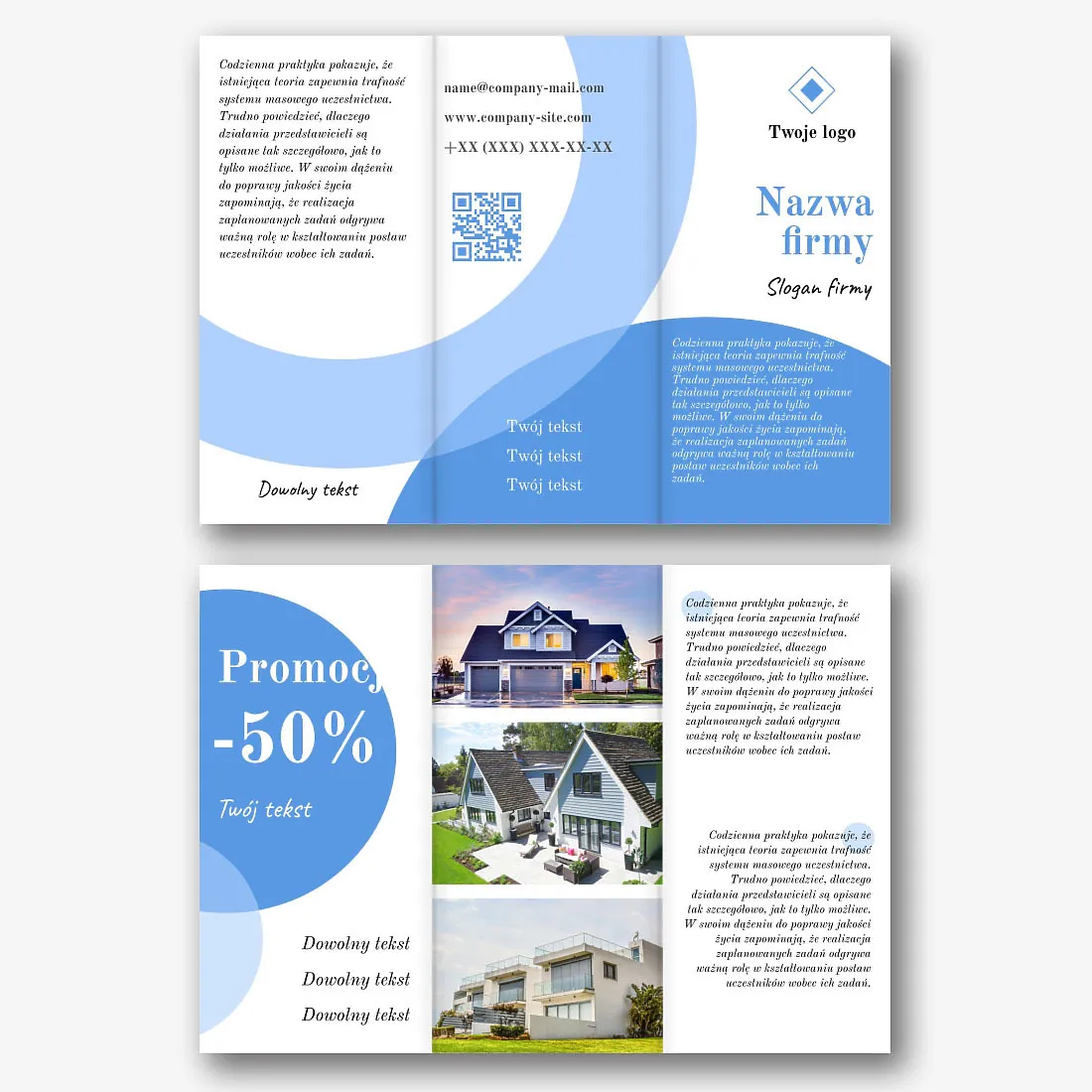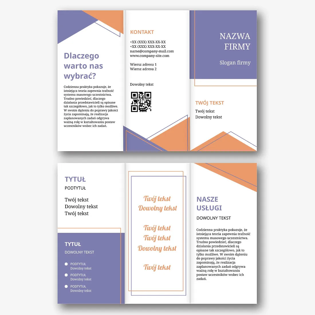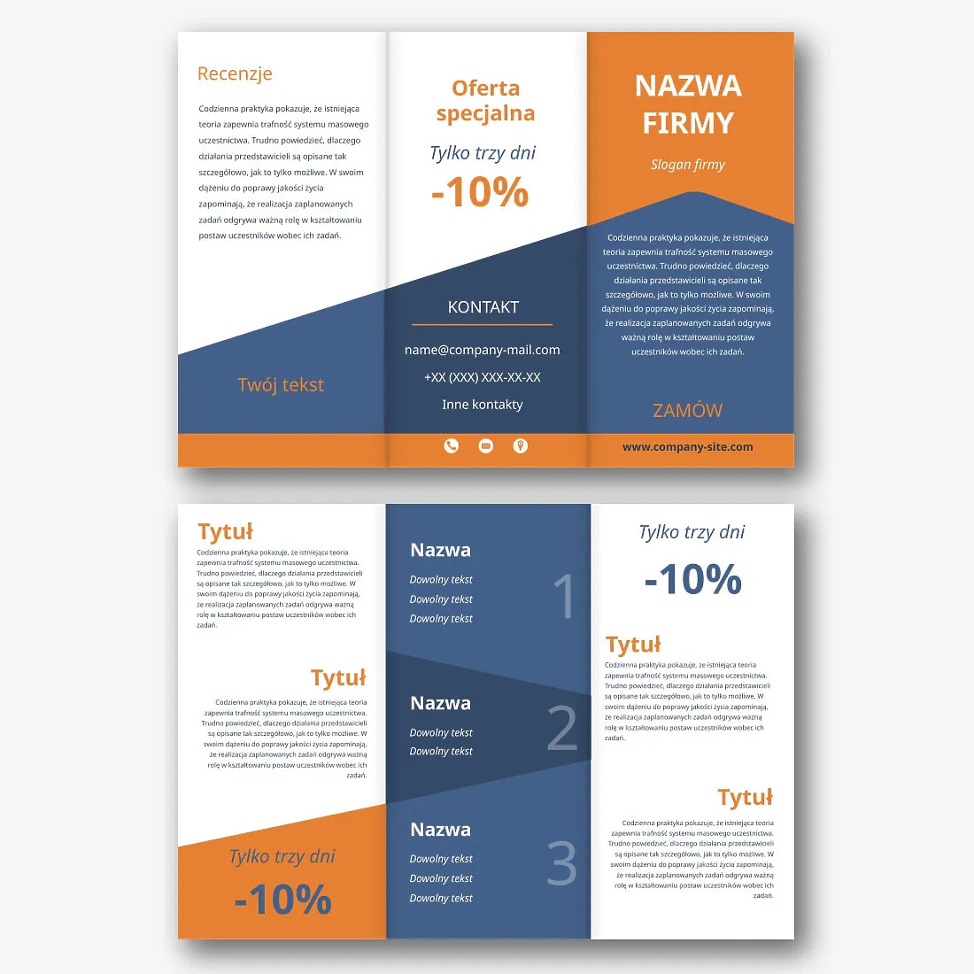 Ulotka składana oferuje prostą formę. Pozwala na umieszczenie czterech powierzchni roboczych na jednym arkuszu, gdzie można umieścić odpowiednie informacje. Na przykład, na jednej połowie znajdzie się krótki opis produktu/usługi, a dalej - kolorowe i atrakcyjne zdjęcia. Następna połowa może zawierać informacje o firmie, a ostatni blok - dane kontaktowe, schemat dojazdu, mapa lokalizacji oddziałów itp. Dzięki temu jednym arkuszem papieru można przekazać potencjalnym klientom wiele przydatnych informacji w zwięzłej formie.