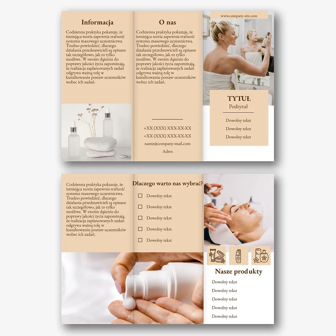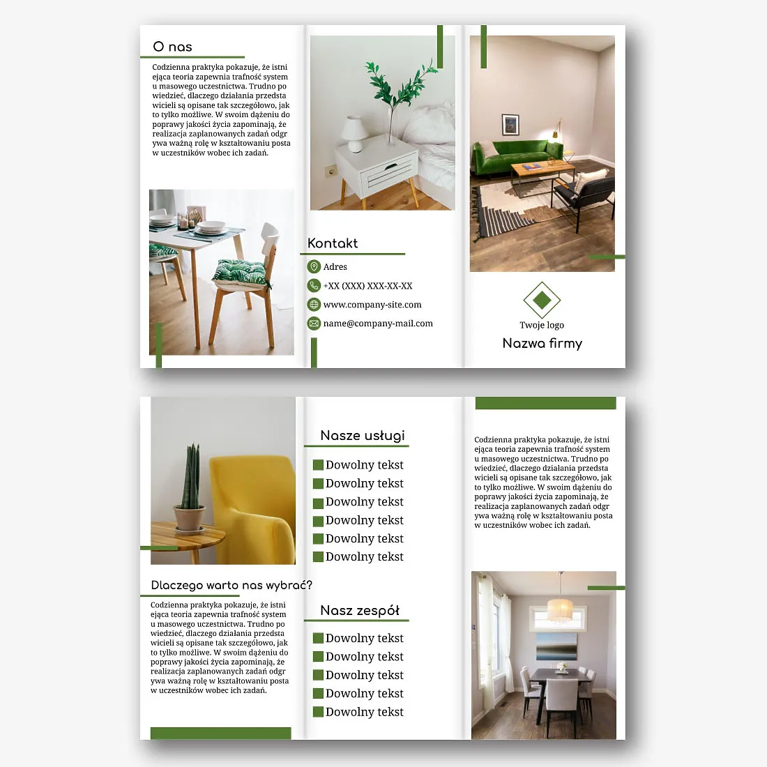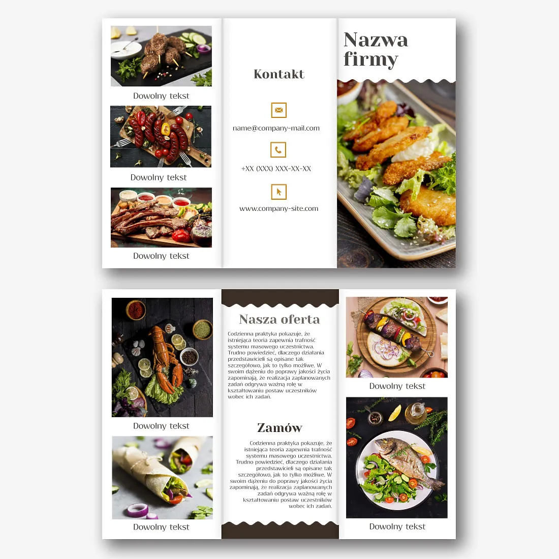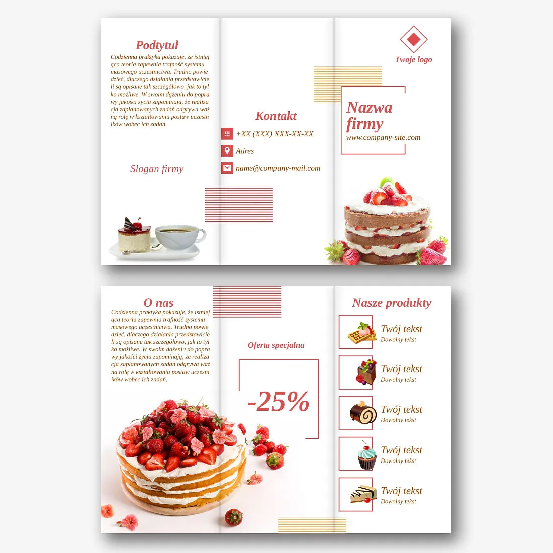 Ulotka składana oferuje prostą formę. Pozwala na umieszczenie czterech powierzchni roboczych na jednym arkuszu, gdzie można umieścić odpowiednie informacje. Na przykład, na jednej połowie znajdzie się krótki opis produktu/usługi, a dalej - kolorowe i atrakcyjne zdjęcia. Następna połowa może zawierać informacje o firmie, a ostatni blok - dane kontaktowe, schemat dojazdu, mapa lokalizacji oddziałów itp. Dzięki temu jednym arkuszem papieru można przekazać potencjalnym klientom wiele przydatnych informacji w zwięzłej formie.