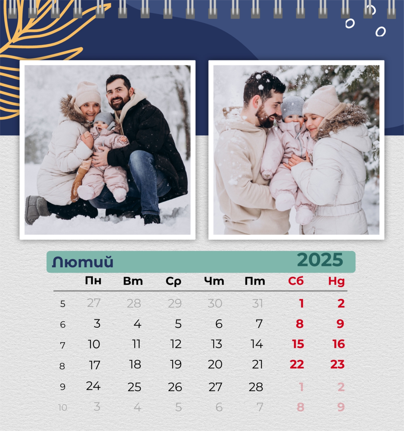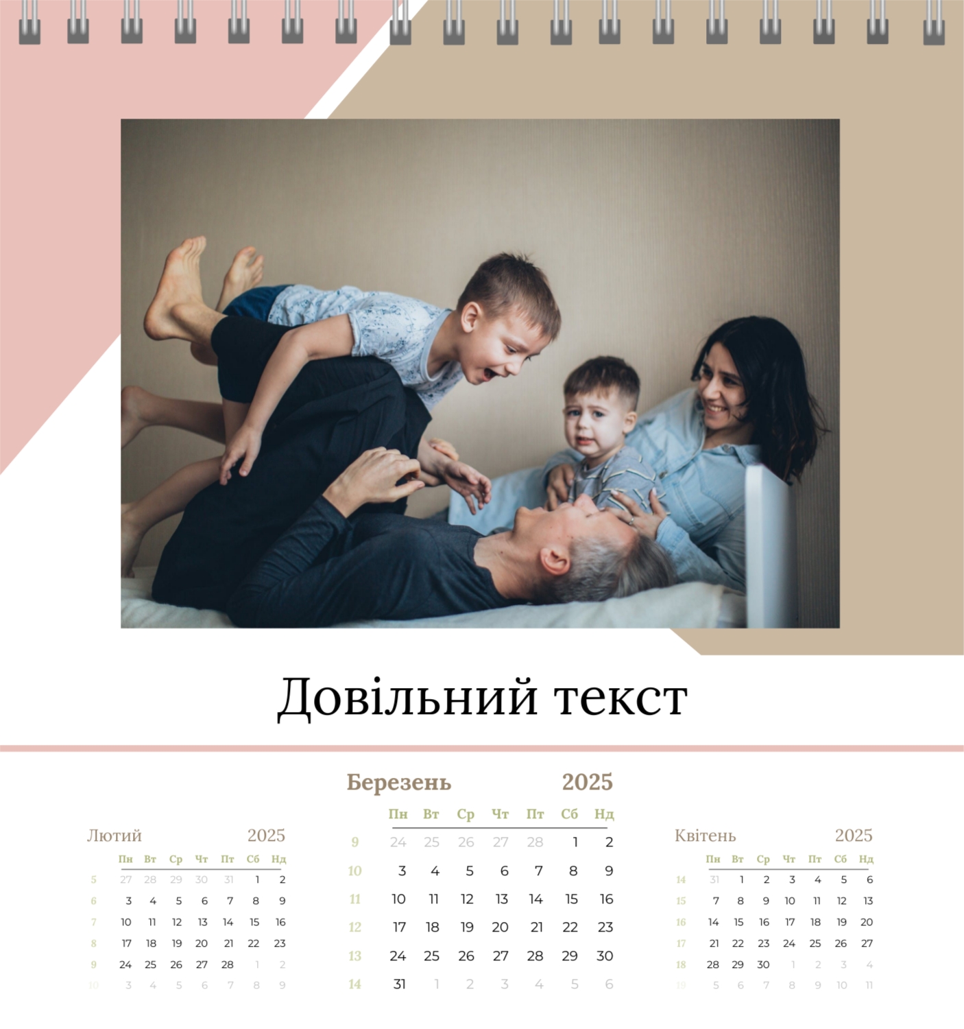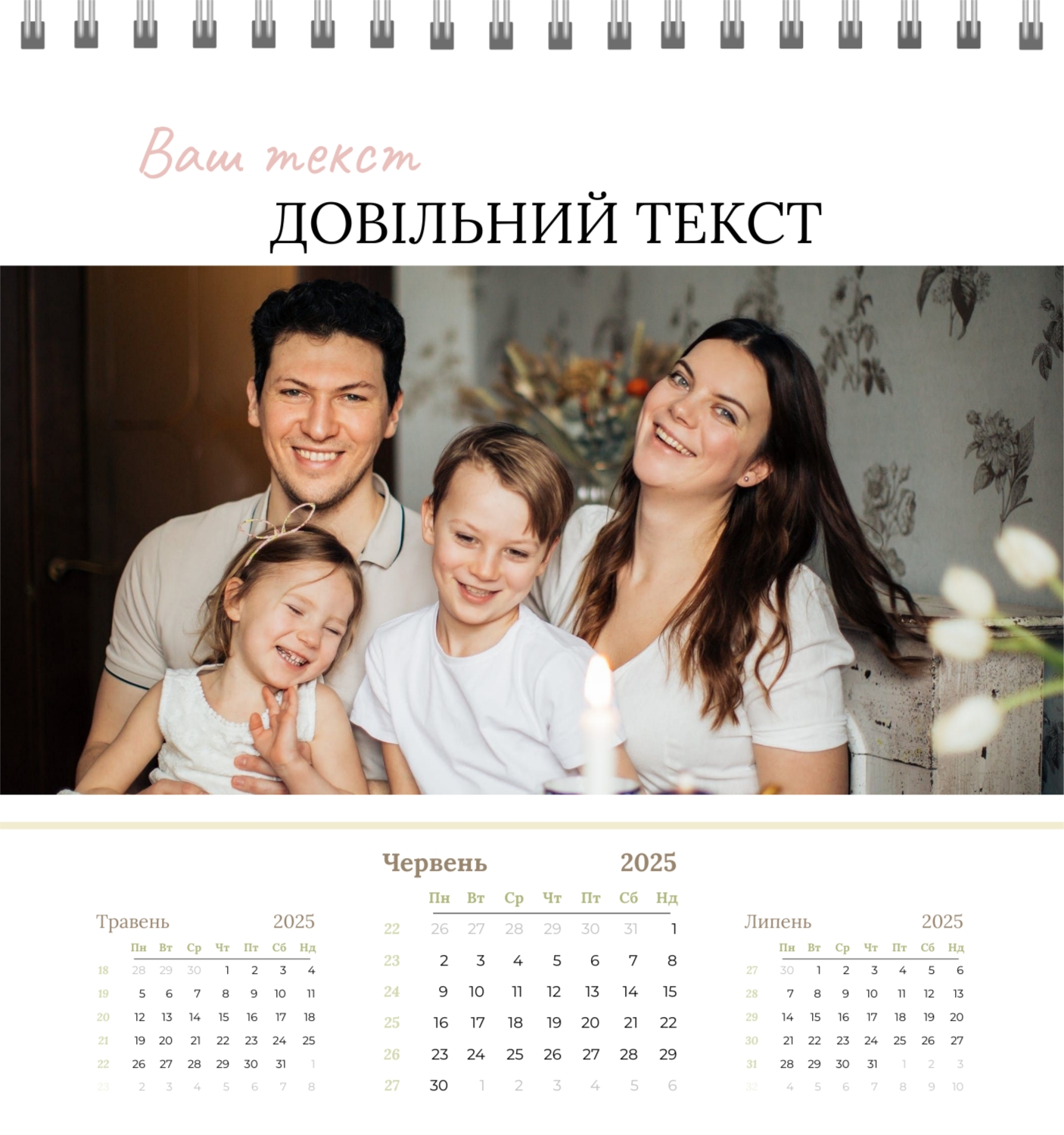Безкоштовний шаблон родинного календаря-будиночка перекидного онлайн для пам'ятних моментів. Створіть макет власноруч у конструкторі календарів.