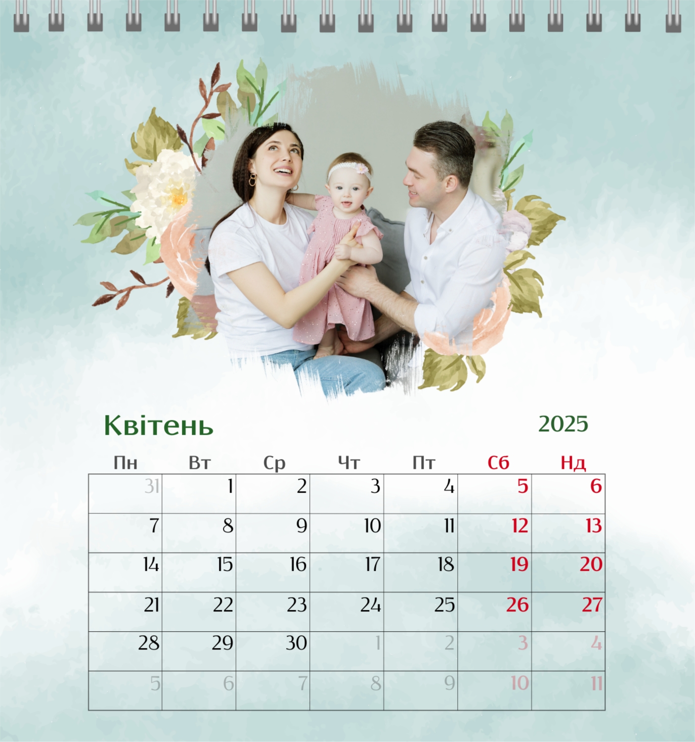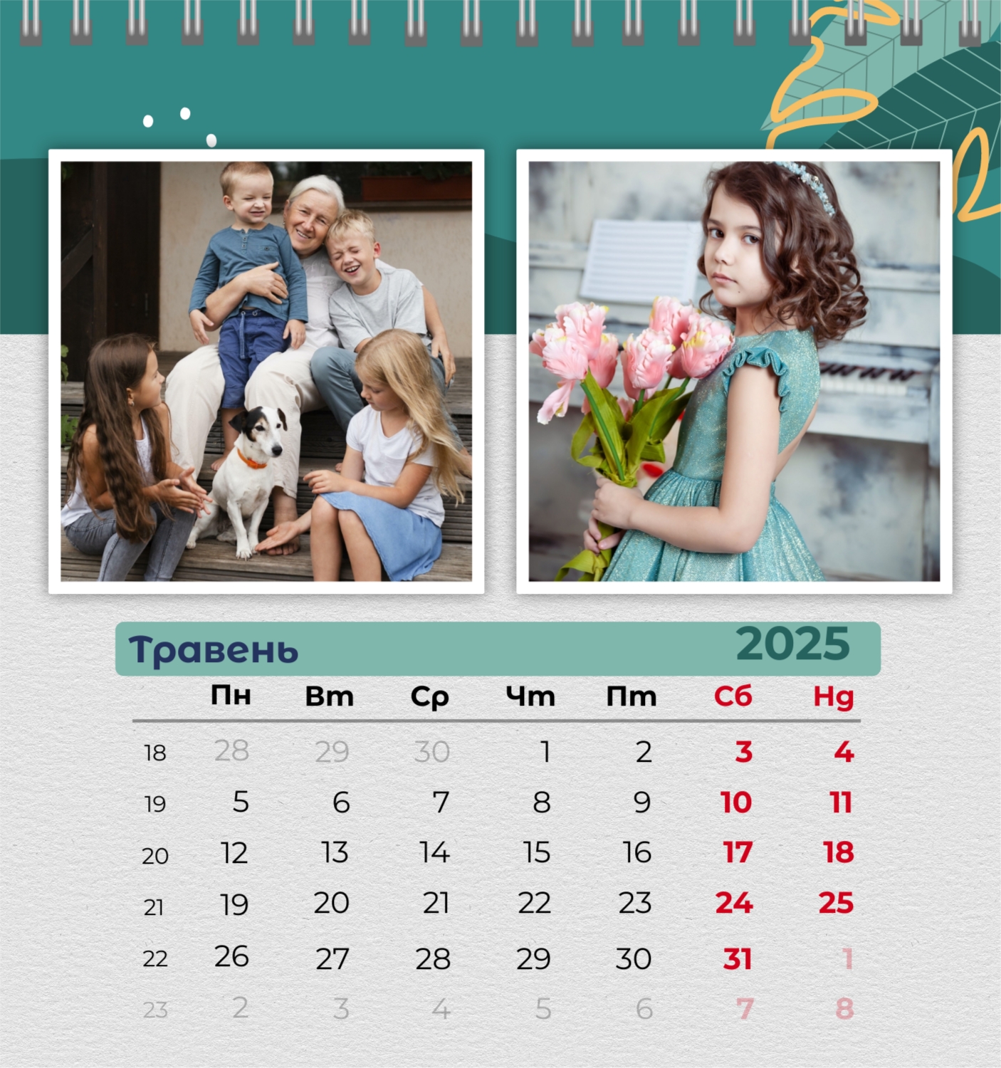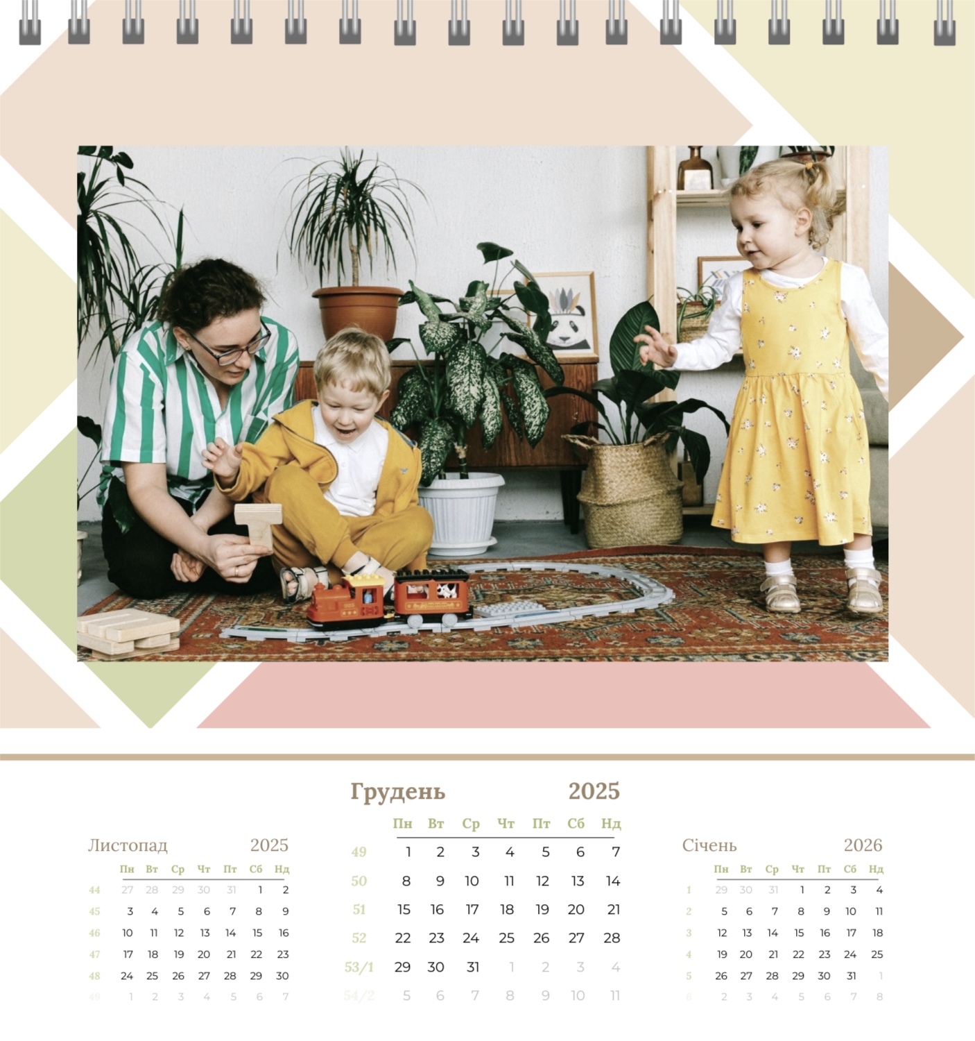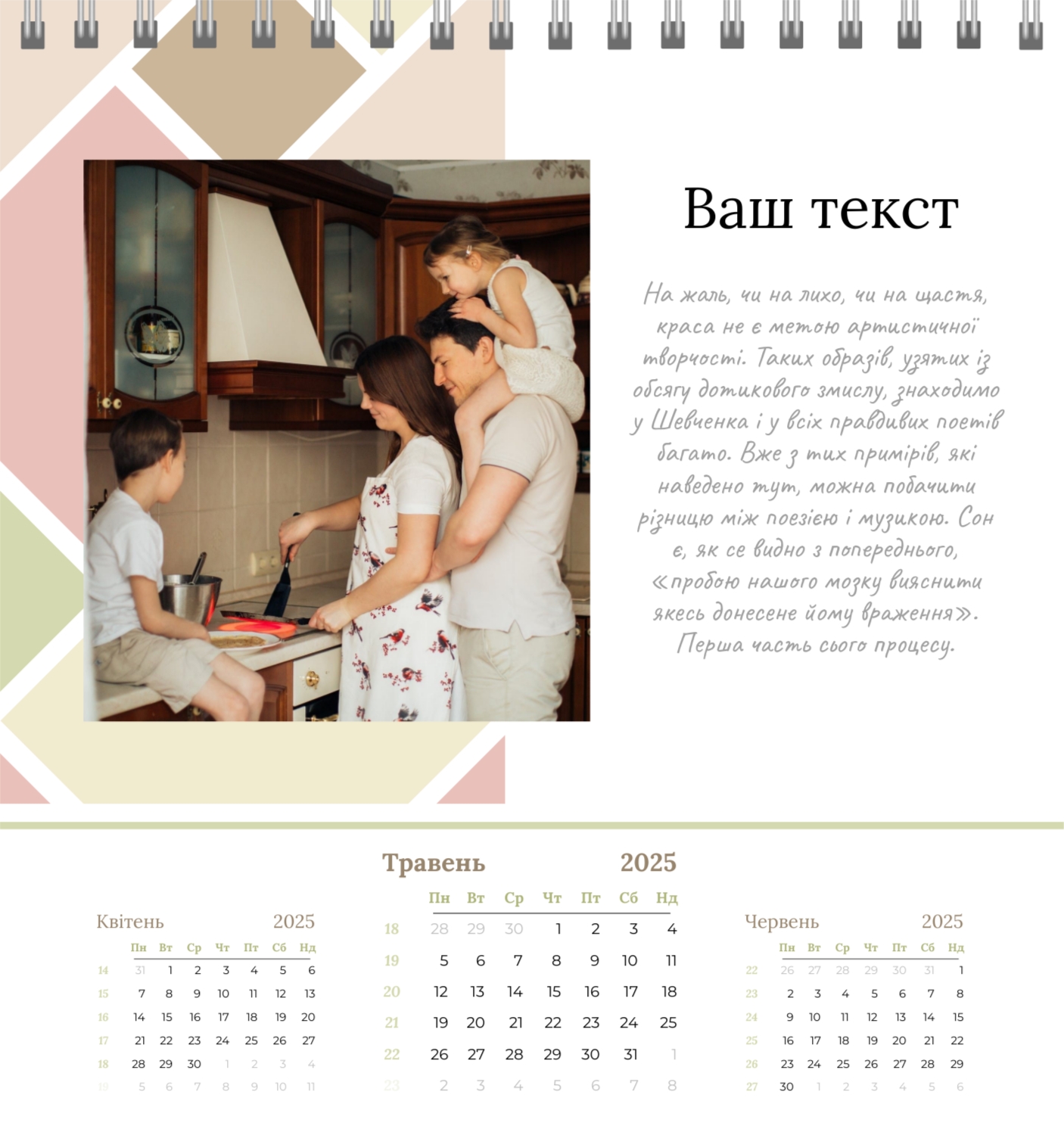 Безкоштовний шаблон родинного календаря-будиночка перекидного онлайн для пам'ятних моментів. Створіть макет власноруч у конструкторі календарів.