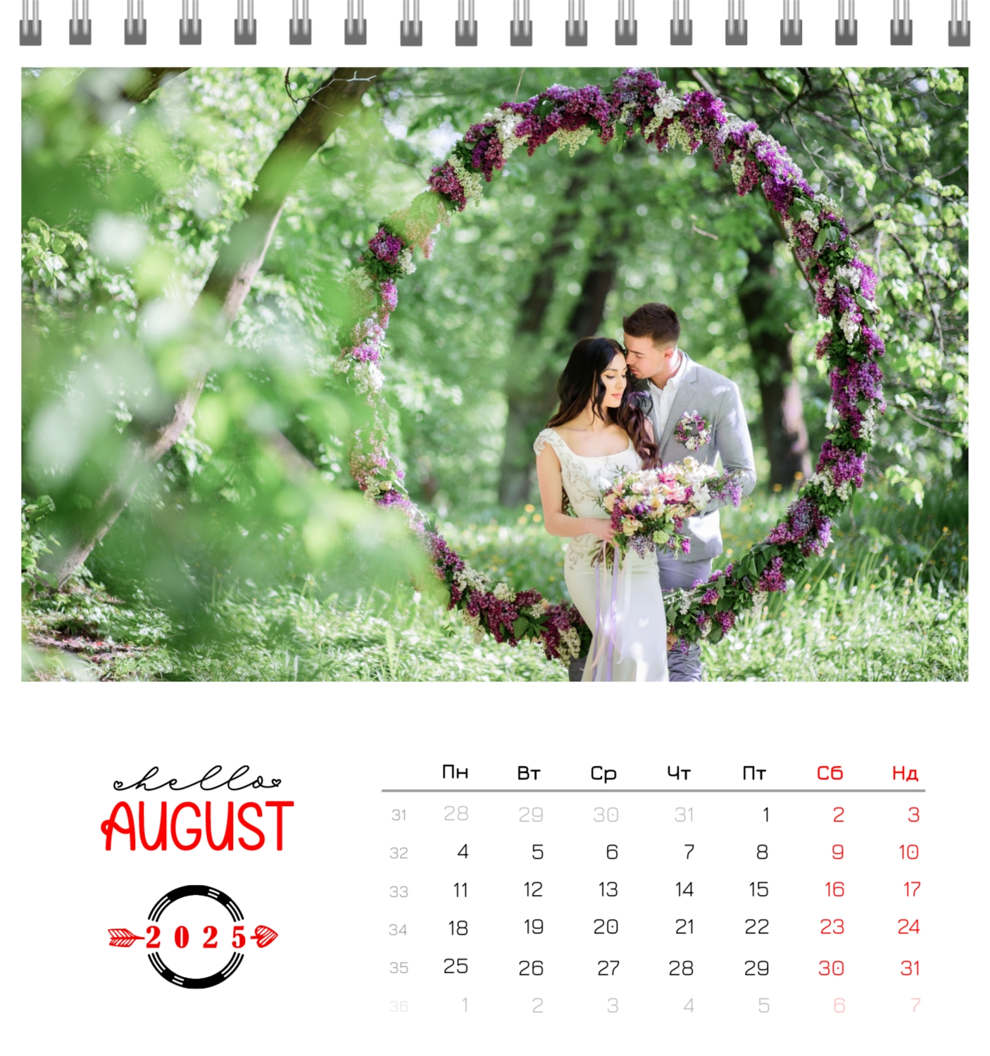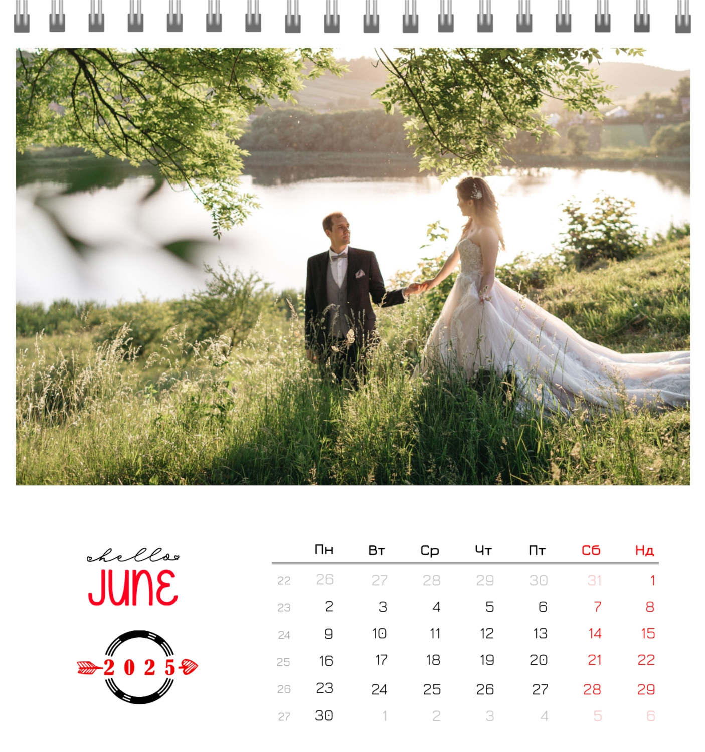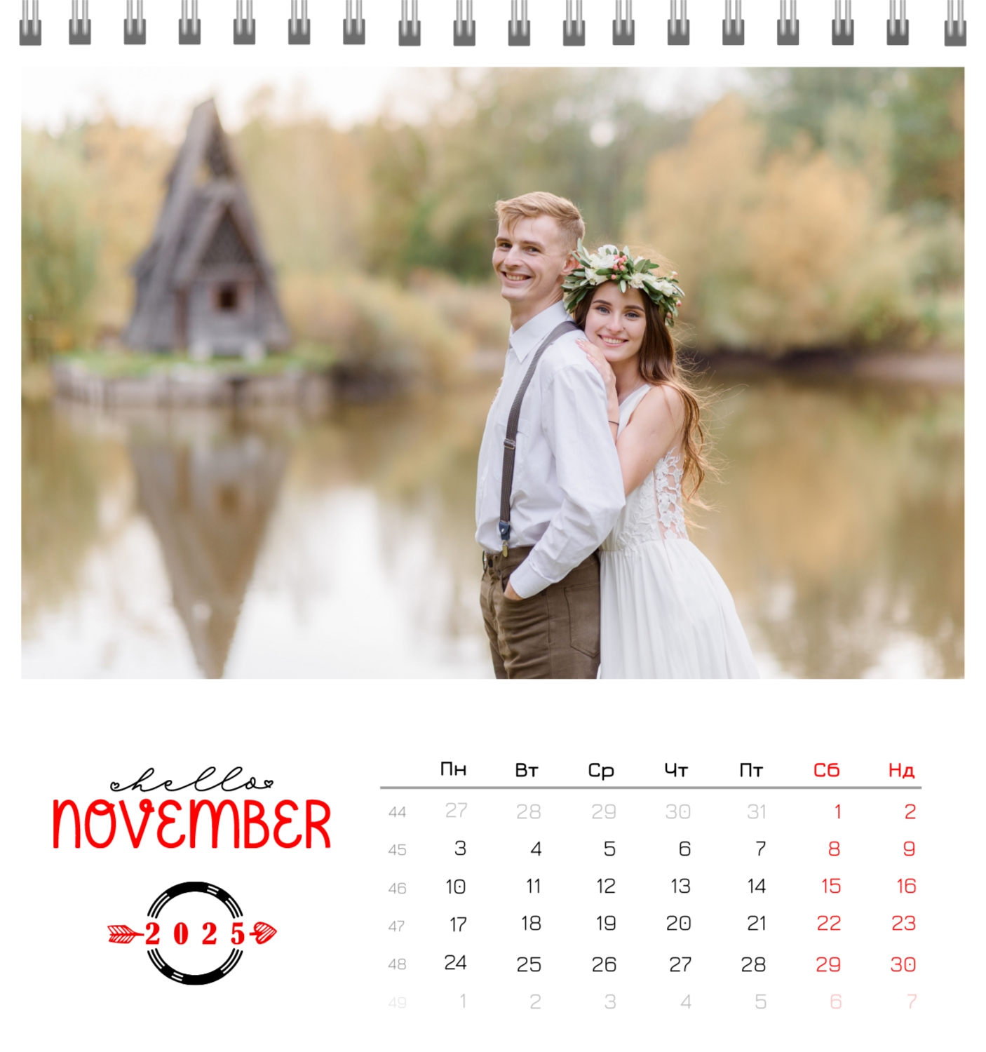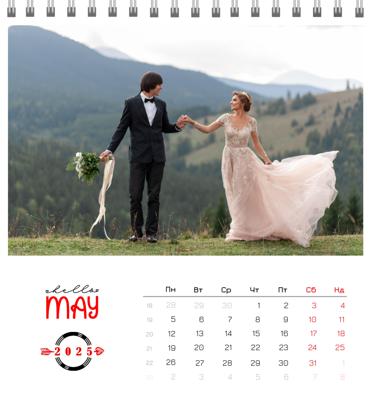 Безкоштовний шаблон настільного весільного календаря-будиночка онлайн для пам'ятних моментів. Створіть макет своїми руками в онлайн-конструкторі календарів.