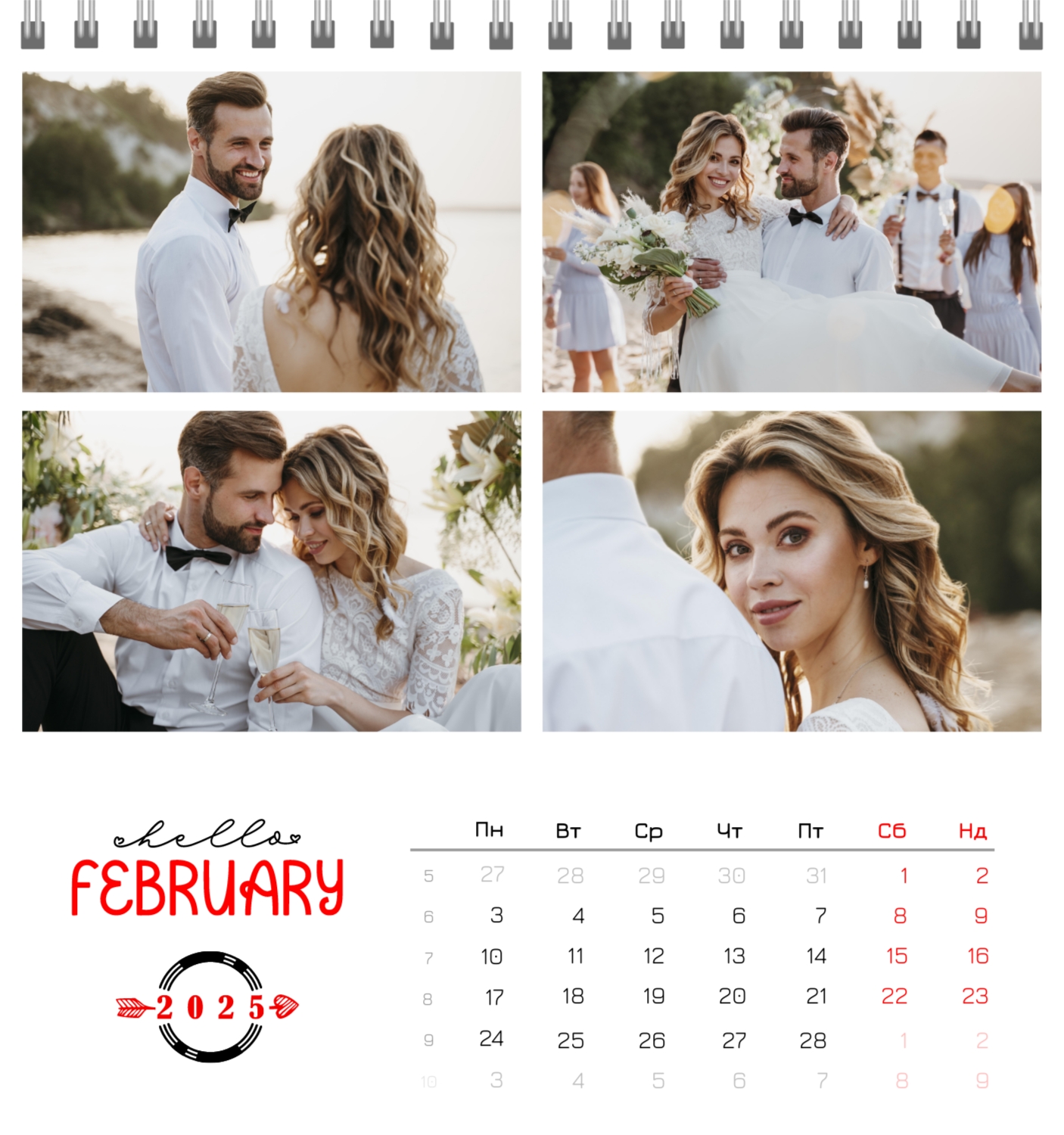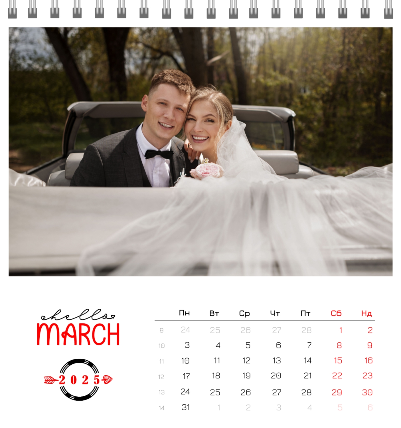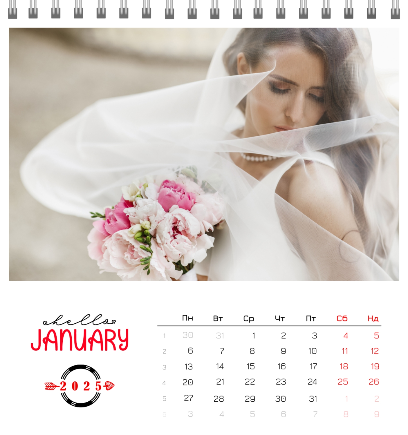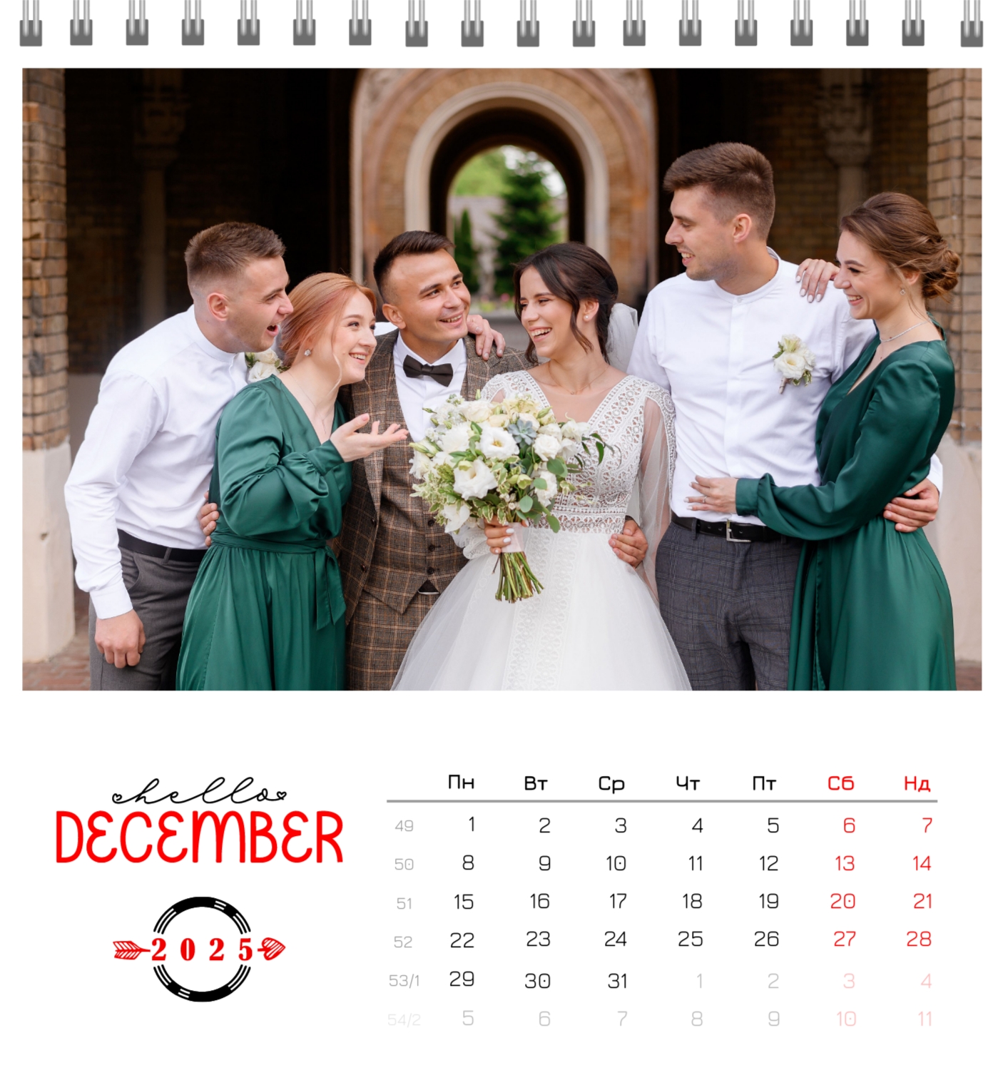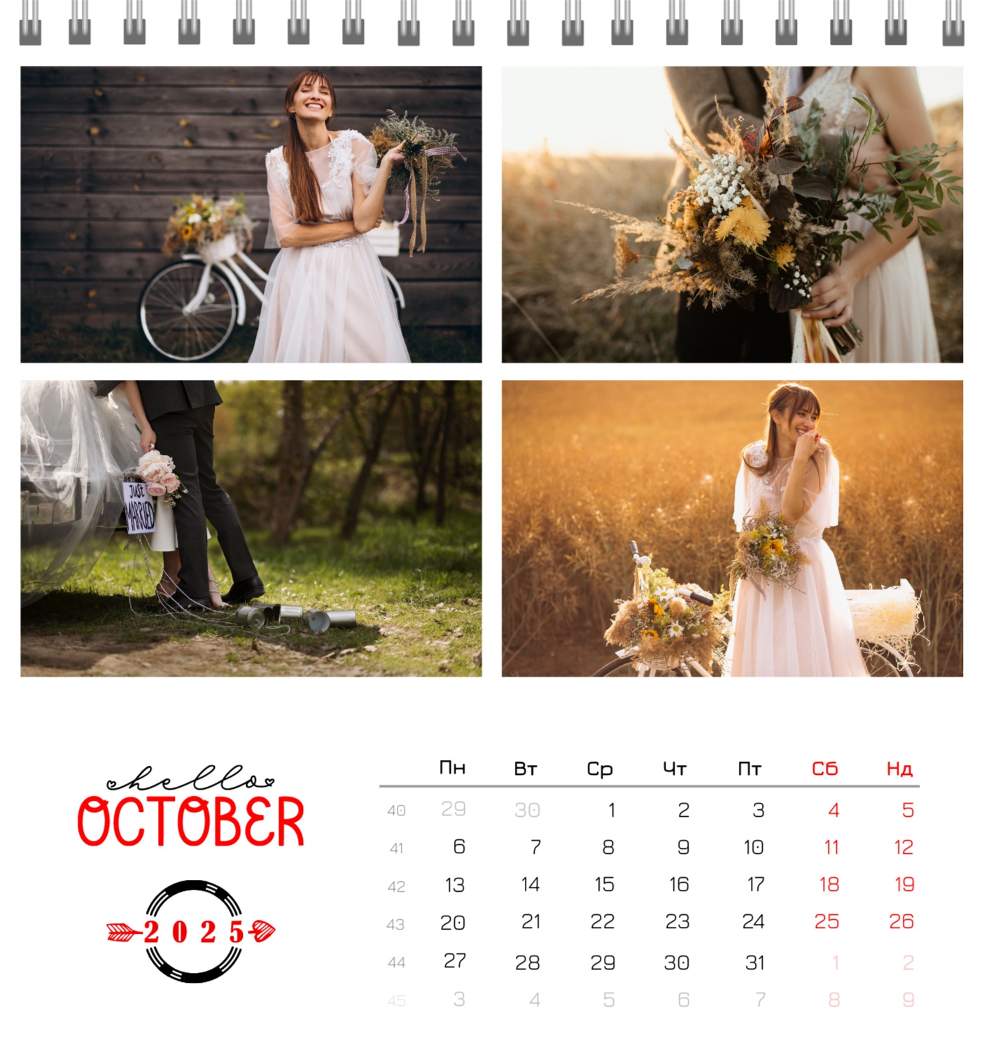 Безкоштовний шаблон настільного весільного календаря-будиночка онлайн для пам'ятних моментів. Створіть макет своїми руками в онлайн-конструкторі календарів.