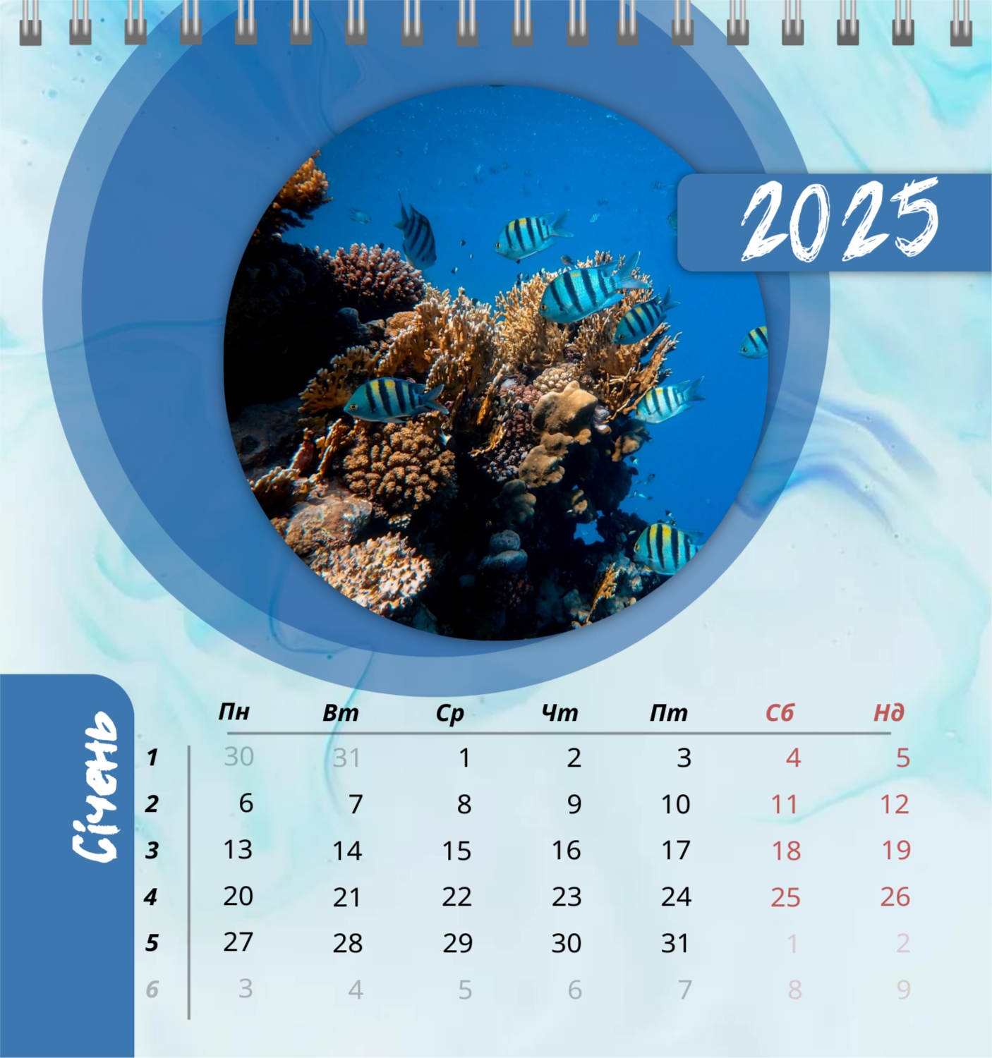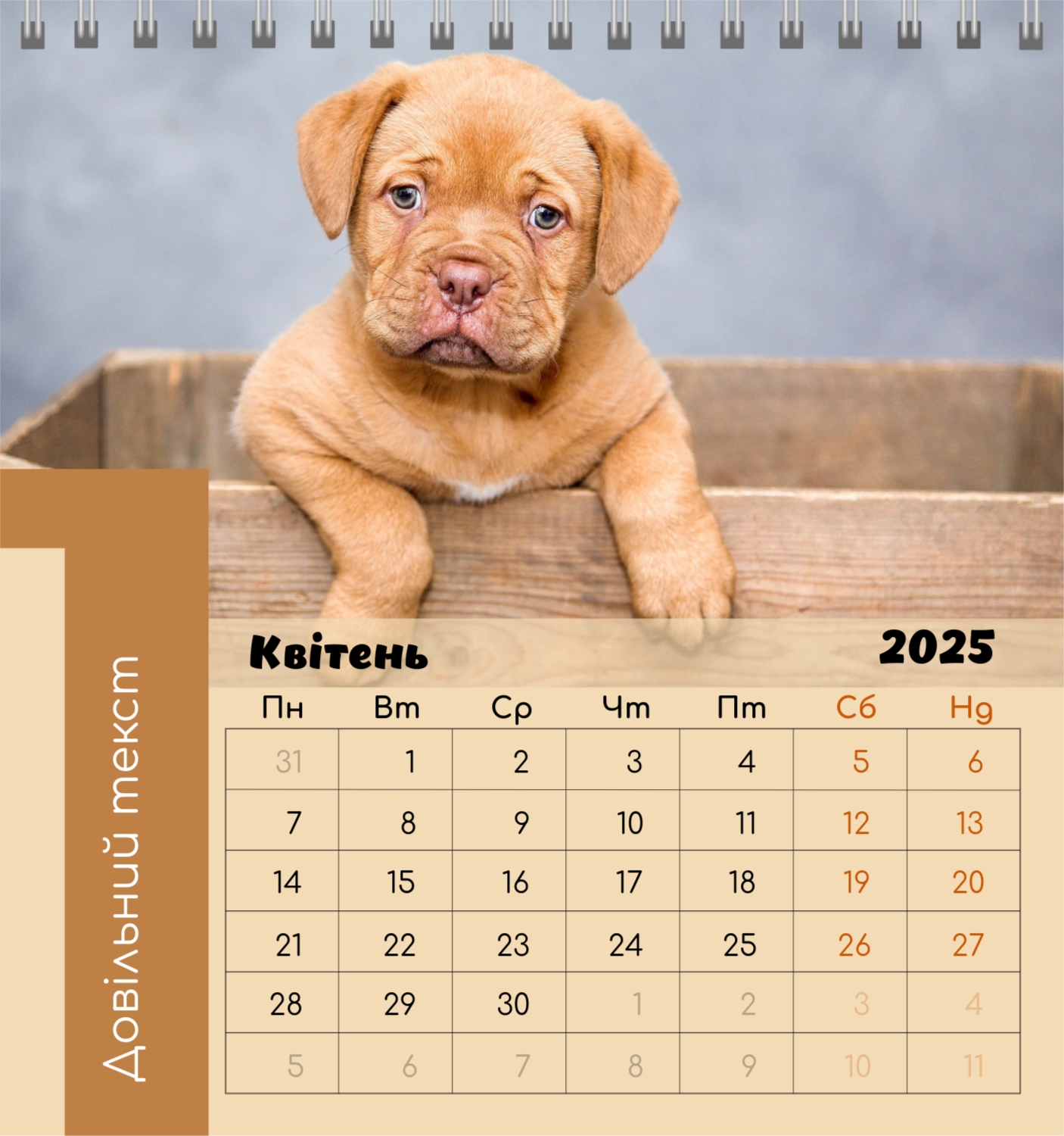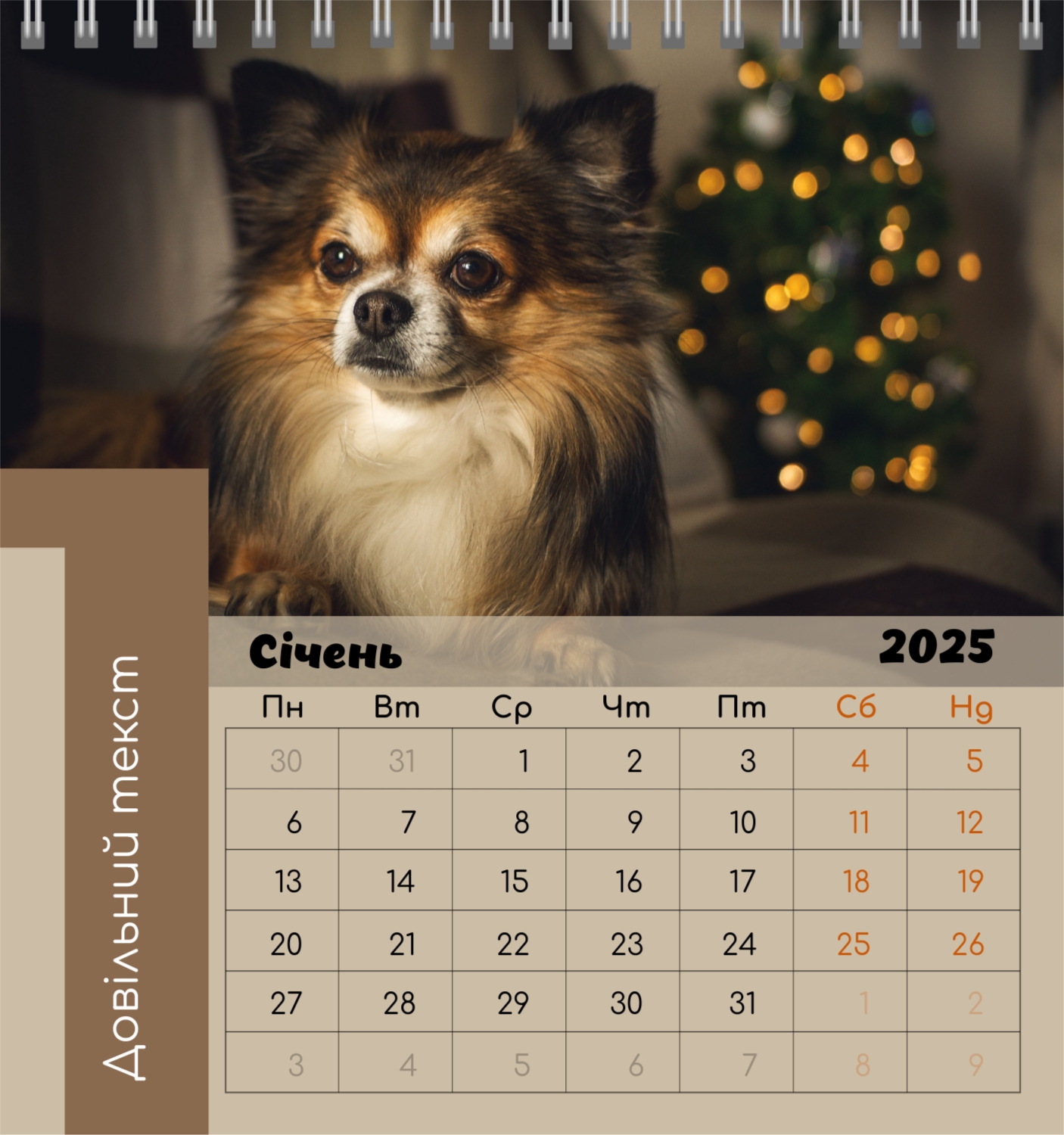 Безкоштовний шаблон календаря-будиночка онлайн магазину handmade, послуг майстра рукоділля. Створіть макет власноруч у конструкторі календарів.