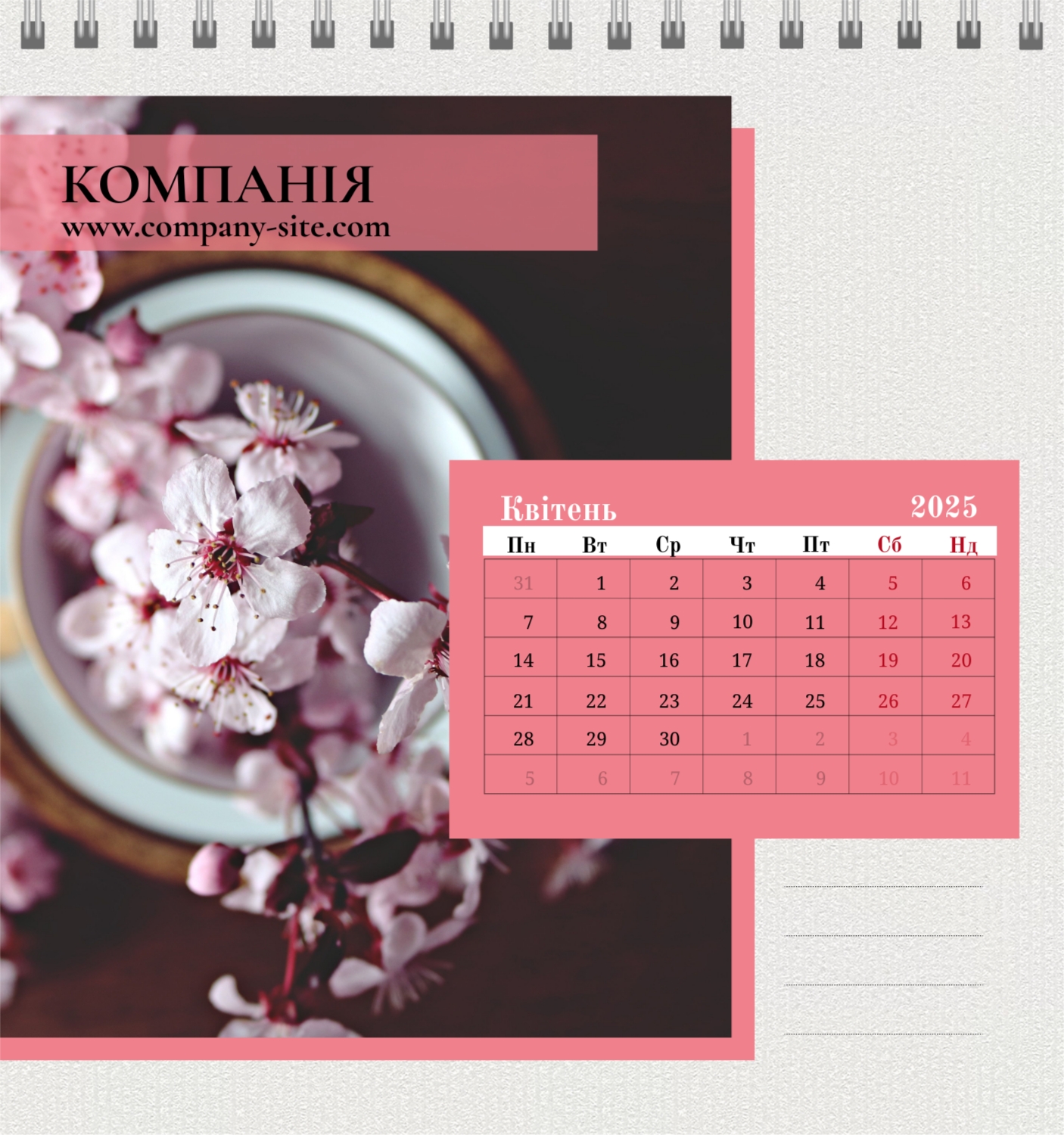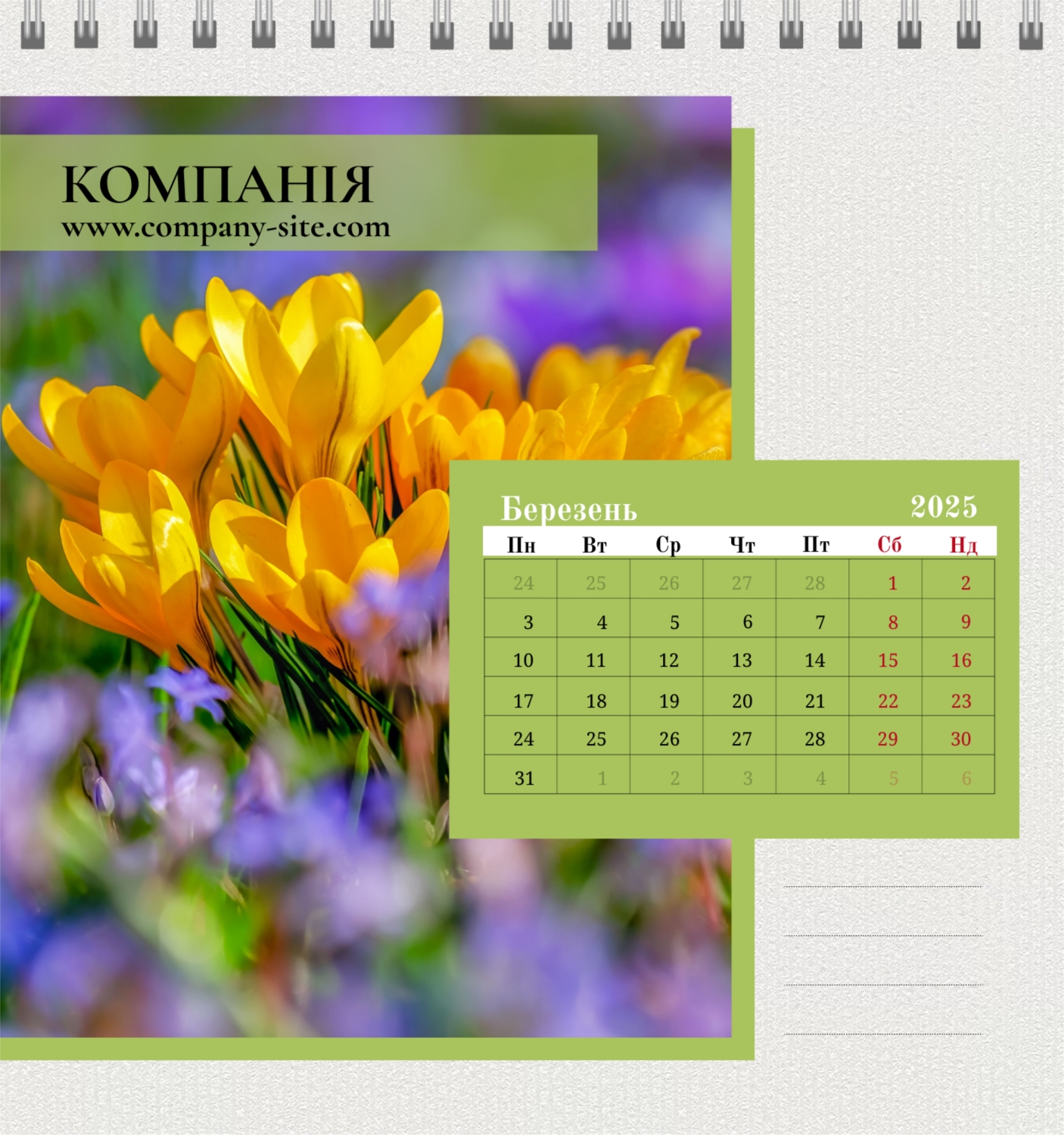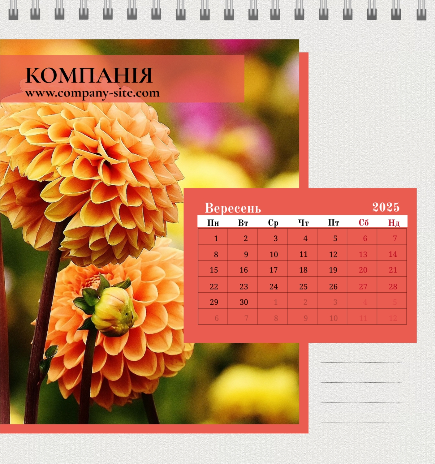 Шаблон календаря магазину квітів