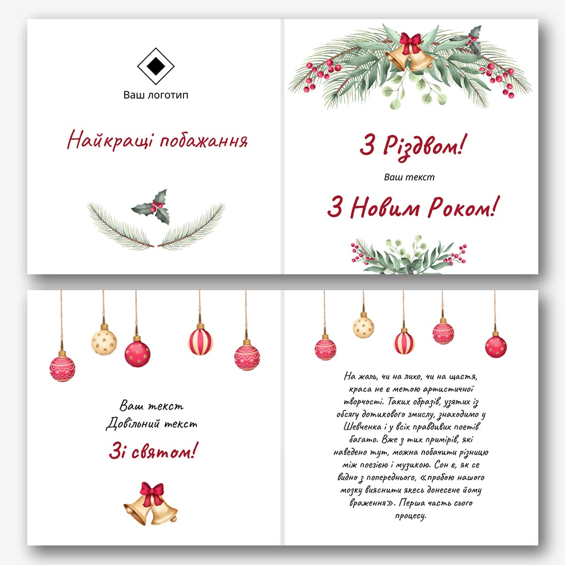 Шаблон листівки з Новим Роком та Різдвом Христовим
