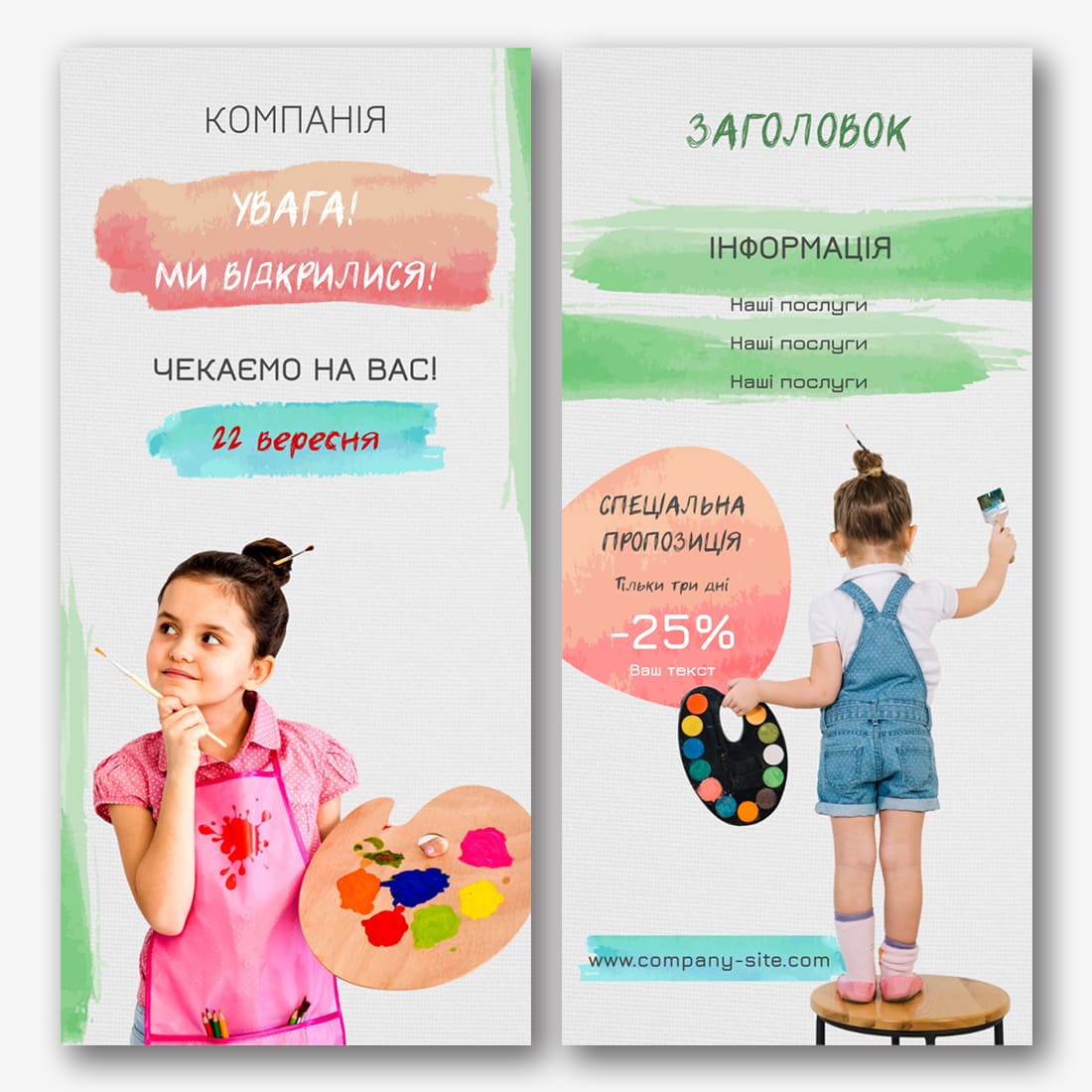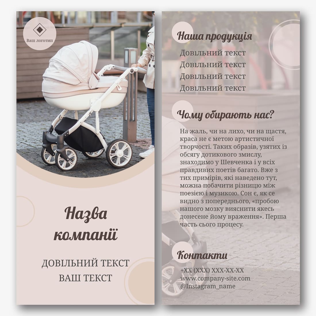 Безкоштовний шаблон флаєра для реклами магазину дитячого одягу, шоурума, дитячого інтернет-магазину. Створіть макет флаєра своїми руками в онлайн-конструкторі флаєрів.