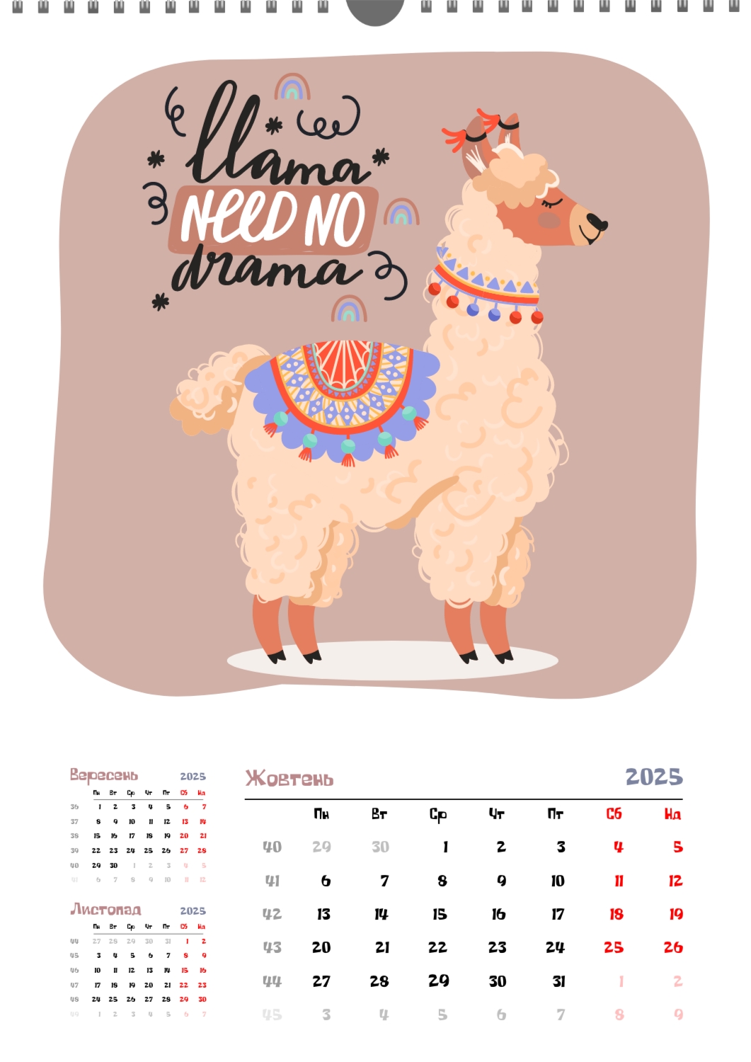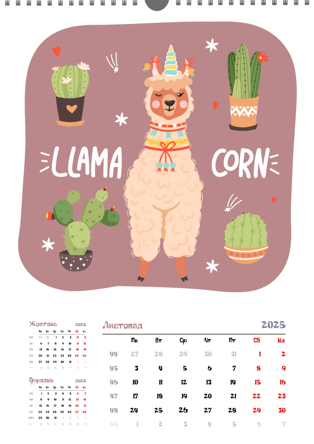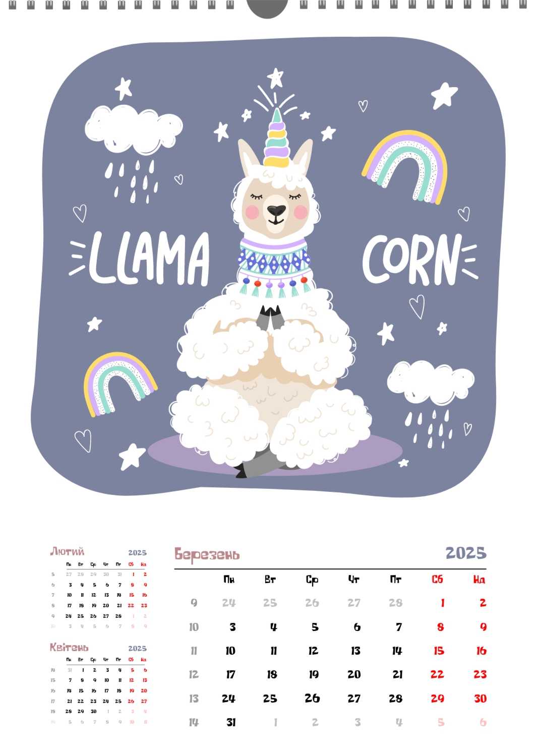 Безкоштовний шаблон новорічного календаря для привітання друзів та рідних. Створіть макет своїми руками в конструкторі календарів.
