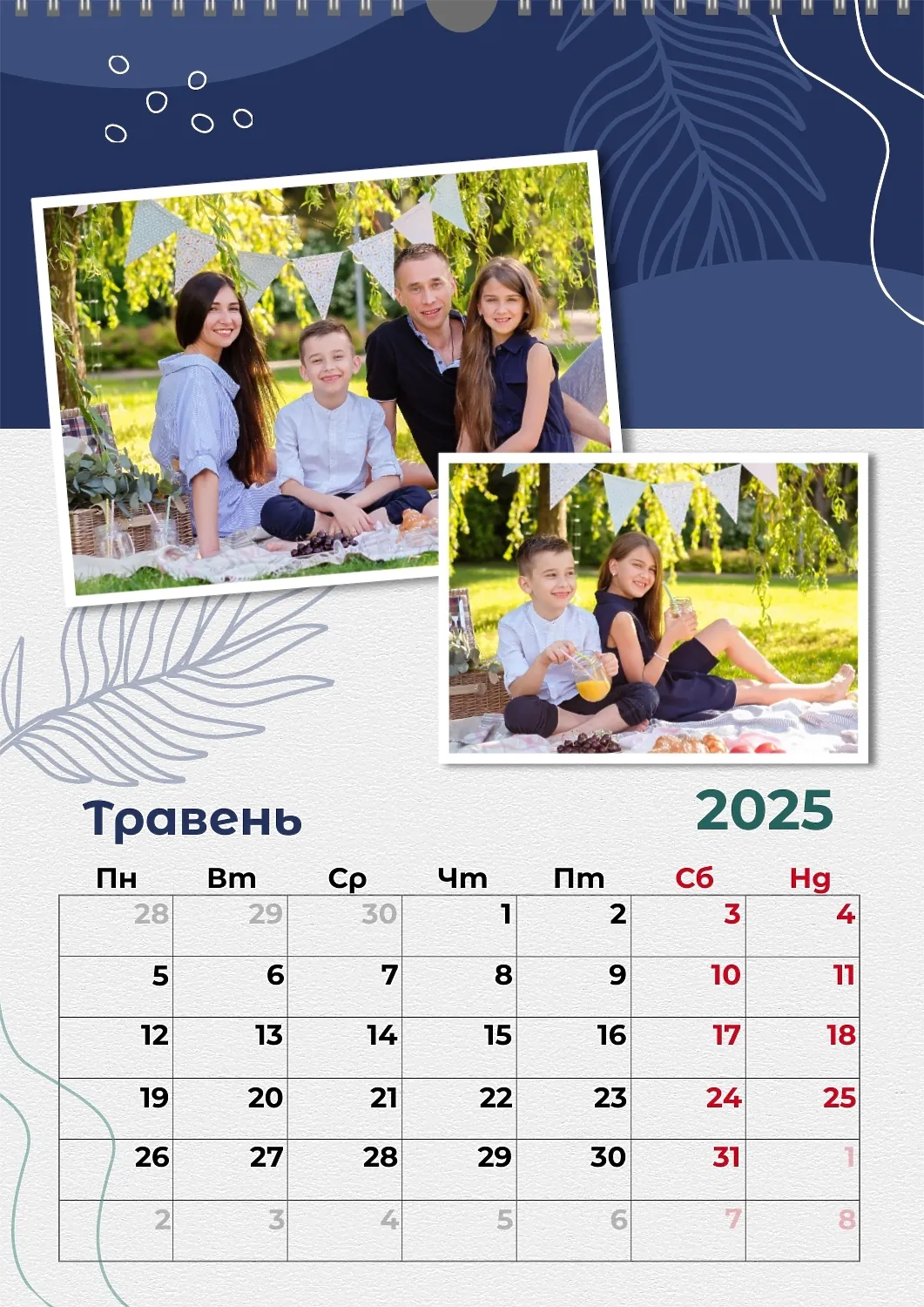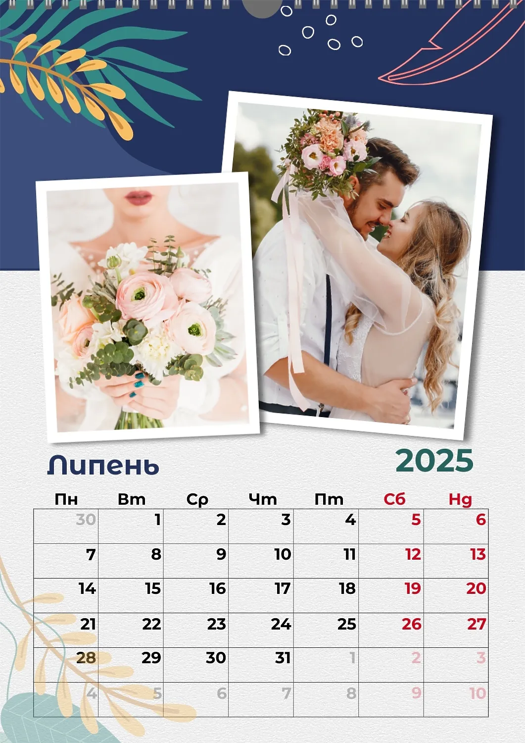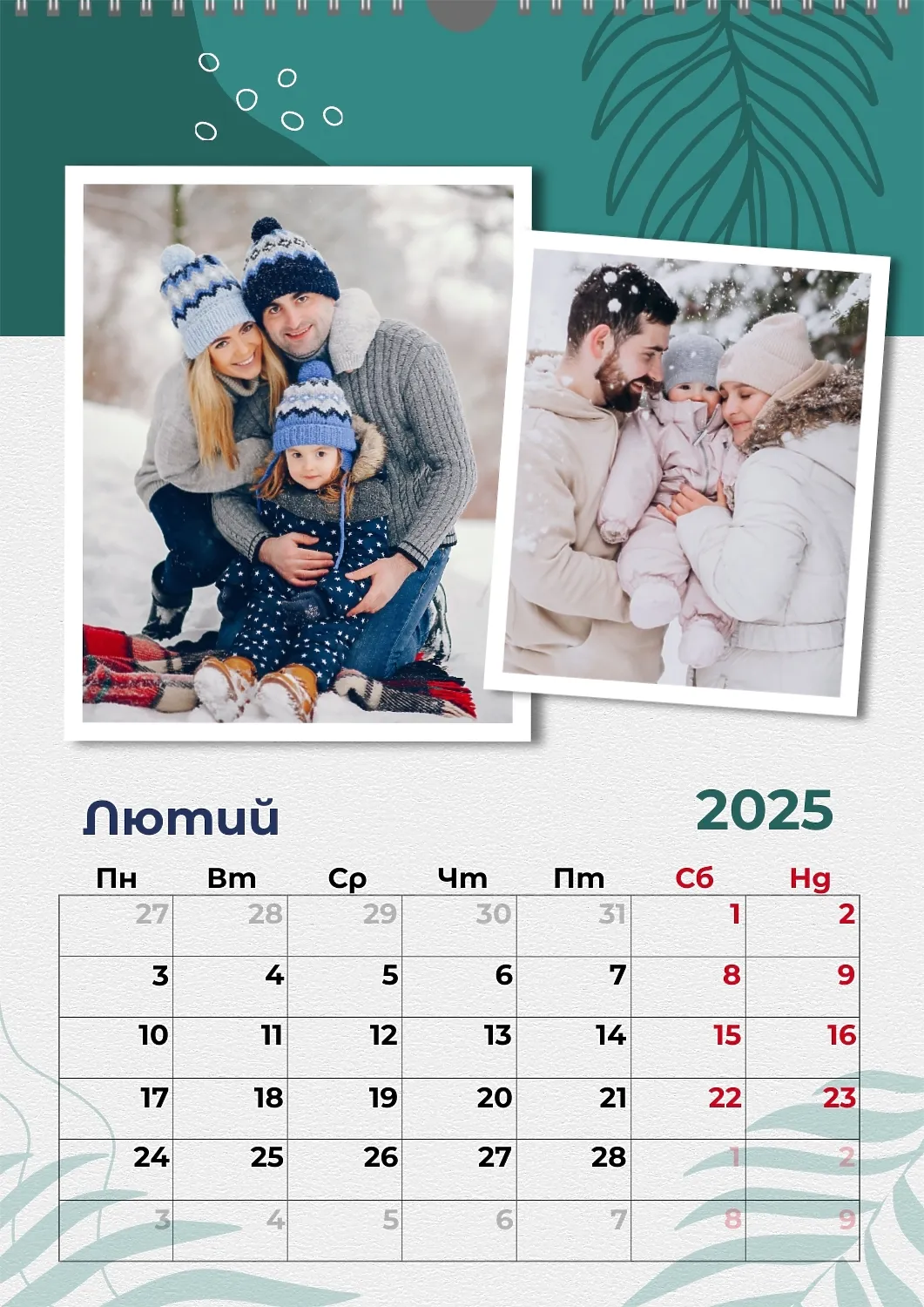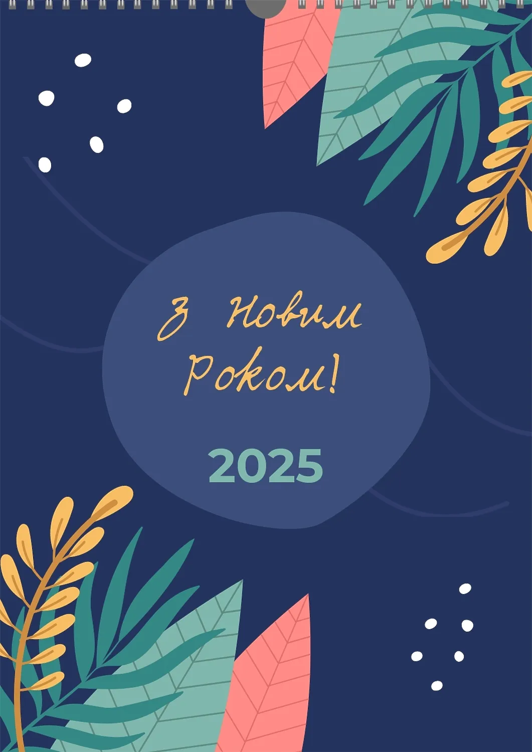 Безкоштовний шаблон новорічного календаря для привітання друзів та рідних. Створіть макет своїми руками в конструкторі календарів.