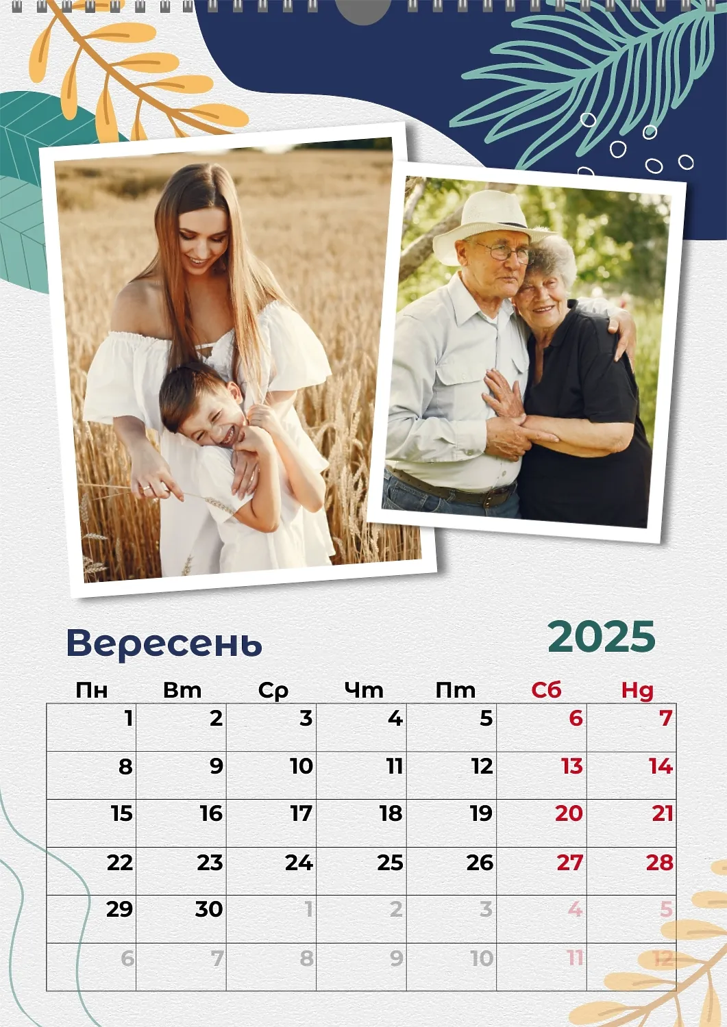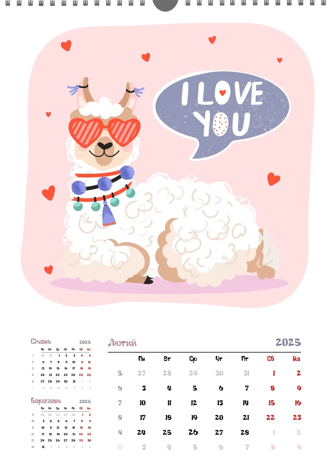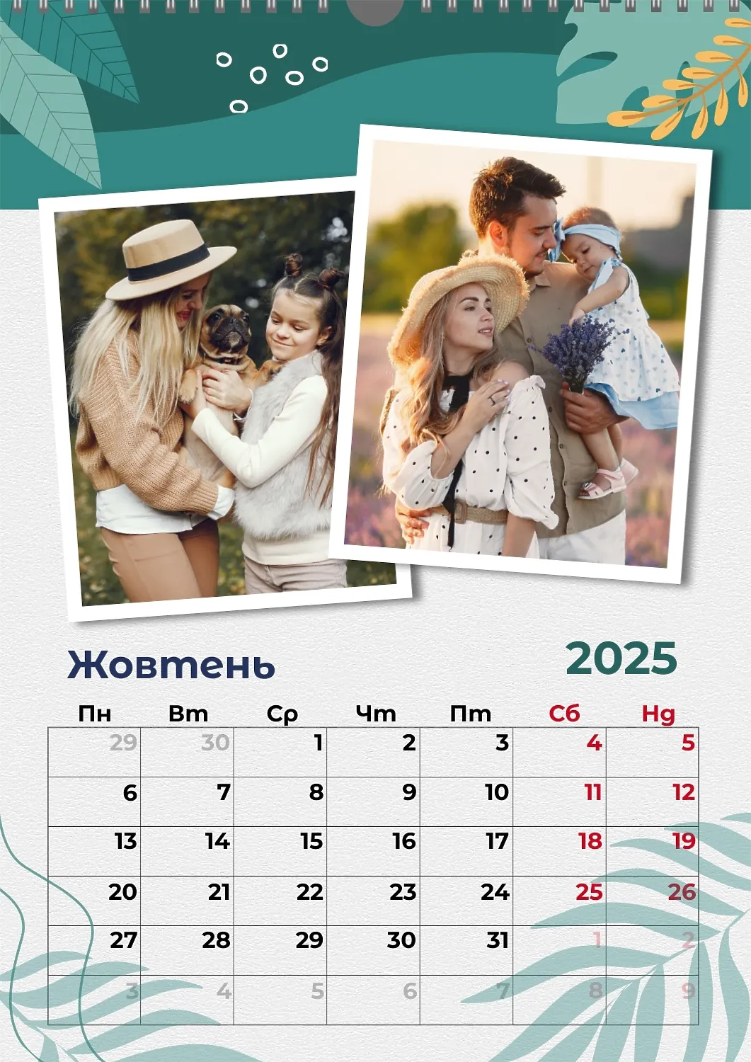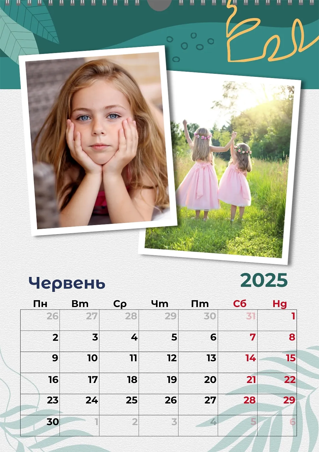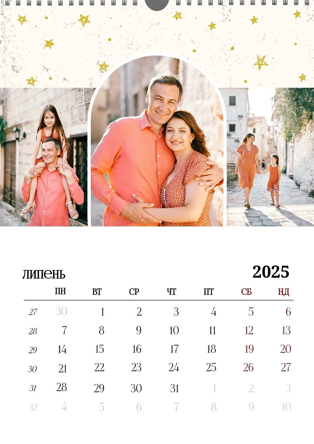 Безкоштовний шаблон новорічного календаря для привітання друзів та рідних. Створіть макет своїми руками в конструкторі календарів.