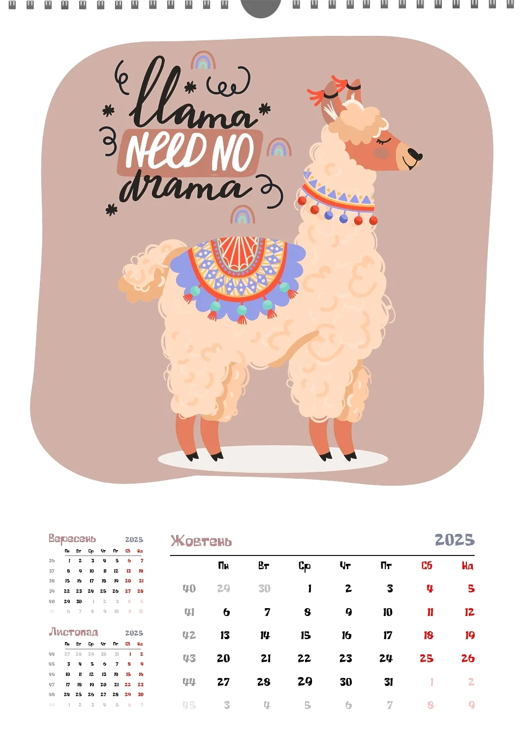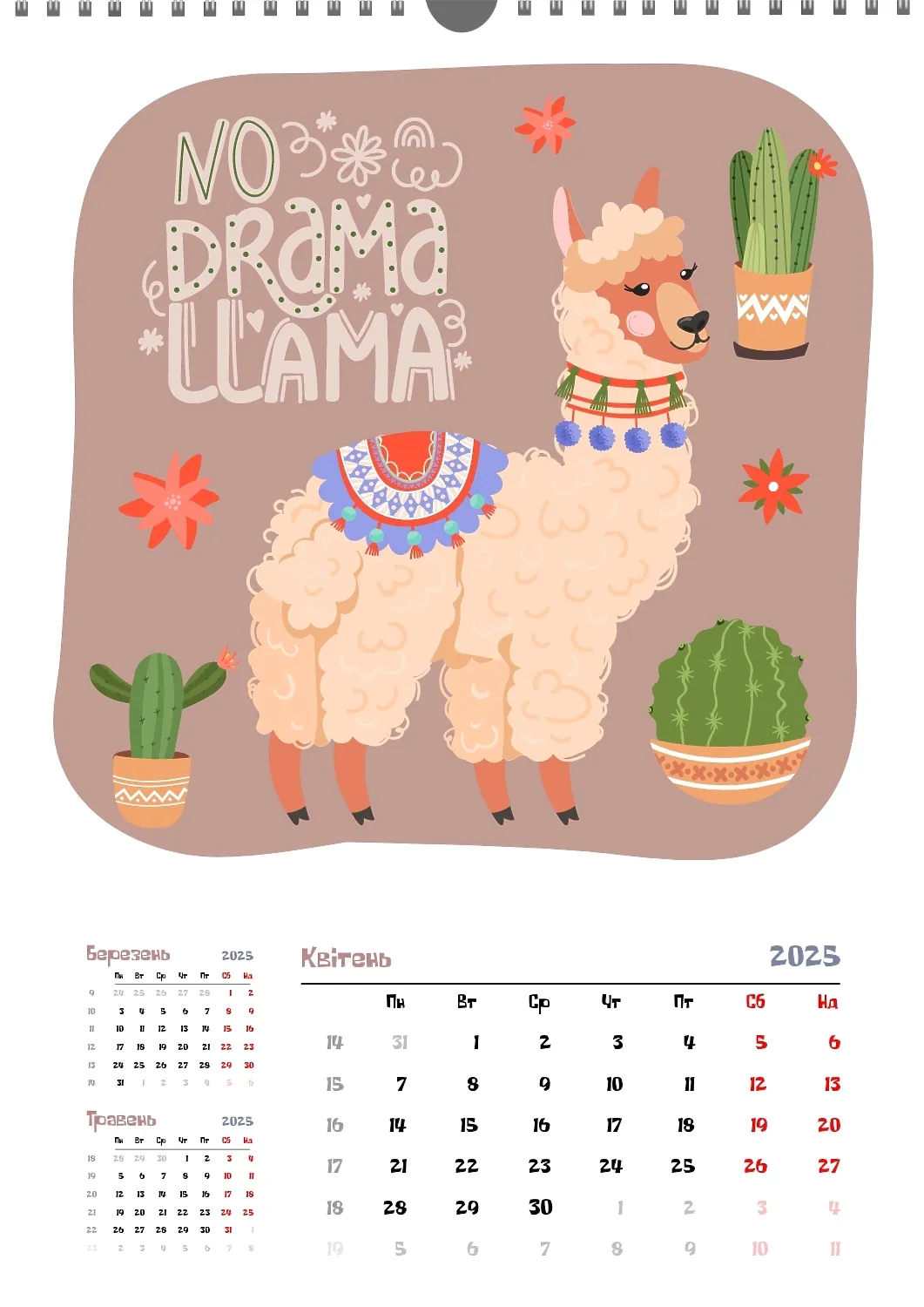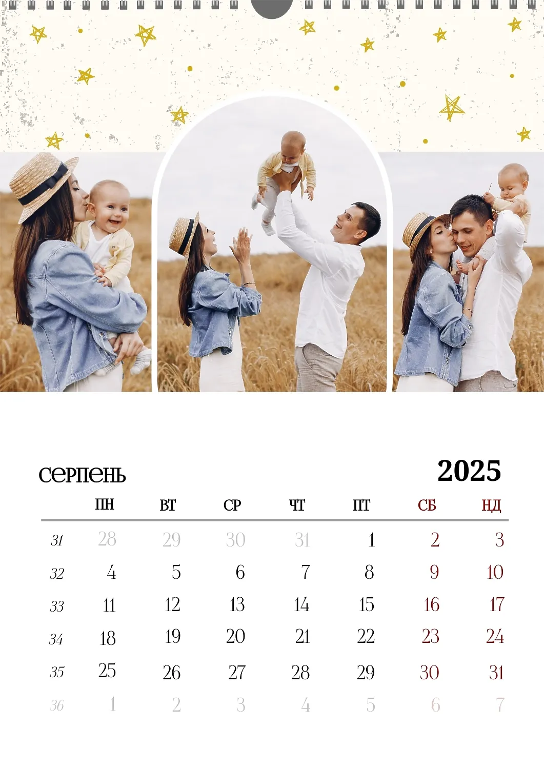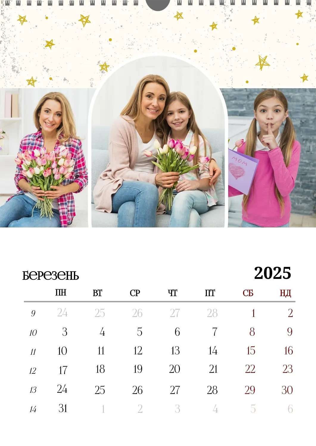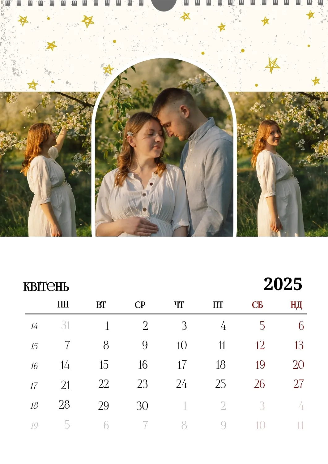 Безкоштовний шаблон новорічного календаря для привітання друзів та рідних. Створіть макет своїми руками в конструкторі календарів.
