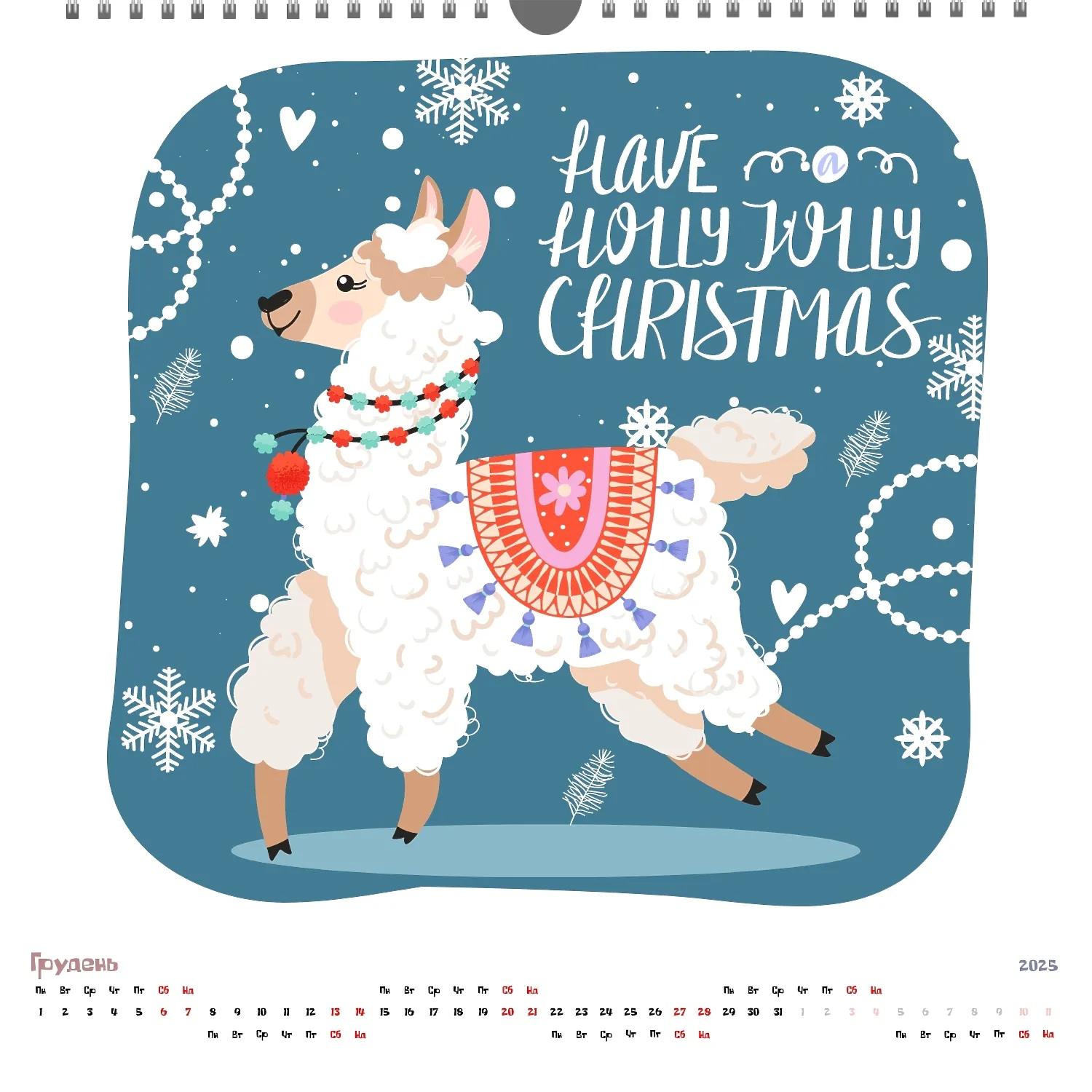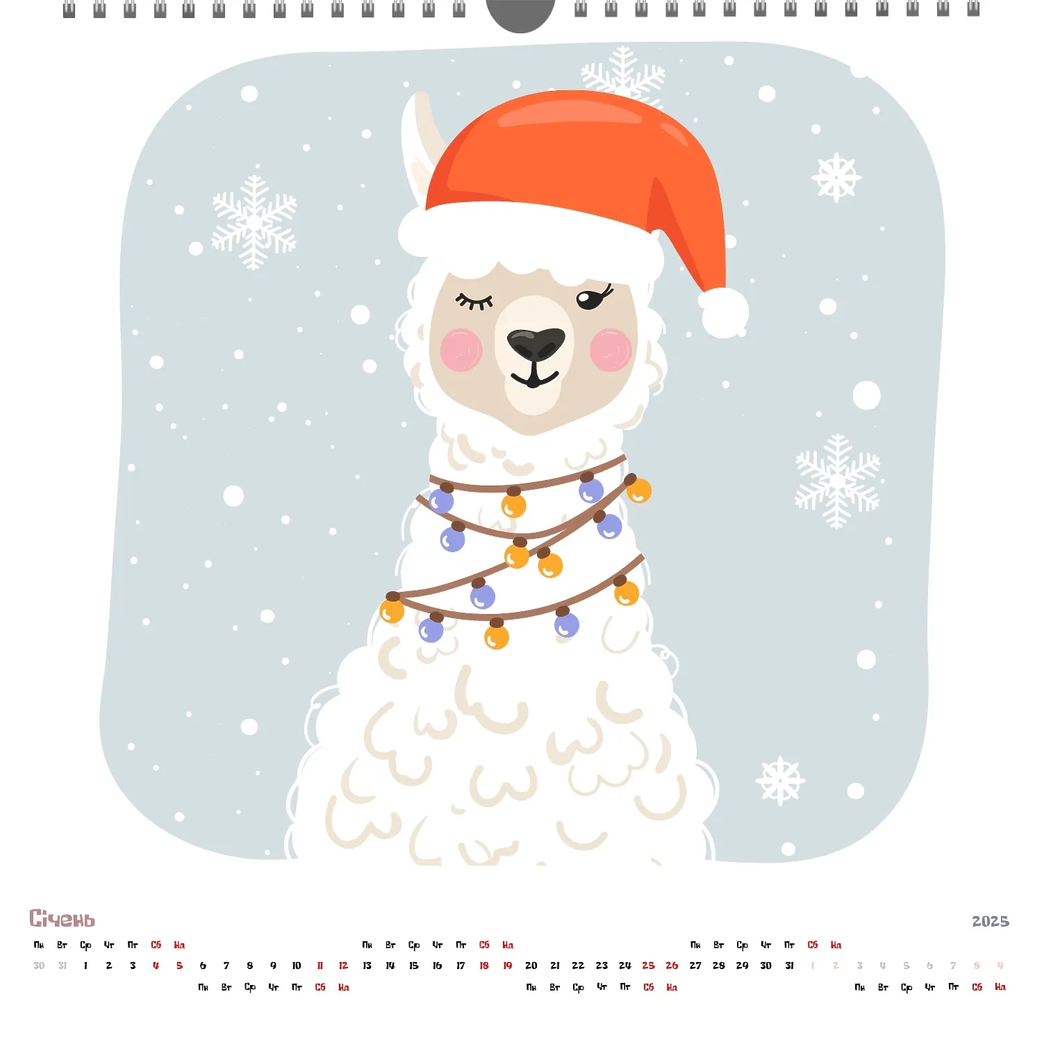 Безкоштовний шаблон новорічного календаря для привітання друзів та родичів. Створіть макет своїми руками в конструкторі календарів.