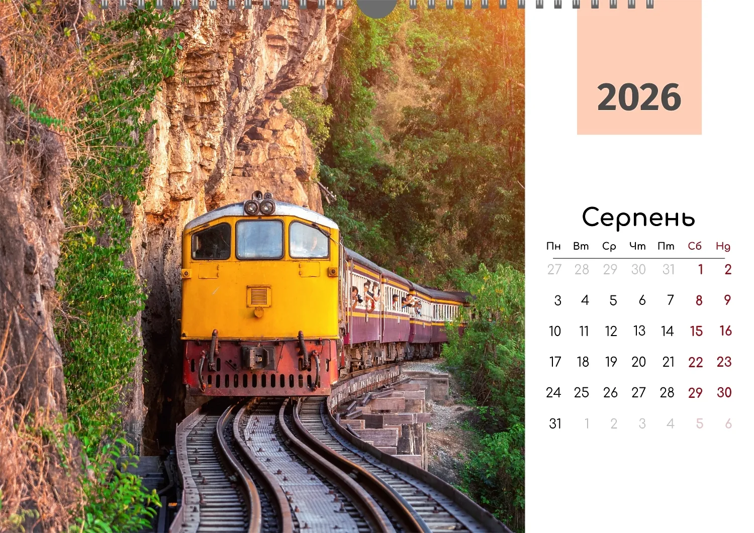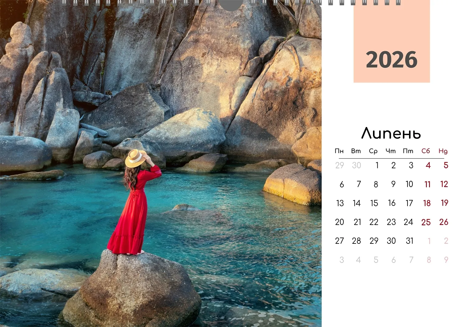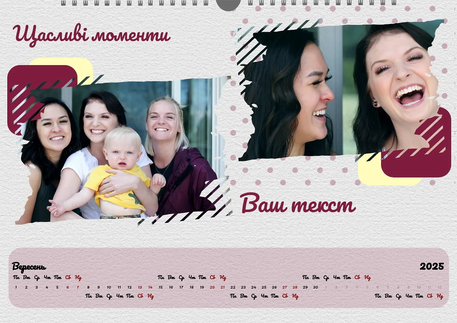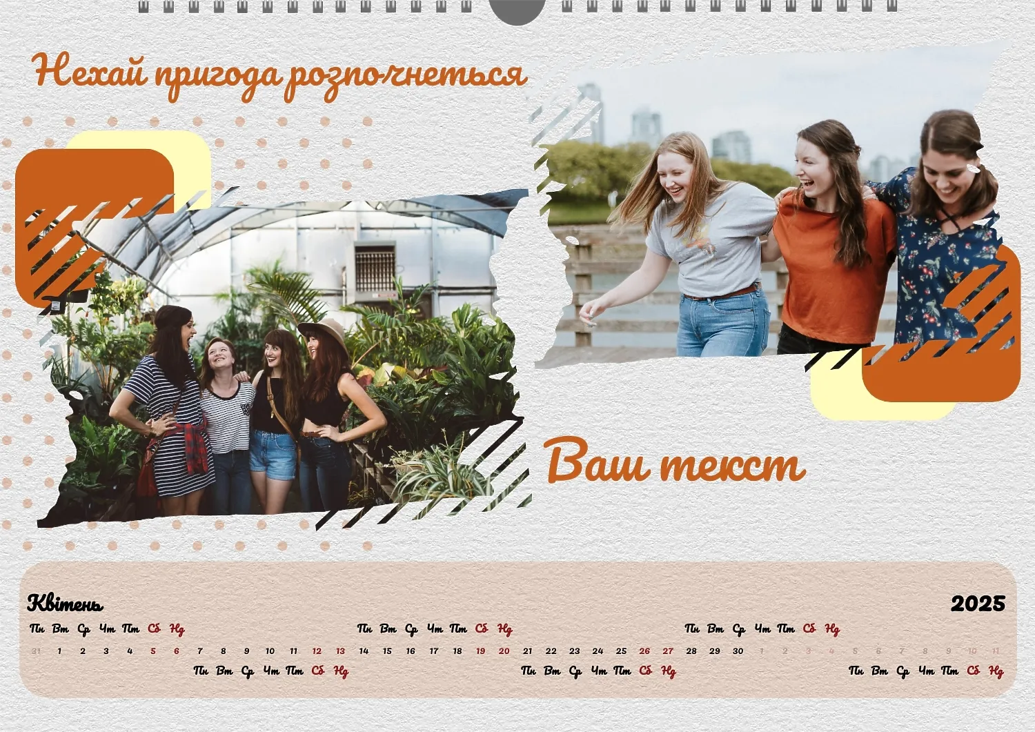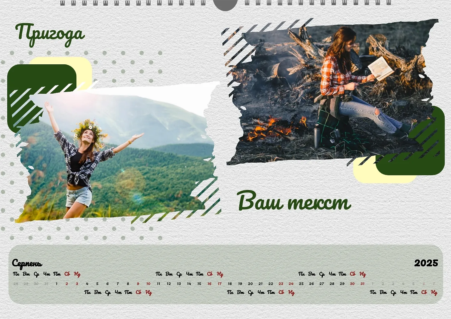Безкоштовний шаблон календаря з пам'ятними моментами подорожей, сімейного відпочинку, відпустки. Створіть макет власноруч в онлайн-конструкторі календарів.