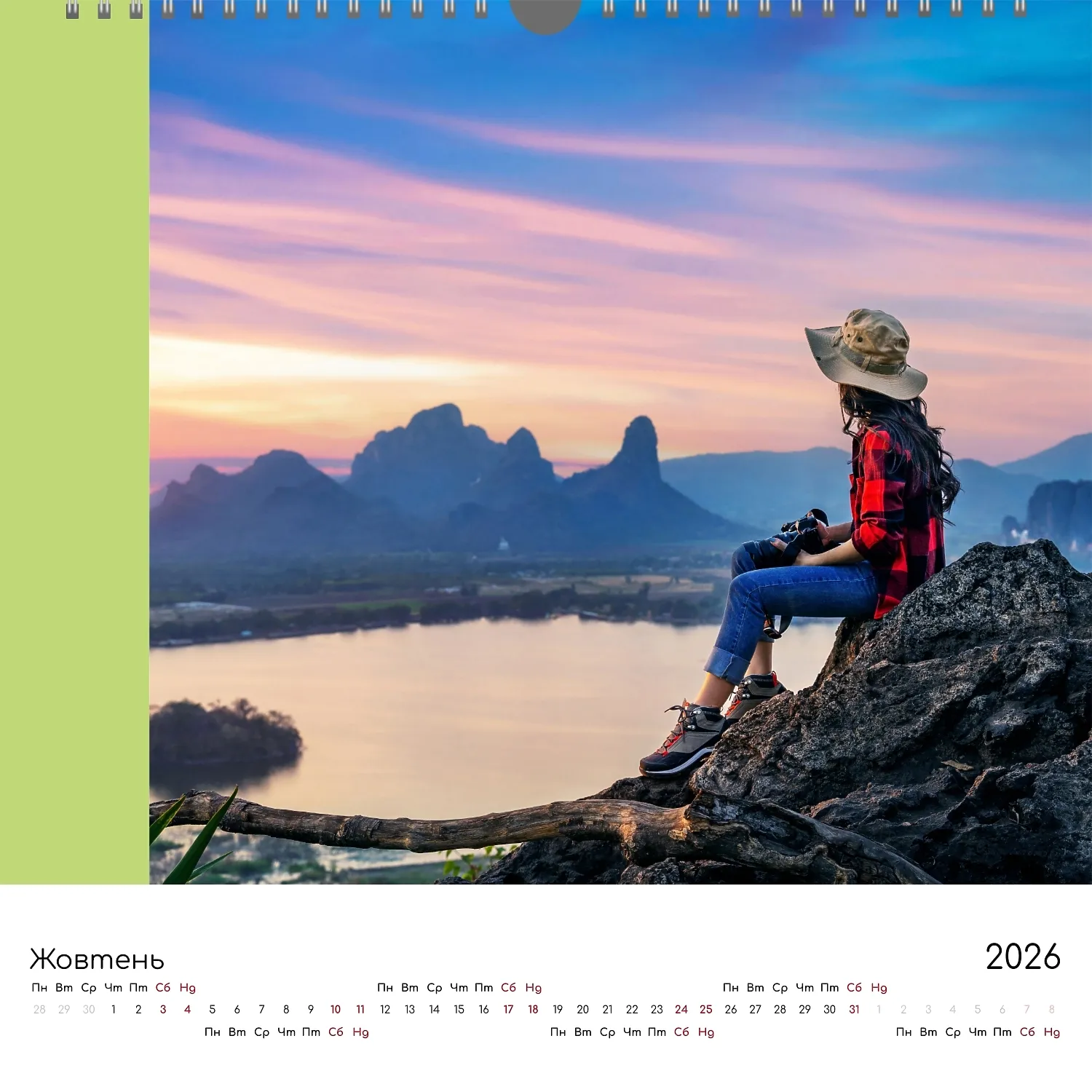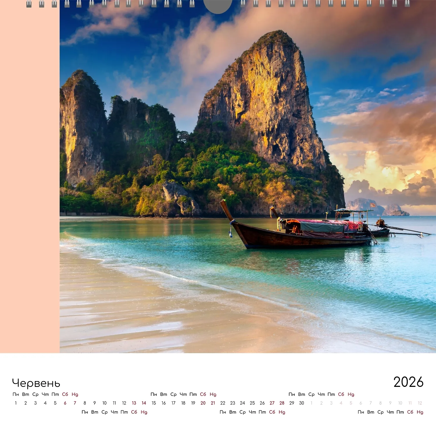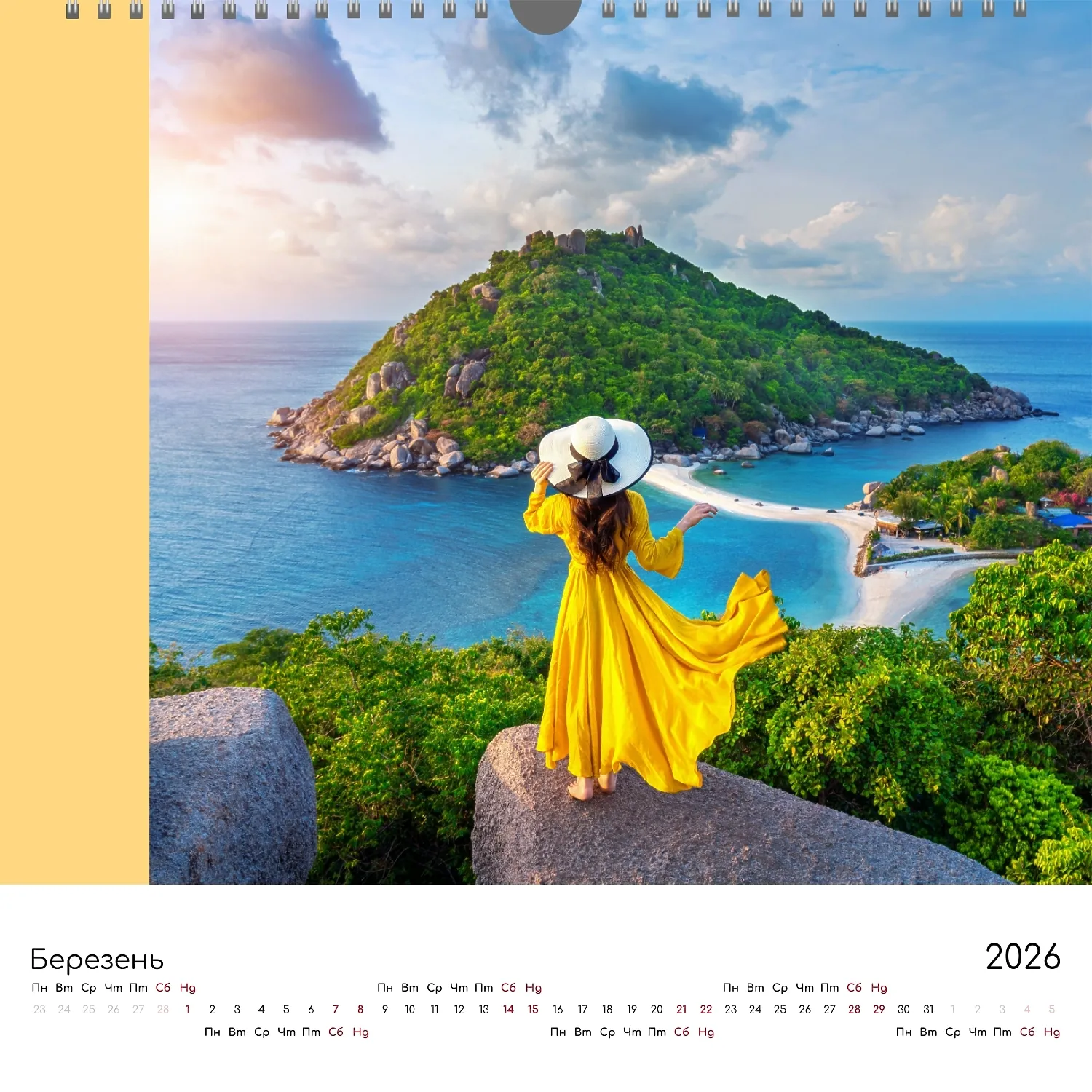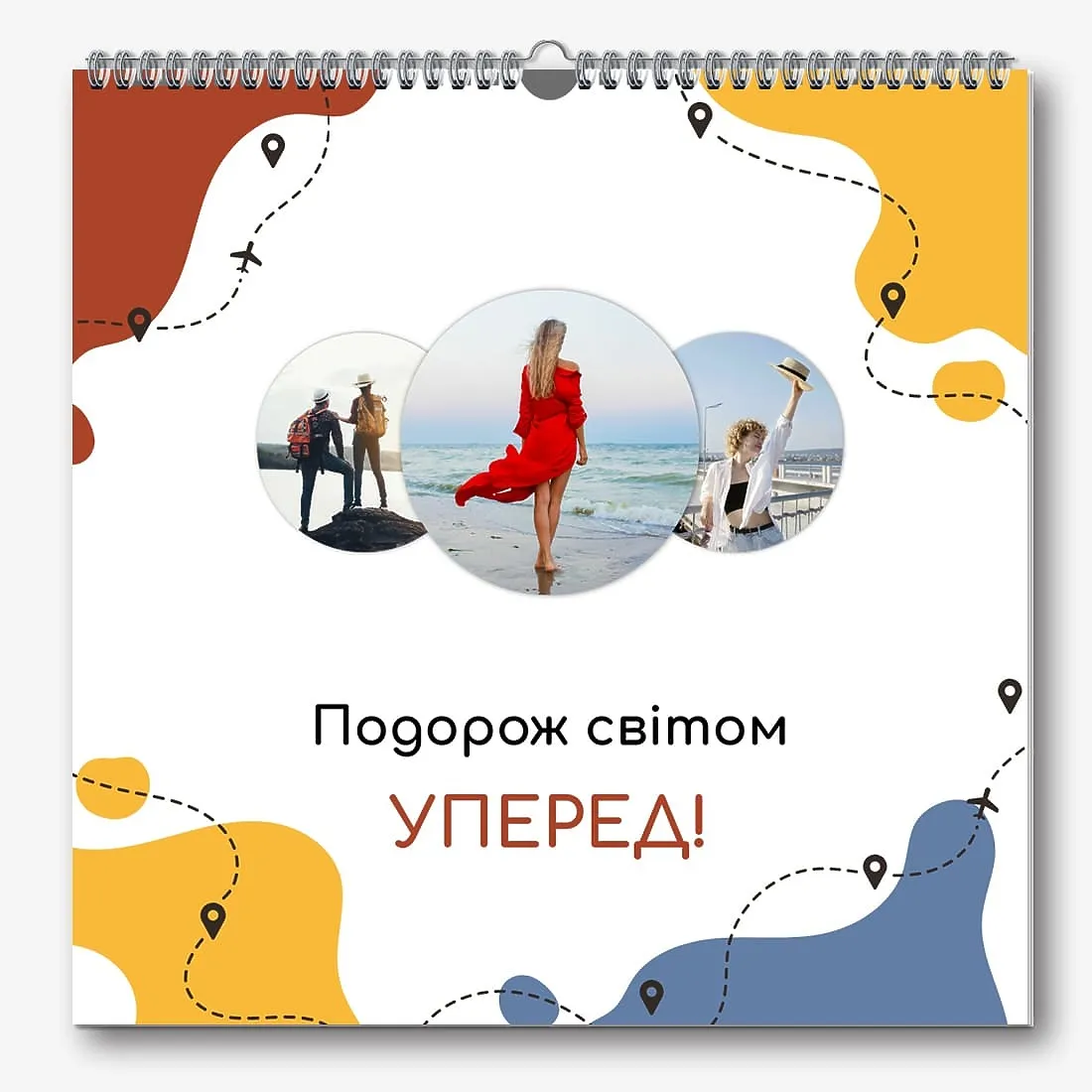 Безкоштовний шаблон календаря з пам'ятними моментами подорожей, сімейного відпочинку, відпустки. Створіть макет власноруч в онлайн-конструкторі календарів.
