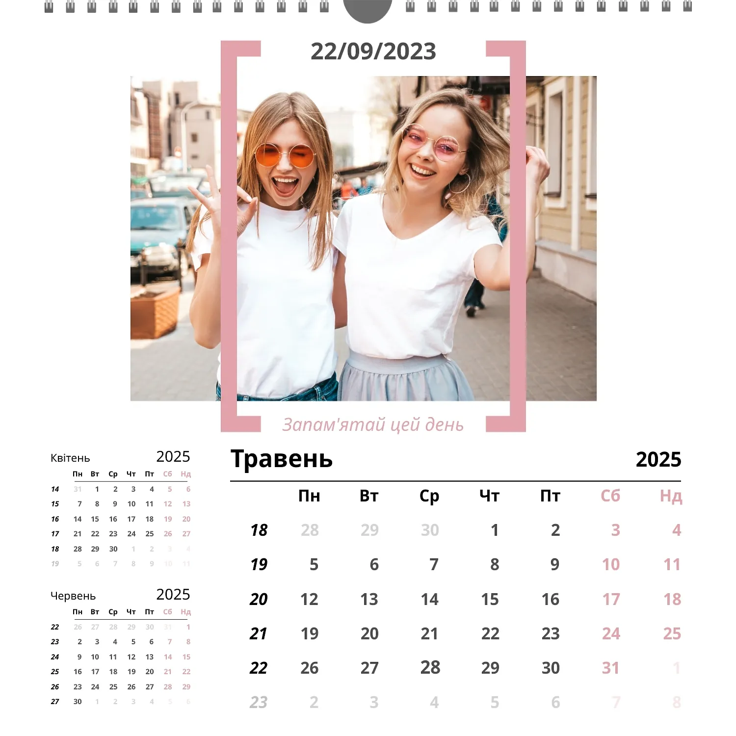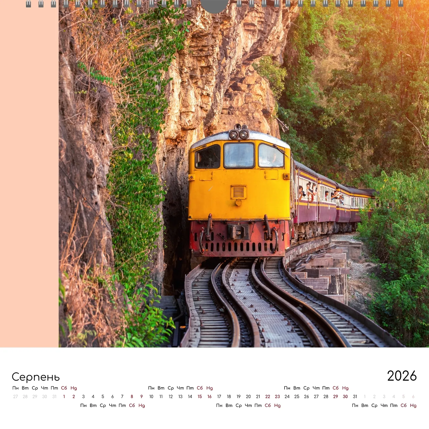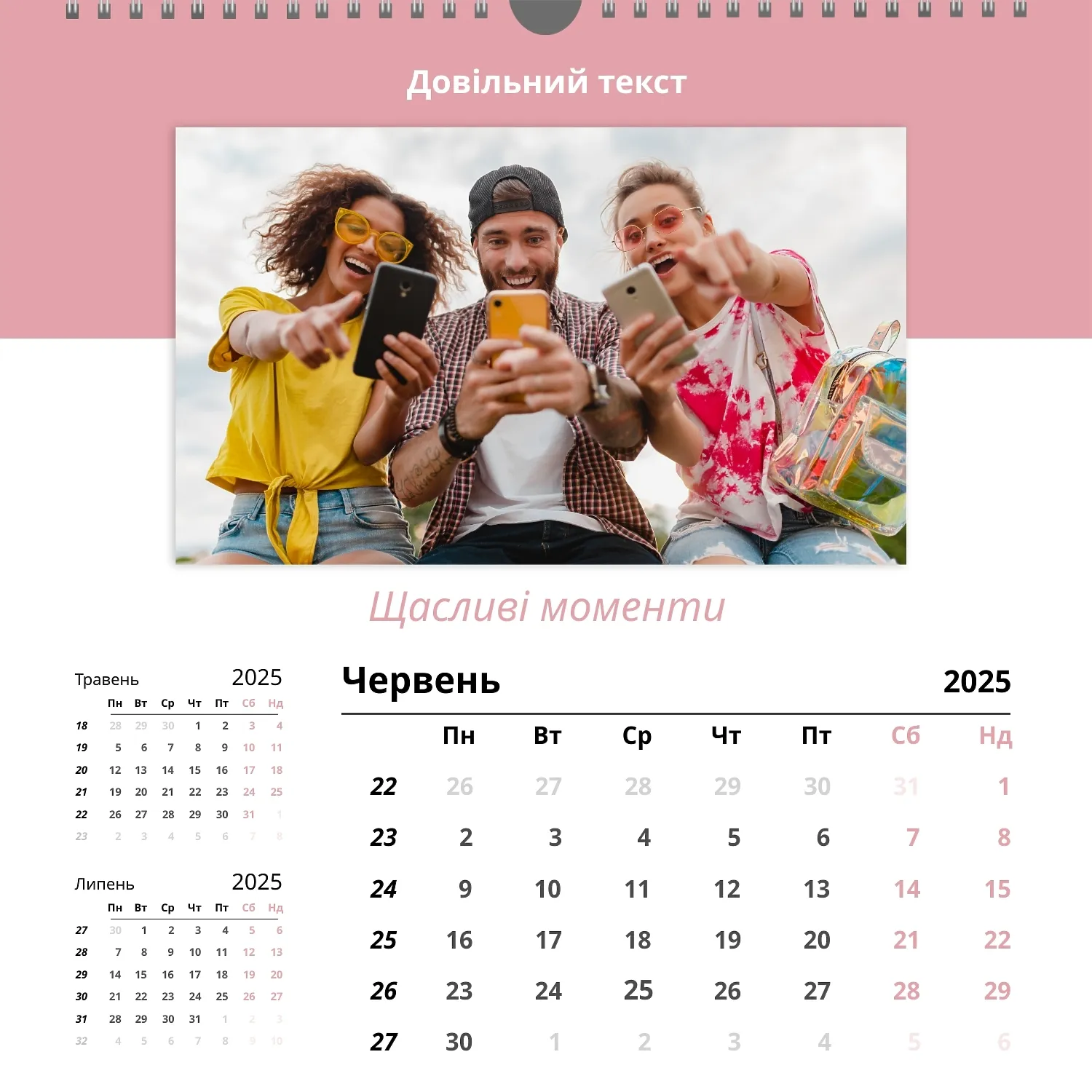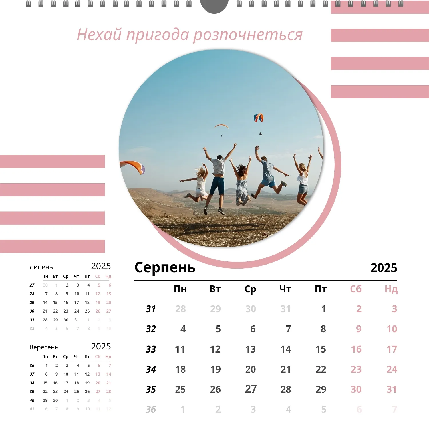 Безкоштовний шаблон календаря з пам'ятними моментами подорожей, сімейного відпочинку, відпустки. Створіть макет власноруч в онлайн-конструкторі календарів.