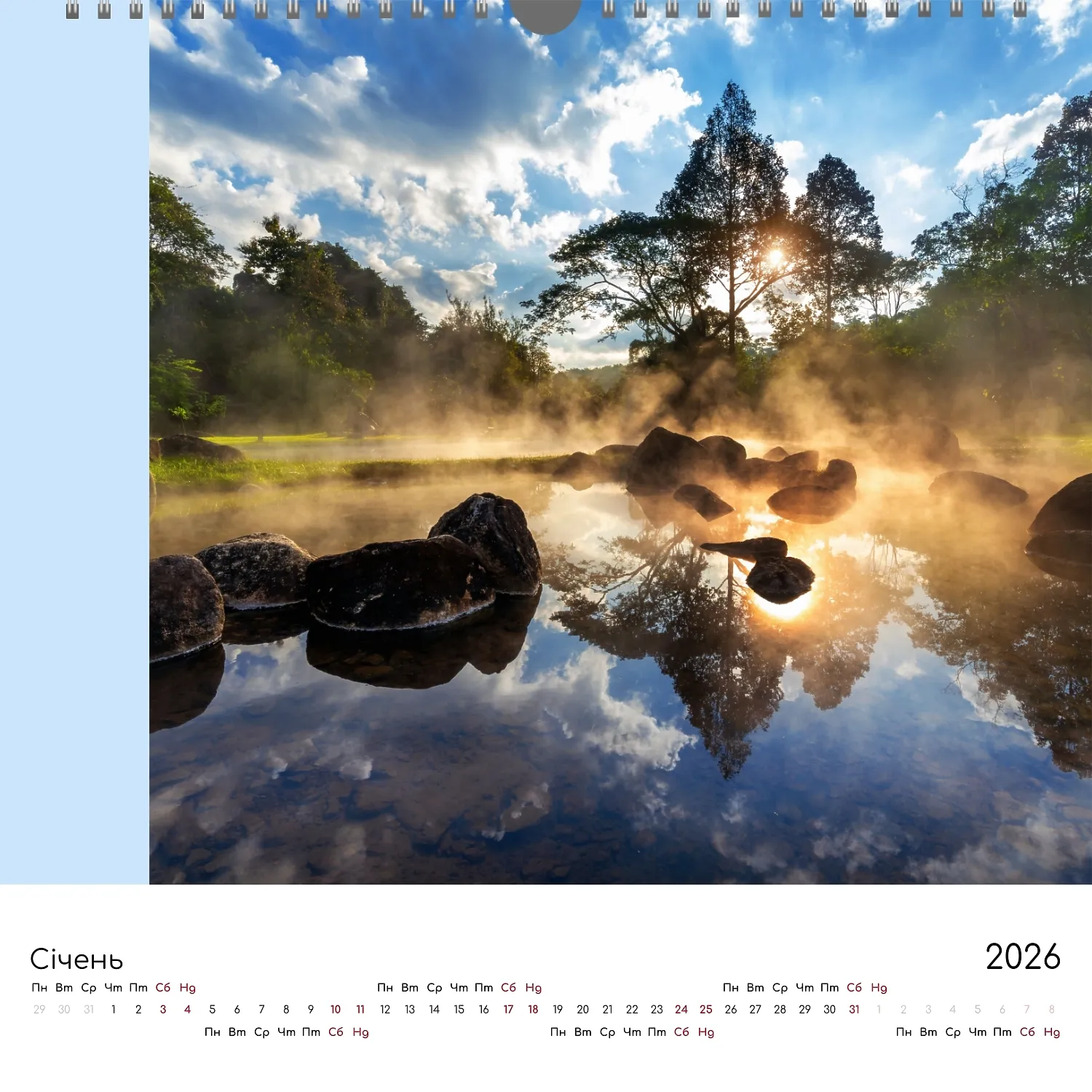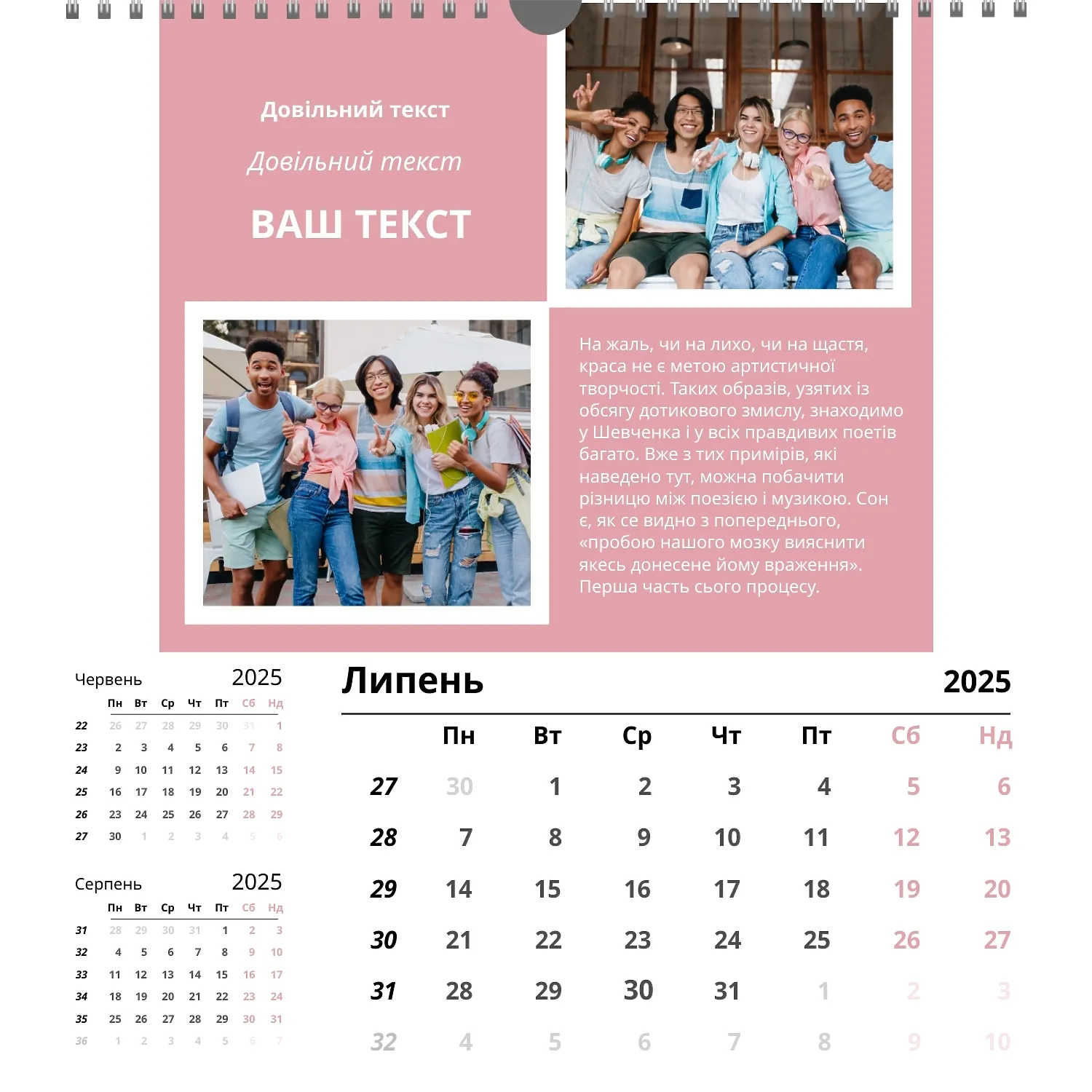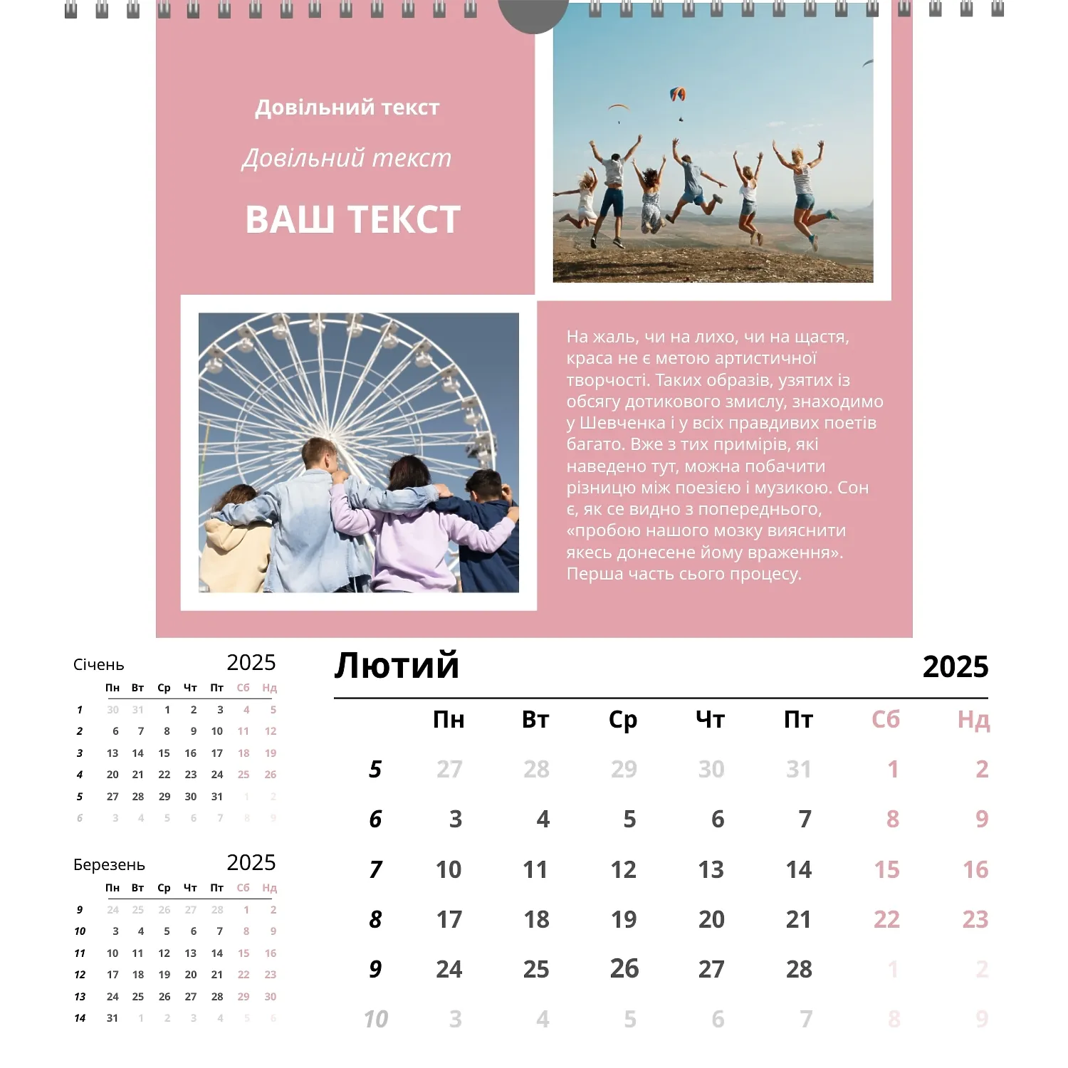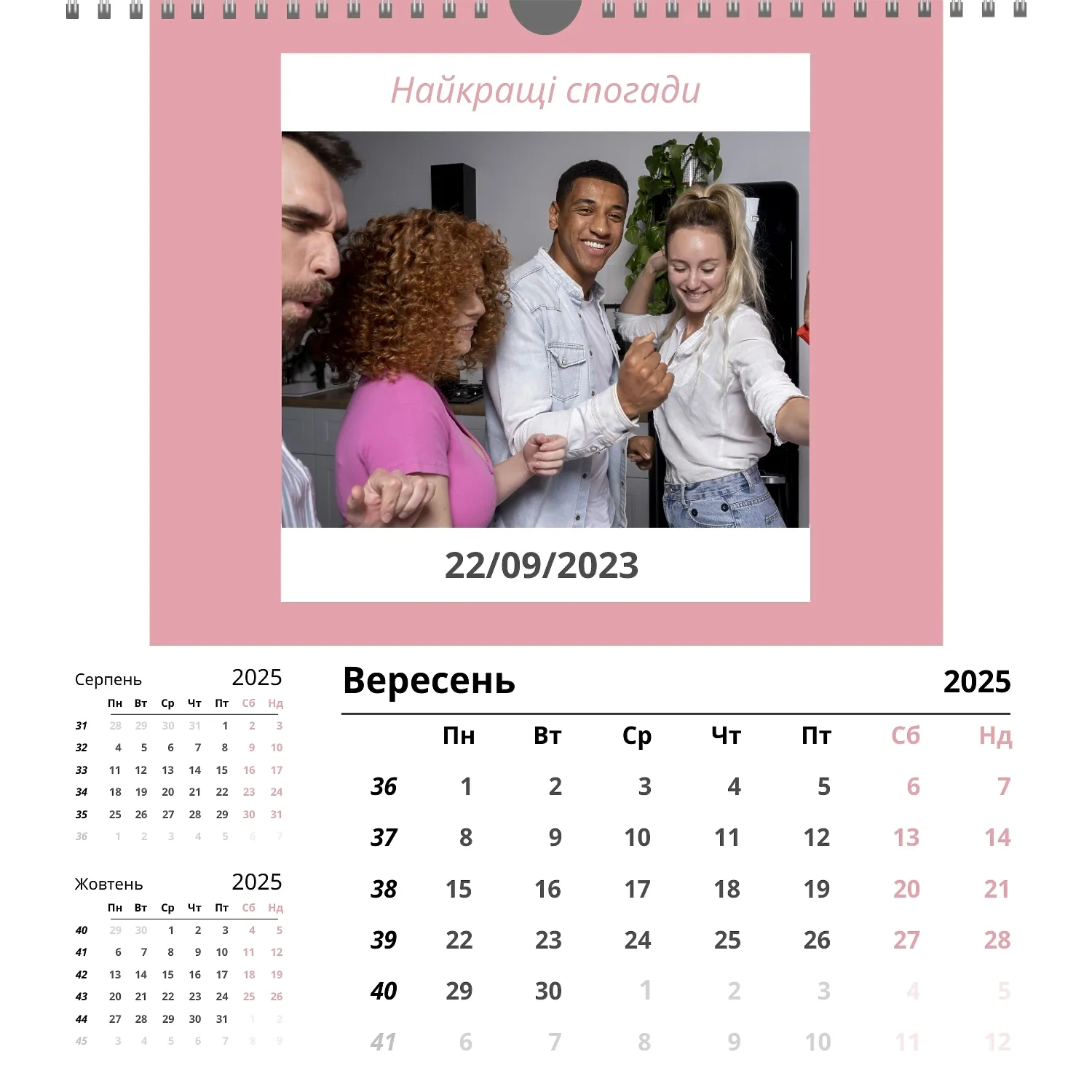 Безкоштовний шаблон календаря з пам'ятними моментами подорожей, сімейного відпочинку, відпустки. Створіть макет власноруч в онлайн-конструкторі календарів.