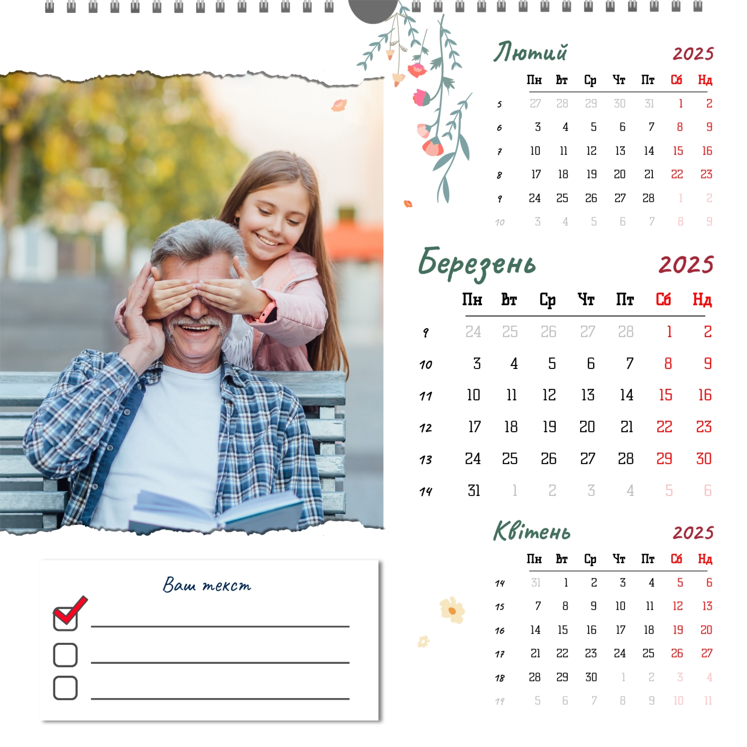 Безкоштовний шаблон ретро календаря для бабусі та дідуся. Створіть макет своїми руками в конструкторі календарів.