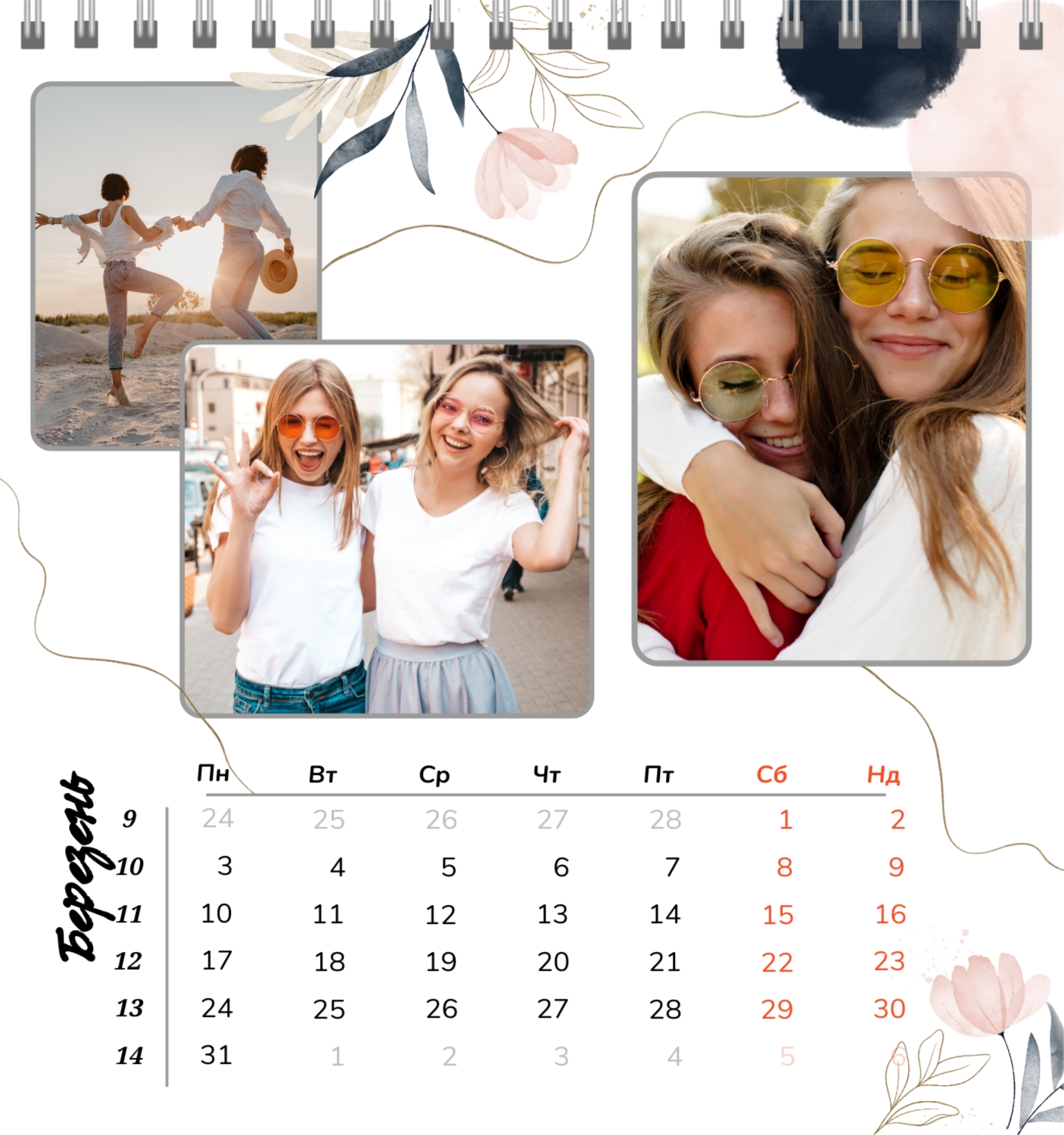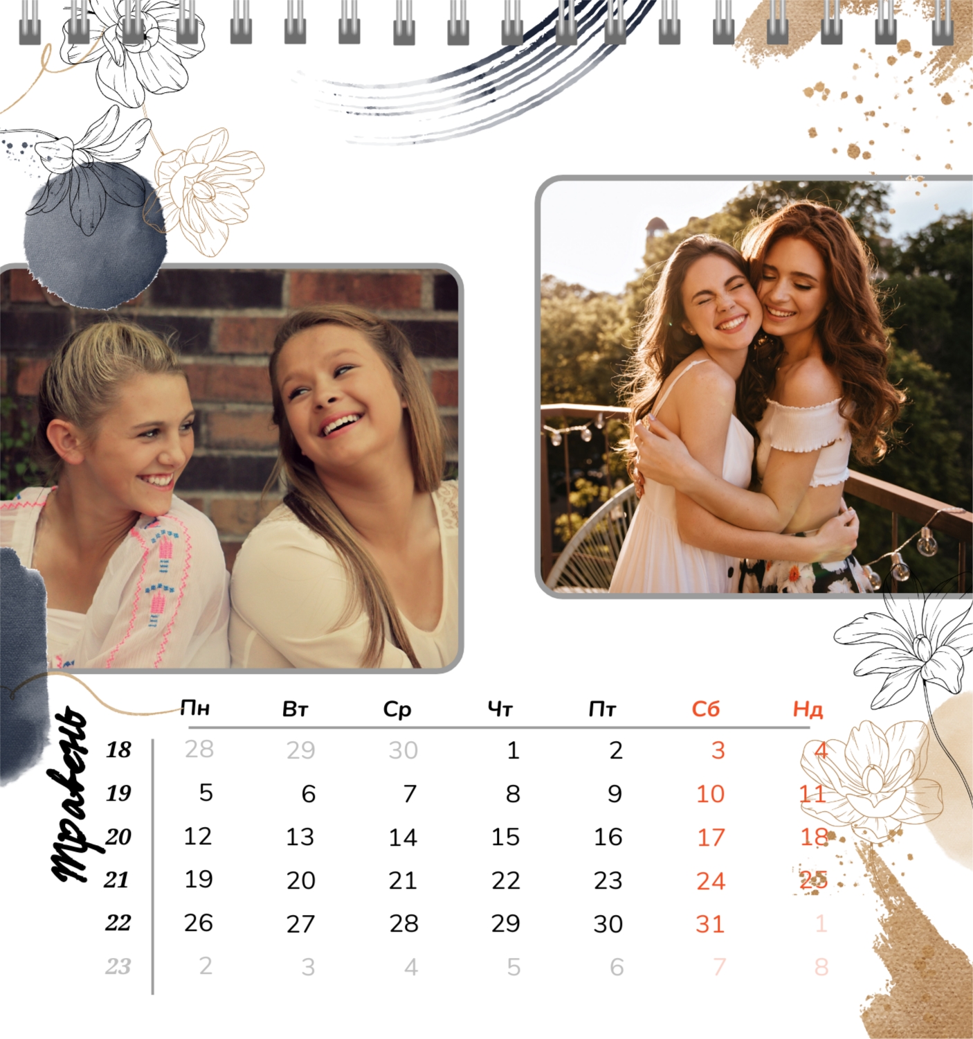 Безкоштовний шаблон календаря з найкращими спогадами закоханих. Створіть макет своїми руками в конструкторі календарів.