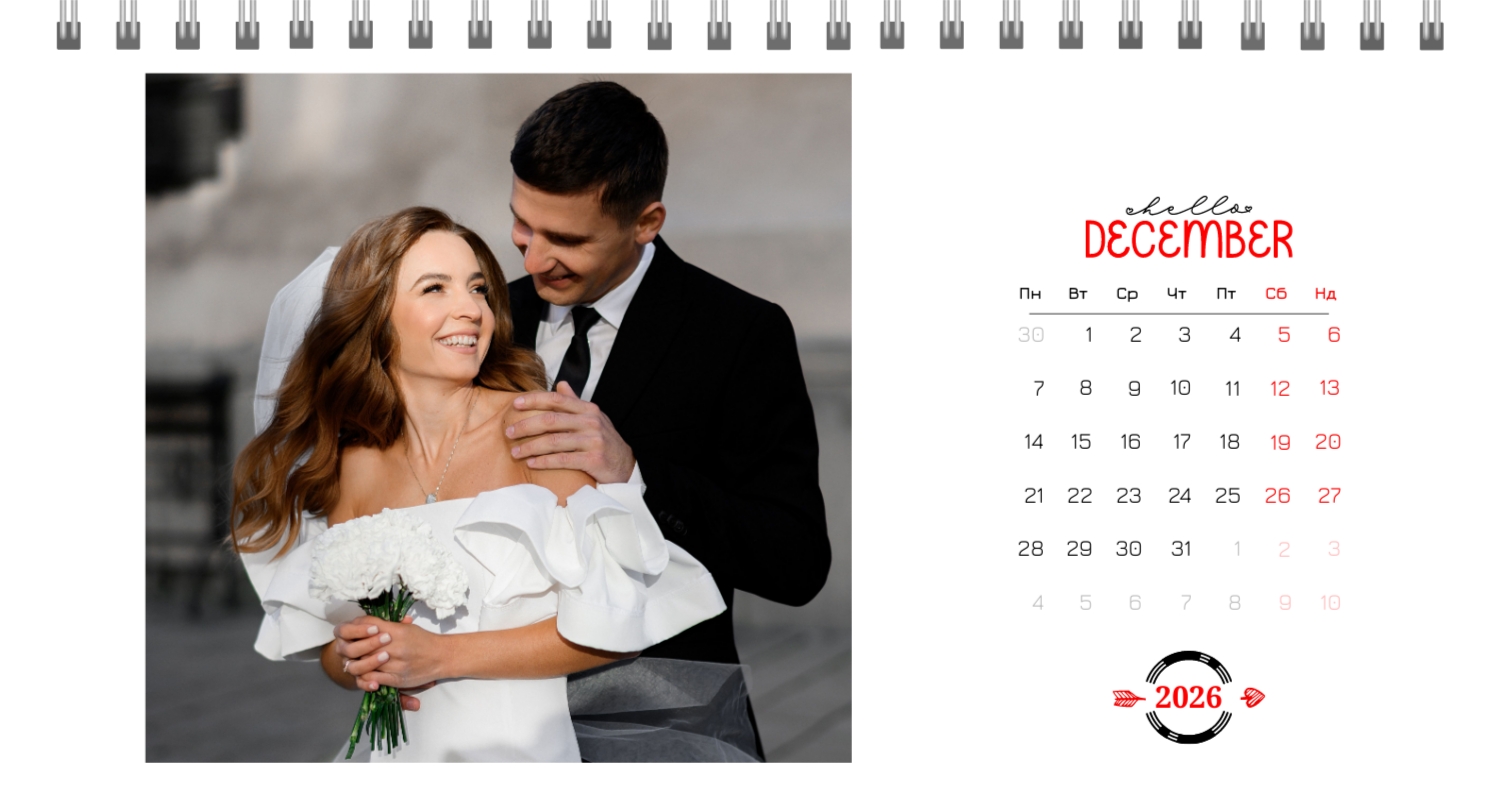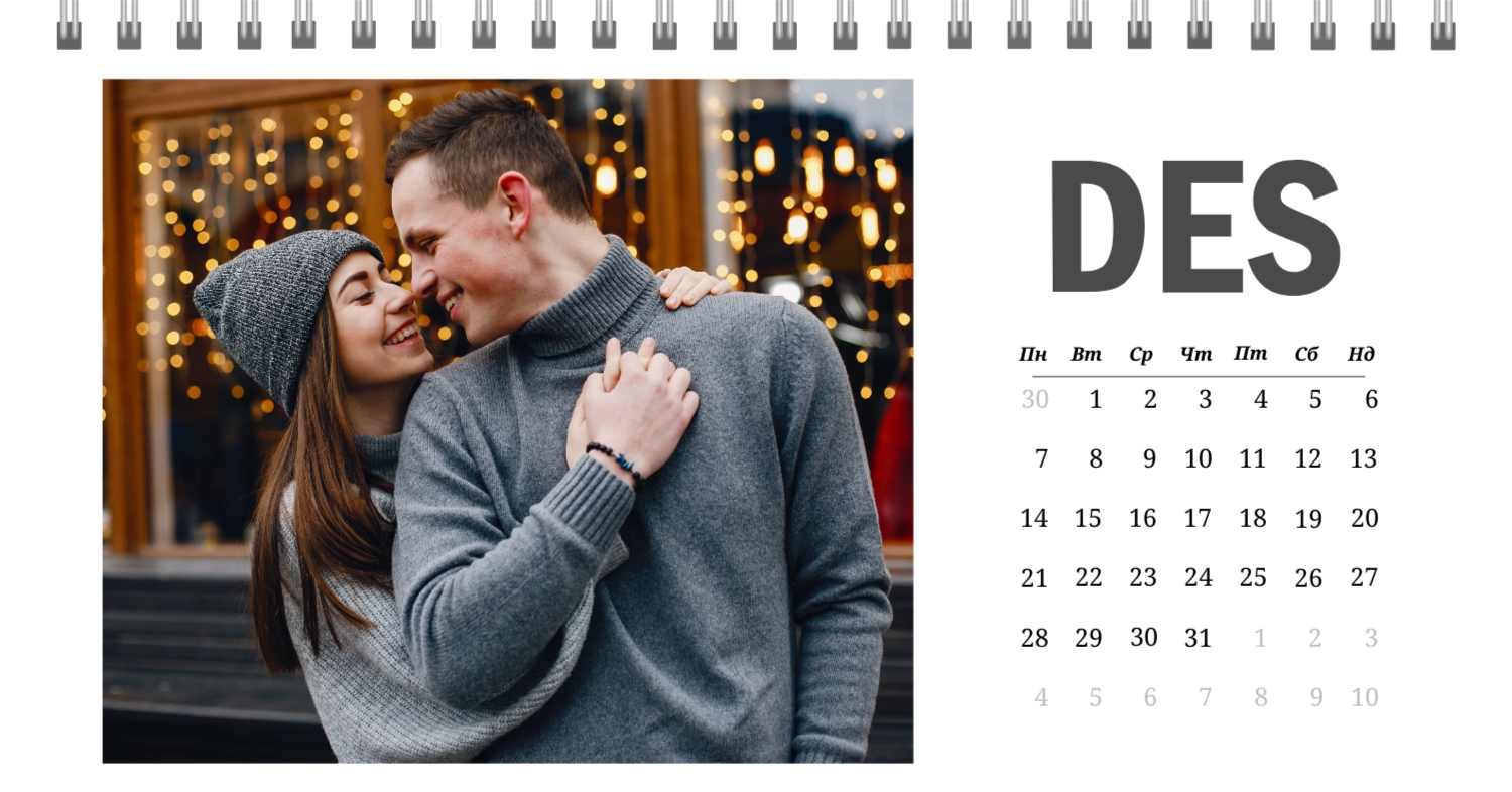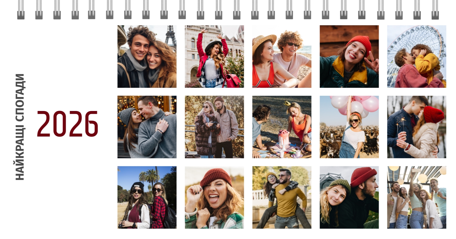 Безкоштовний шаблон календаря з найкращими спогадами закоханих. Створіть макет своїми руками в конструкторі календарів.