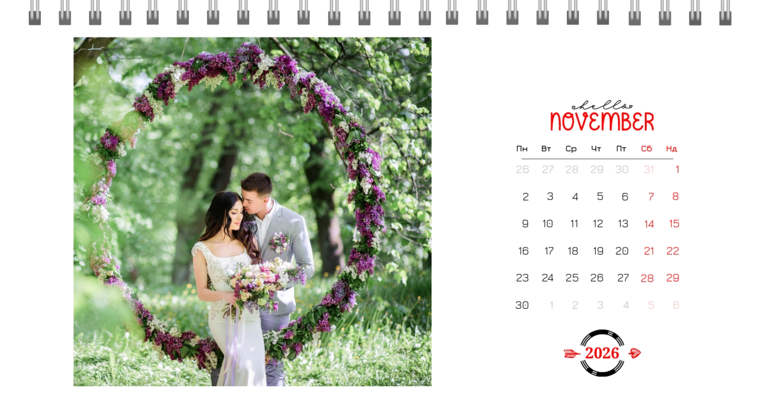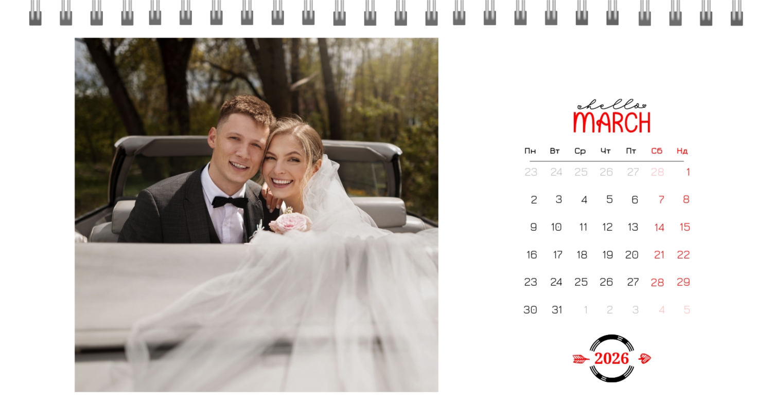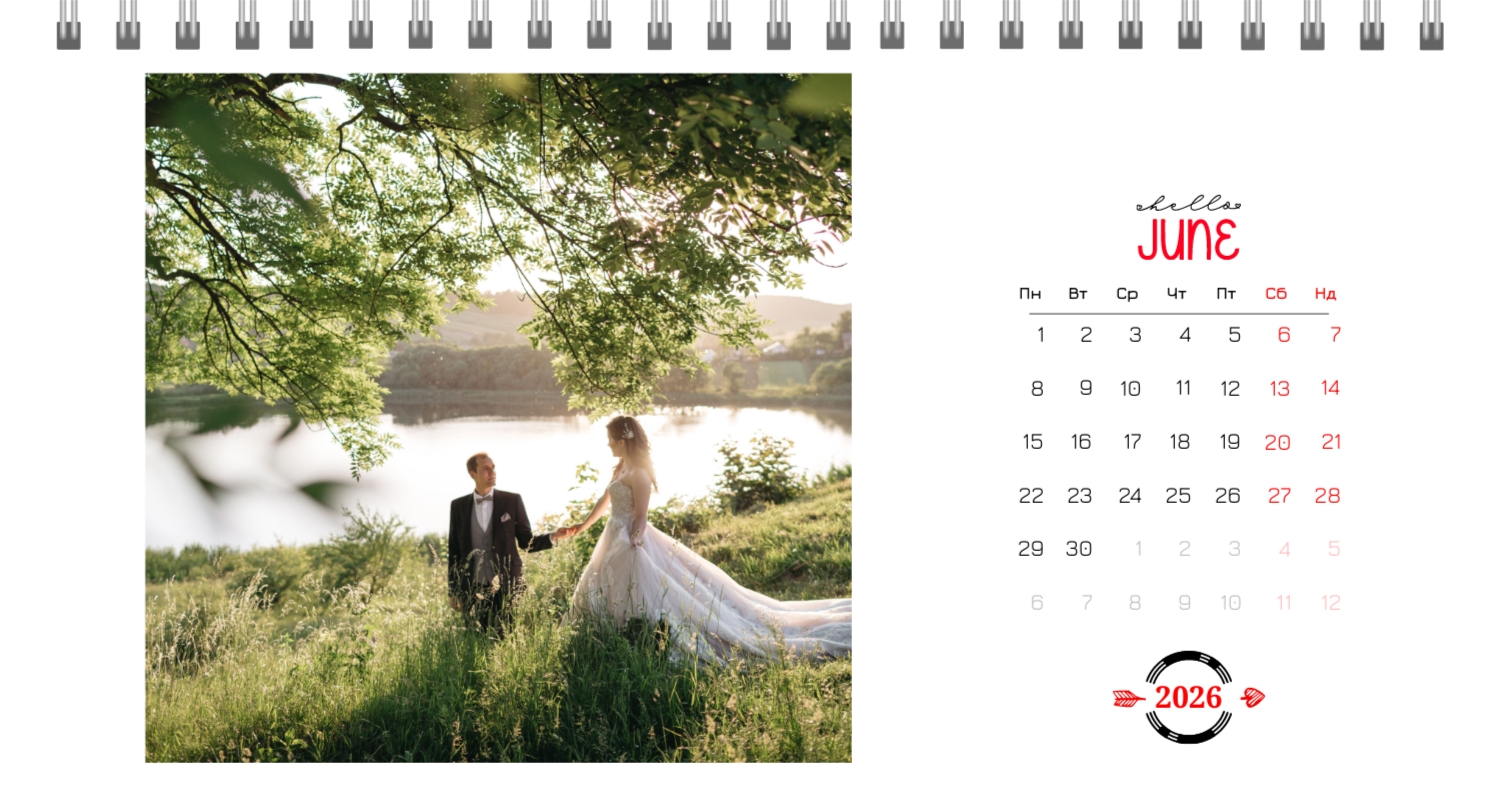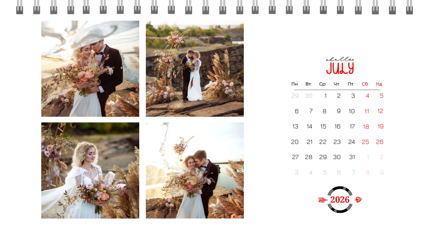 Безкоштовний шаблон календаря з найкращими спогадами закоханих. Створіть макет своїми руками в конструкторі календарів.