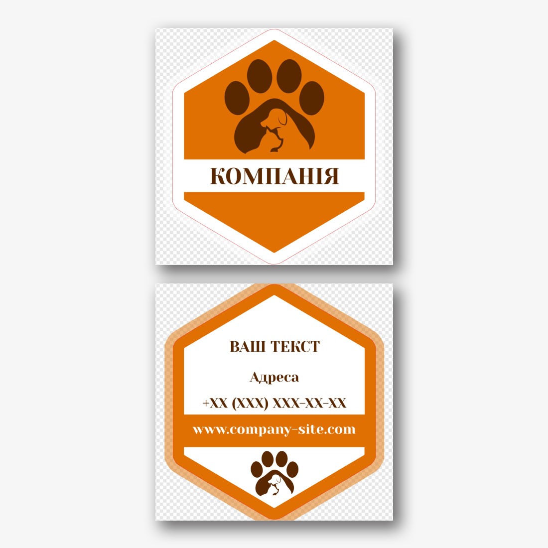 Фігурний шаблон візитки для екотоварів для тварин являє собою прекрасний інструмент для тих, хто прагне підкреслити екологічну усвідомленість свого бренду. Цей шаблон ідеально підходить для магазинів зоотоварів, ветеринарних клінік, благодійних організацій, добровольчих центрів і всіх, хто працює в області турботи про тварин і природу. В онлайн-конструкторі ви можете налаштувати кольори, шрифти, зображення і текст, щоб адаптувати візитку під свої потреби і переваги. Завдяки можливостям онлайн-конструктора ви можете легко додати свій логотип, зображення ваших продуктів або послуг, контактні дані, а також будь-яку іншу інформацію, яка допоможе представити ваш бізнес в найкращому світлі. Цей шаблон-ідеальне рішення для тих, хто хоче виділитися серед конкурентів завдяки оригінальному дизайну і увазі до екологічних аспектів. Створюйте унікальні візитки своїми руками і робіть перше враження незабутнім для ваших клієнтів і партнерів.