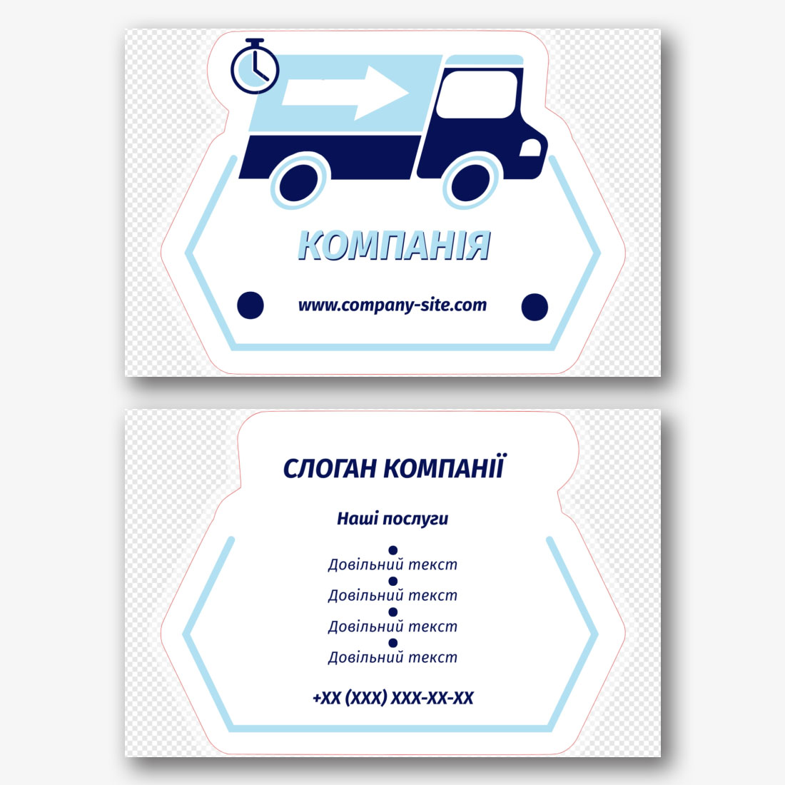 Шаблон фігурної візитки у формі вантажівки-це унікальне і креативне рішення для представників різних сфер бізнесу, пов'язаних з транспортуванням, логістикою, вантажоперевезеннями і автосервісом. Така візитка відразу привертає увагу і запам'ятовується, що особливо важливо в умовах високої конкуренції. Цей шаблон ідеально підходить для компаній та приватних підприємців, які хочуть виділитися серед своїх колег та клієнтів. Візитка у формі вантажівки підкреслює спеціалізацію бізнесу і створює позитивне враження про компанію, показуючи її оригінальність і професіоналізм. Наш онлайн-конструктор надає широкі можливості для редагування цього шаблону, дозволяючи створювати унікальні візитки своїми руками. У конструкторі можна легко змінити текст, додавши ім'я, посаду, контактну інформацію та логотип компанії. Ви також можете змінювати колірні схеми, підбираючи ті, які найкраще відповідають фірмовому стилю вашої компанії. Використовуючи готовий шаблон фігурної візитки у формі вантажівки, Ви економите час на розробку дизайну і можете зосередитися на інших важливих аспектах вашого бізнесу. Онлайн-конструктор інтуїтивно зрозумілий і не вимагає спеціальних навичок, тому створення візитки стане для вас простим і приємним процесом. Скористайтеся нашим конструктором, щоб створити візитку, яка буде працювати на Вас і Вашу компанію, залучаючи нових клієнтів і партнерів.