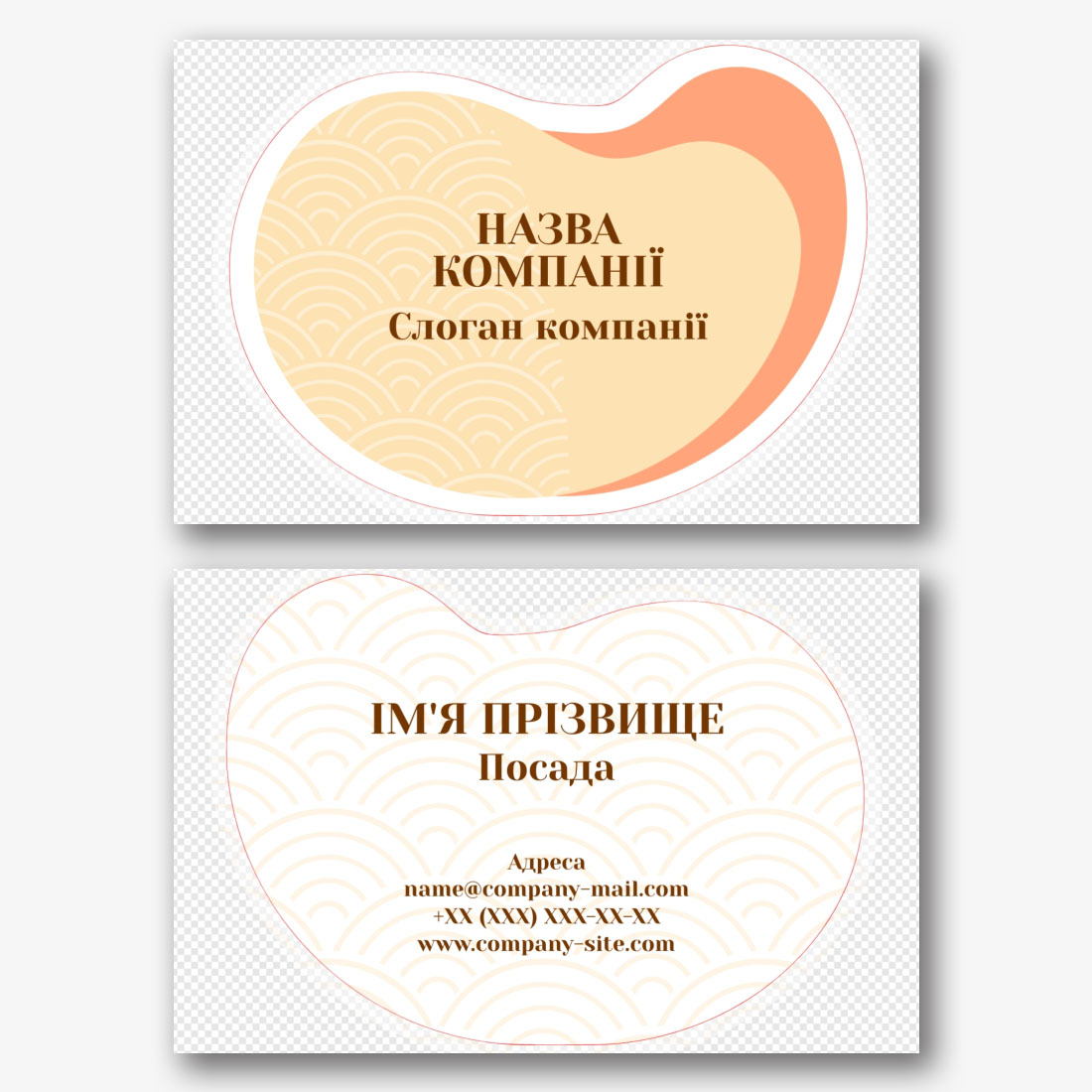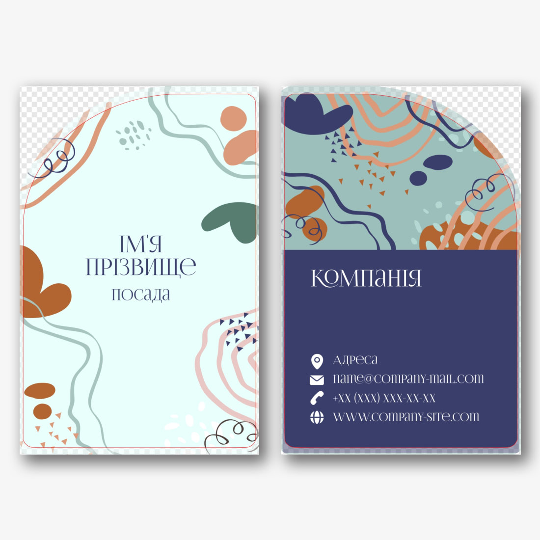 Готовий шаблон фігурної візитки в абстрактному стилі-це ідеальне рішення для тих, хто хоче виділитися і підкреслити свою індивідуальність. Такий шаблон Підходить для людей творчих професій, таких як художники, дизайнери, фотографи, а також для представників індустрії моди і краси. Його незвичайна форма і абстрактні елементи надають Візитці унікальність, привертаючи увагу і запам'ятовуючись. Наш онлайн-конструктор дозволяє легко і швидко адаптувати цей шаблон під ваші потреби. Ви можете змінювати форму візитної картки, підбираючи ту, яка найкраще відповідає вашому бренду чи особистим уподобанням. Фоновий малюнок і абстрактні елементи також легко піддаються редагуванню: ви можете змінити кольори, додати нові деталі або повністю замінити зображення на своє. Крім того, онлайн-конструктор надає великі можливості по редагуванню тексту. Ви можете вибрати шрифти з багатої бібліотеки, змінити їх розмір, колір і розташування. Це дозволяє створити візитну картку, яка відображатиме вашу особистість та стиль, а також відповідатиме корпоративним стандартам, якщо це необхідно.