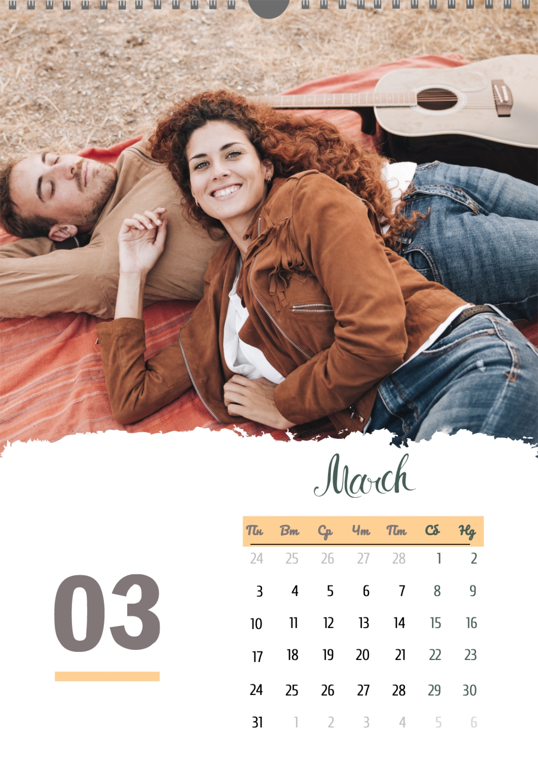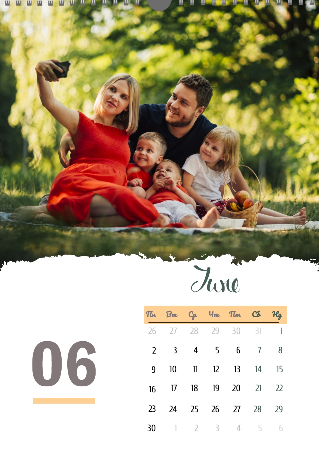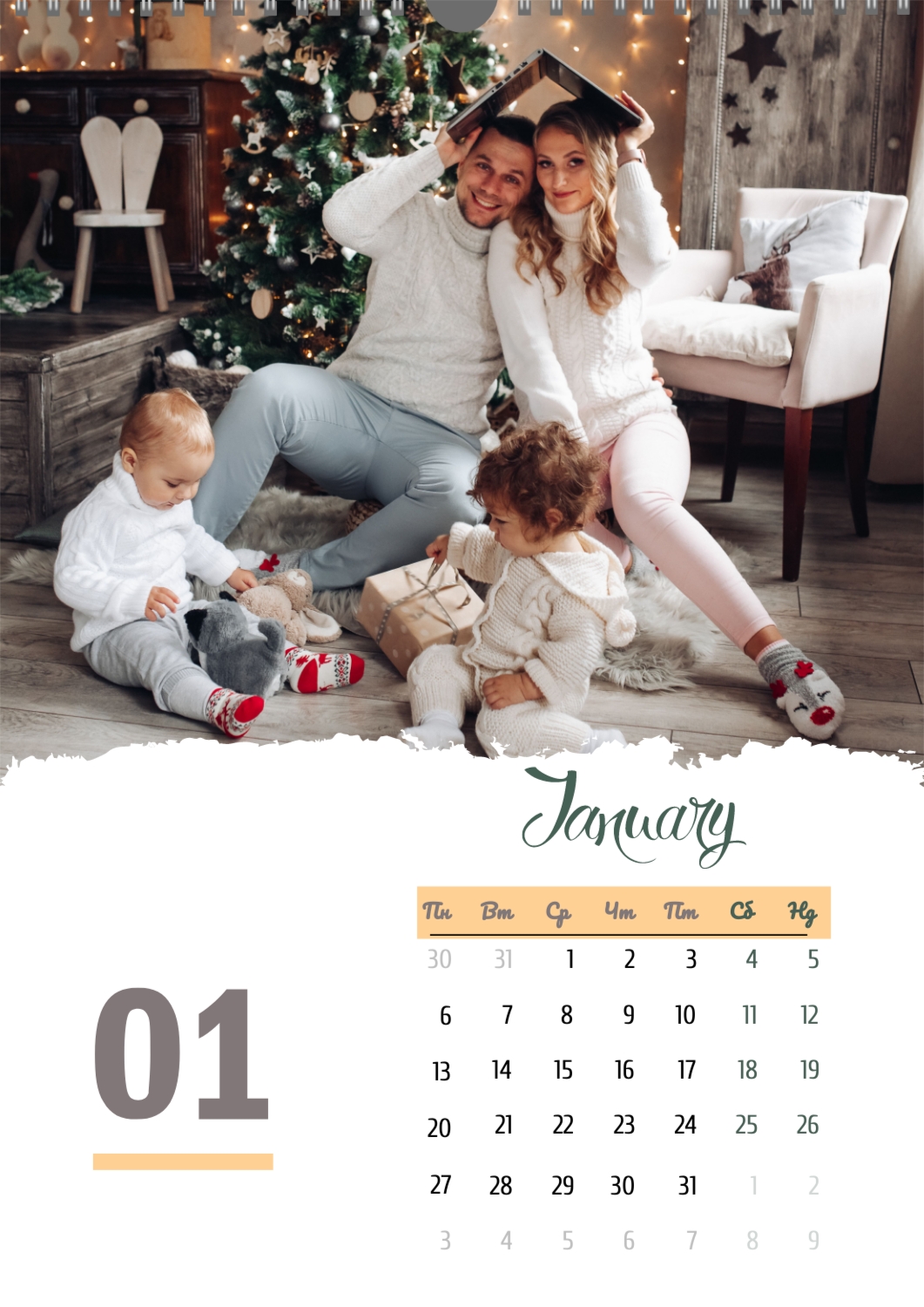 Готовий шаблон настінного сімейного календаря зі змією-це оригінальний і функціональний варіант для тих, хто хоче створити стильний і запам'ятовується календар. Основний акцент зроблений на зображенні змії, яке символізує мудрість, оновлення і гармонію. Такий дизайн відмінно впишеться як в сімейний альбом, так і в робочі простори. Особлива перевага цього вертикального шаблону полягає в широких можливостях редагування в онлайн-конструкторі. Ви можете змінити колірну палітру, підібрати інші шрифти або додати особисті фотографії для кожного місяця. Конструктор дозволяє легко і швидко адаптувати шаблон під ваші потреби: будь то додавання пам'ятних дат, виділення свят або внесення професійних заміток. Завдяки інтуїтивно зрозумілим інструментам редагування створення унікального календаря стає простим і захоплюючим процесом. Цей шаблон-універсальне рішення для тих, хто цінує не тільки функціональність, але і індивідуальний підхід. Використовуйте наш онлайн-конструктор, щоб зробити сімейний календар зі змією повністю вашим — відображає ваші інтереси, стиль і життєві пріоритети.