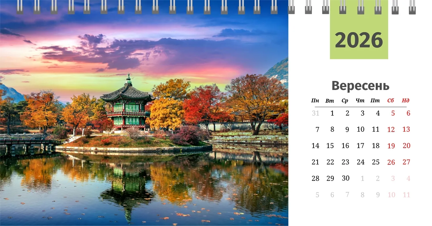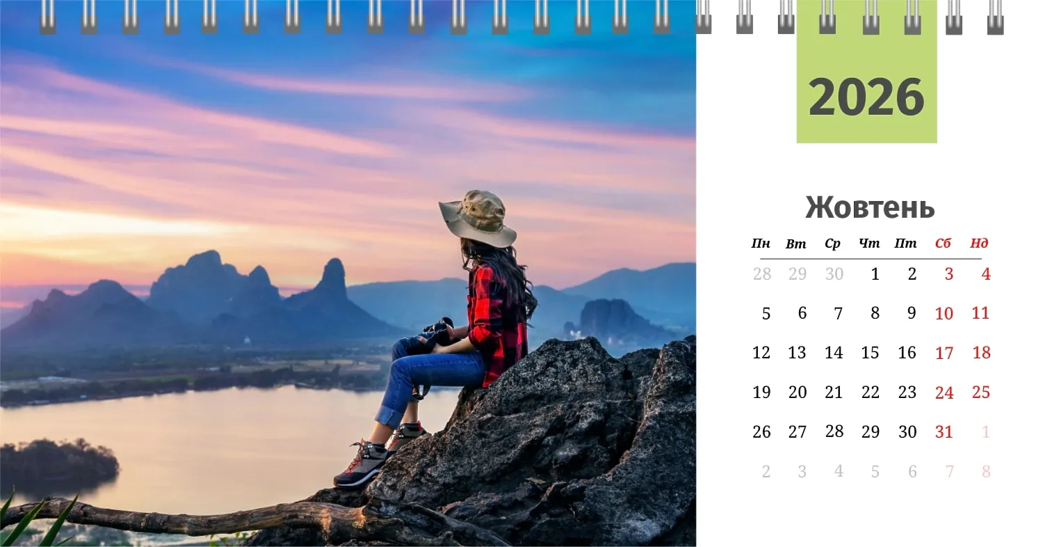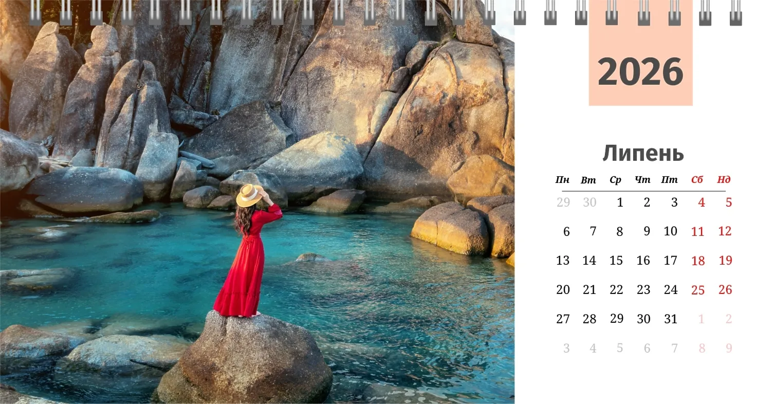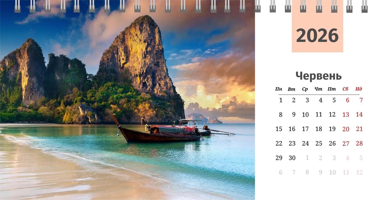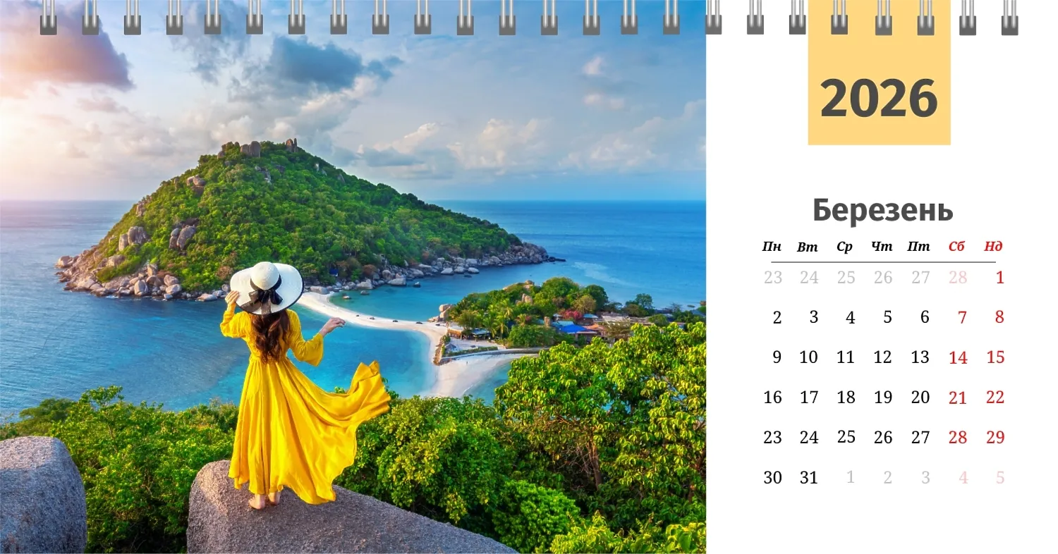 Безкоштовний шаблон календаря-будиночка перекидного онлайн для реклами турагентства. Створіть макет своїми руками в онлайн-конструкторі календарів.
