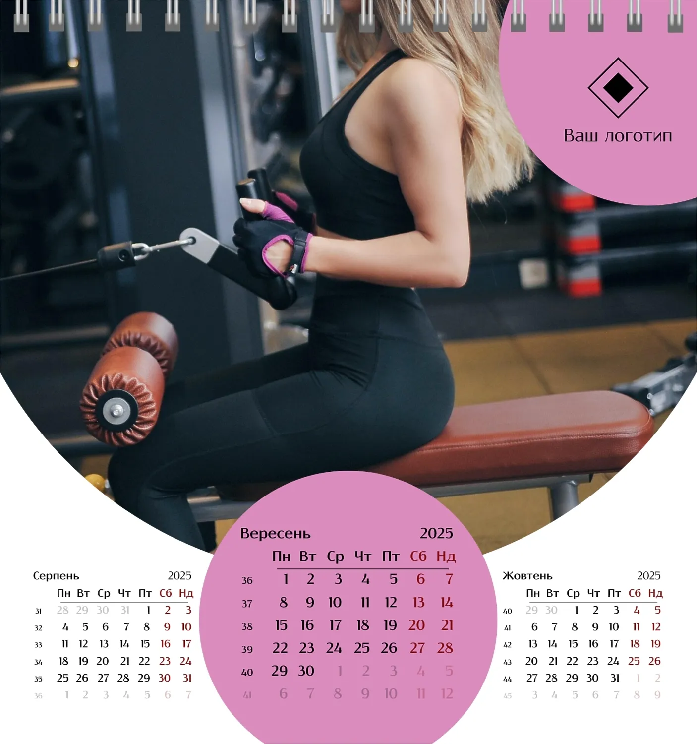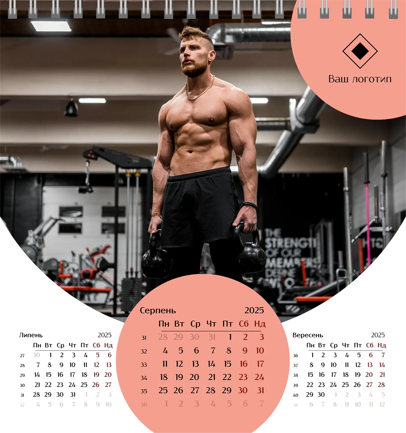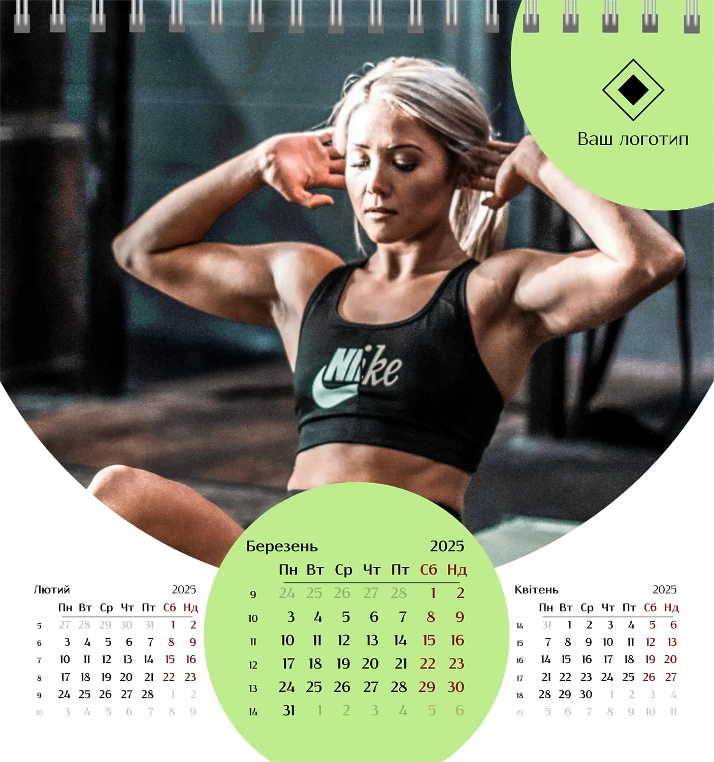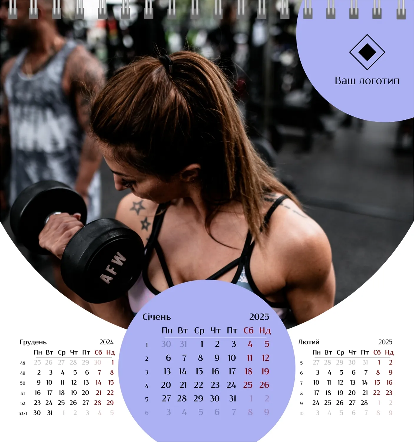 Безкоштовний шаблон календаря-будиночка онлайн для реклами фітнес-клубів. Створіть макет власноруч у конструкторі календарів.