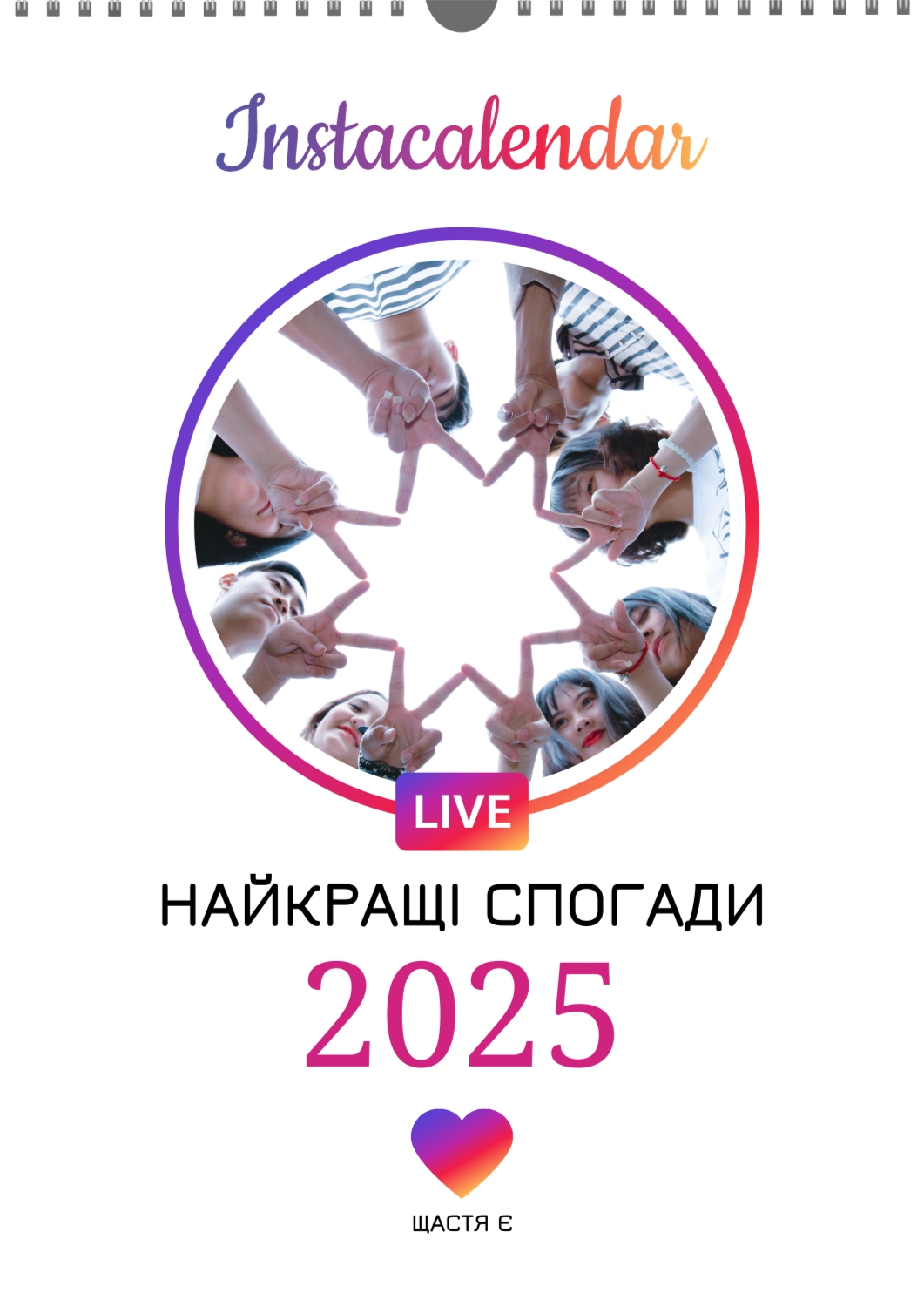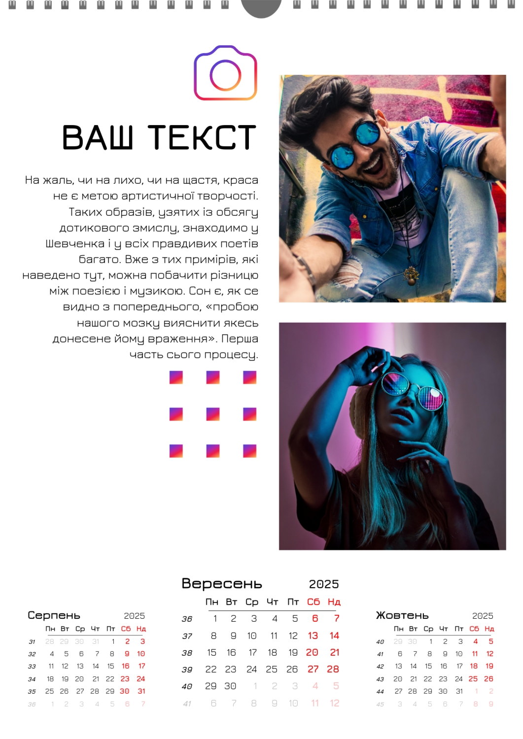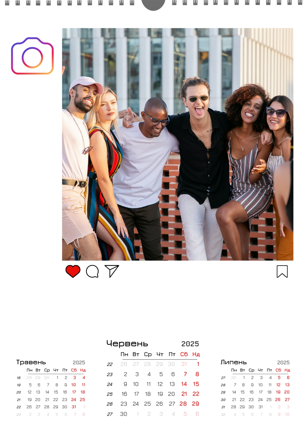 Безкоштовний шаблон календаря з пам'ятними моментами у стилі інстаграм. Створіть макет власноруч в онлайн-конструкторі календарів.