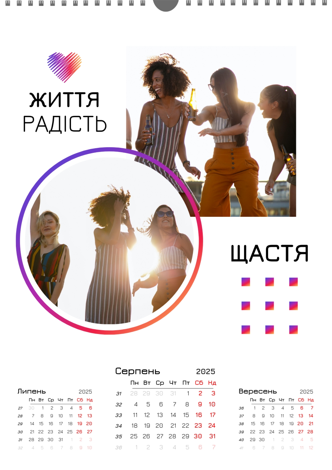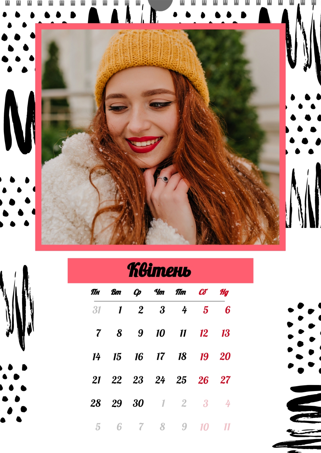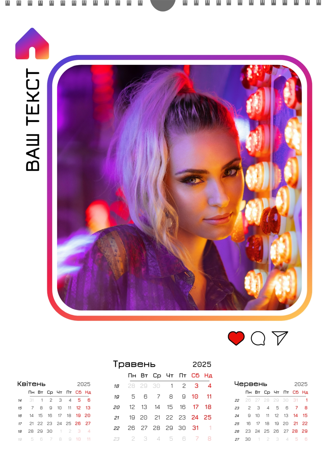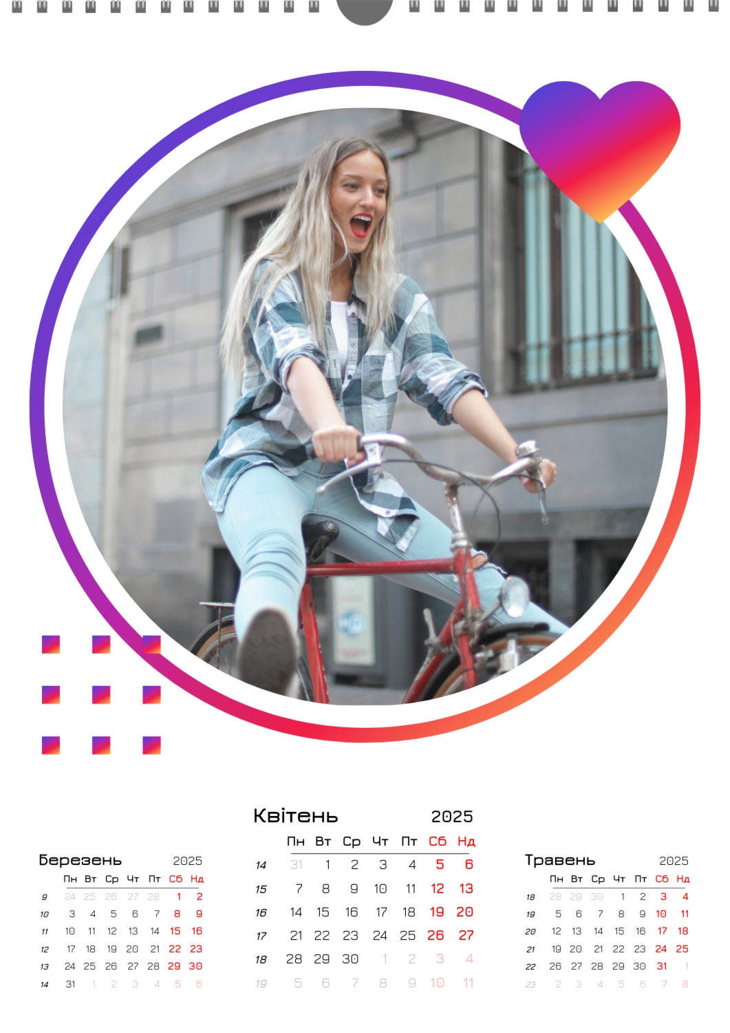 Безкоштовний шаблон календаря з пам'ятними моментами у стилі інстаграм. Створіть макет власноруч в онлайн-конструкторі календарів.