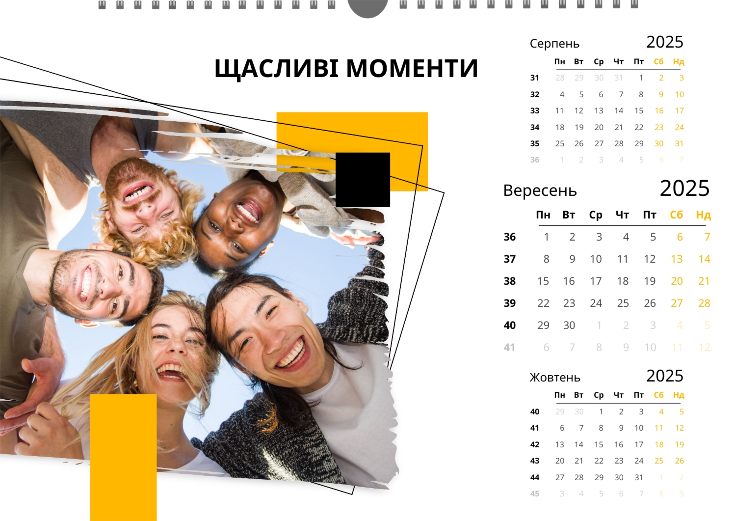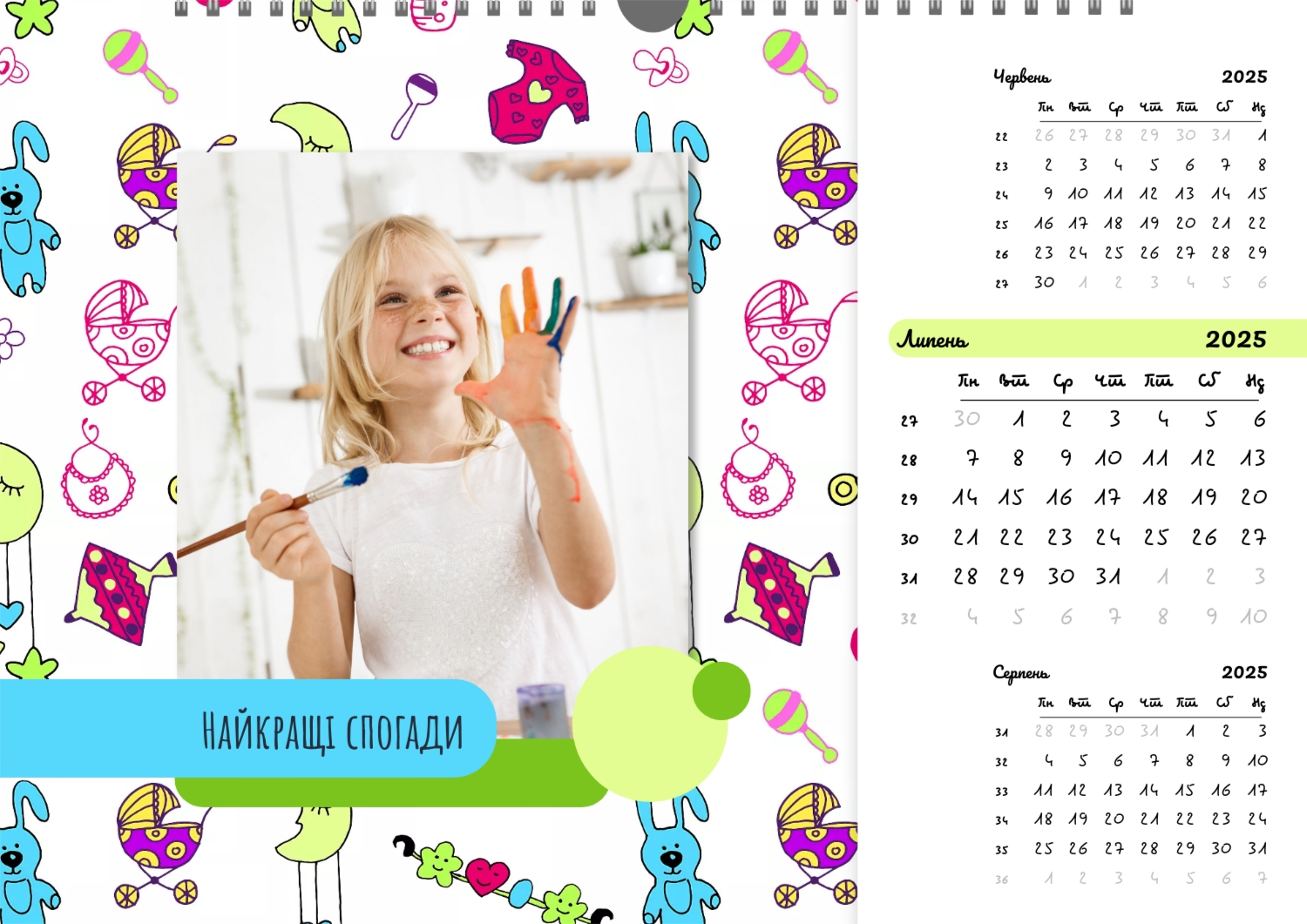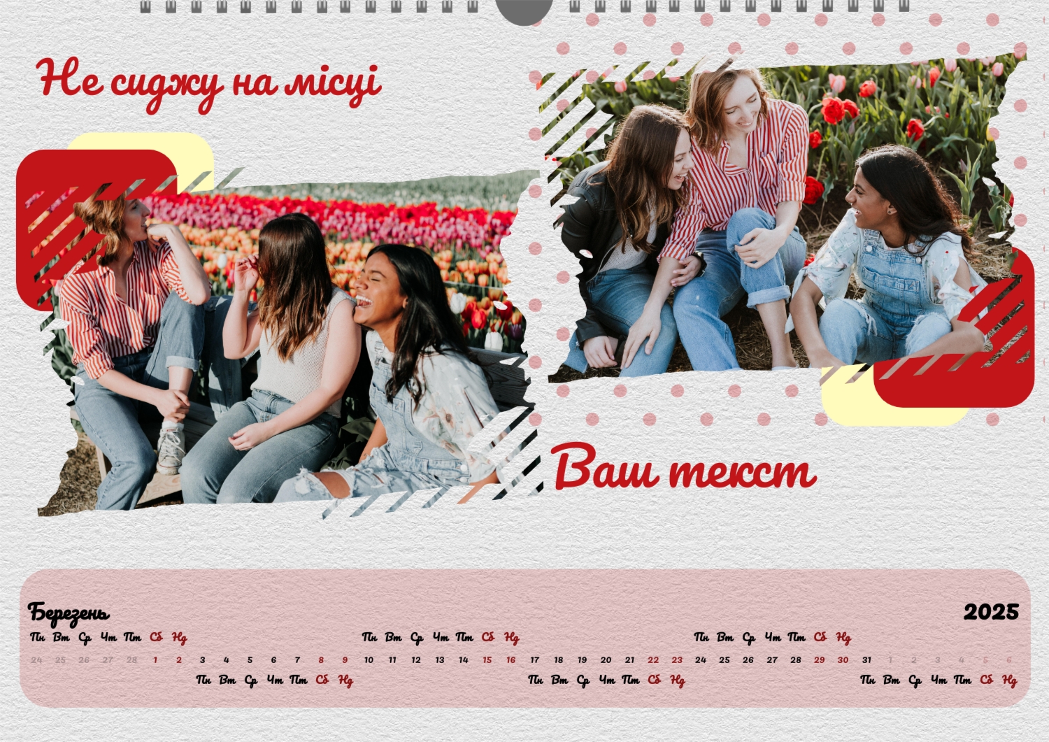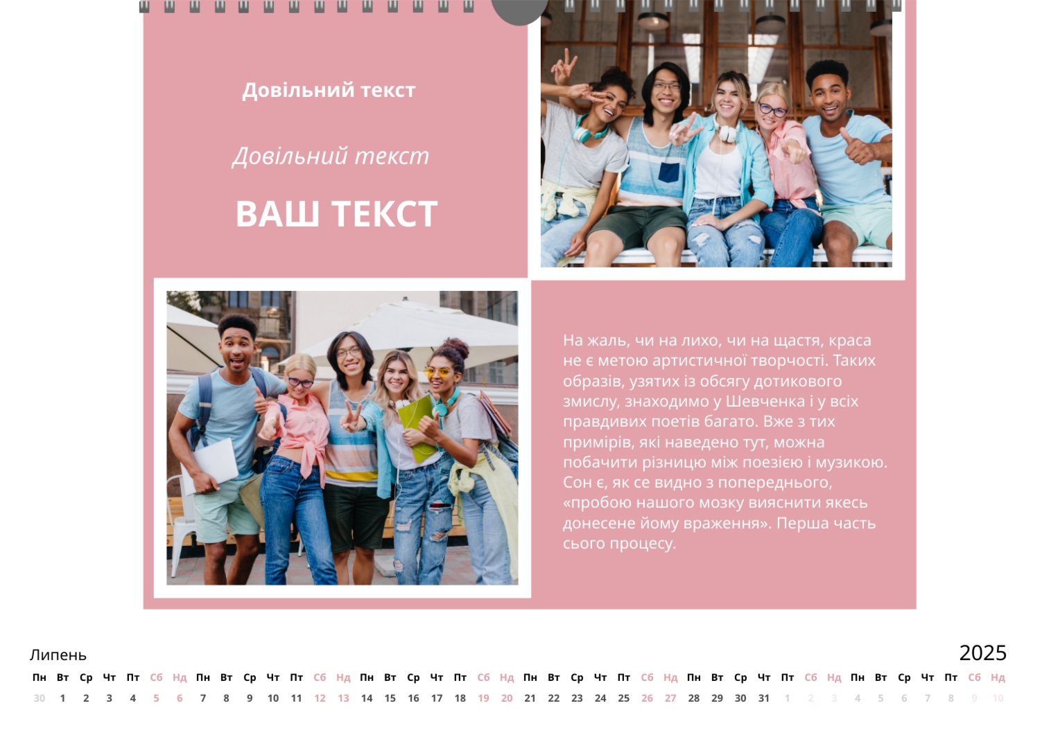 Безкоштовний шаблон колективного шкільного настінного календаря онлайн для класу або групи. Створіть макет власноруч в онлайн-конструкторі календарів.
