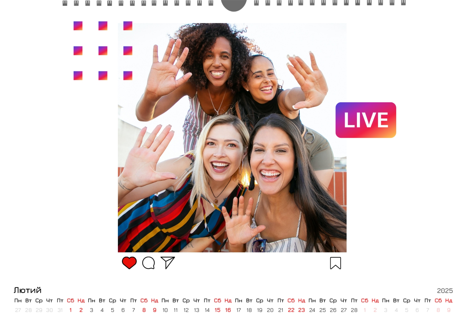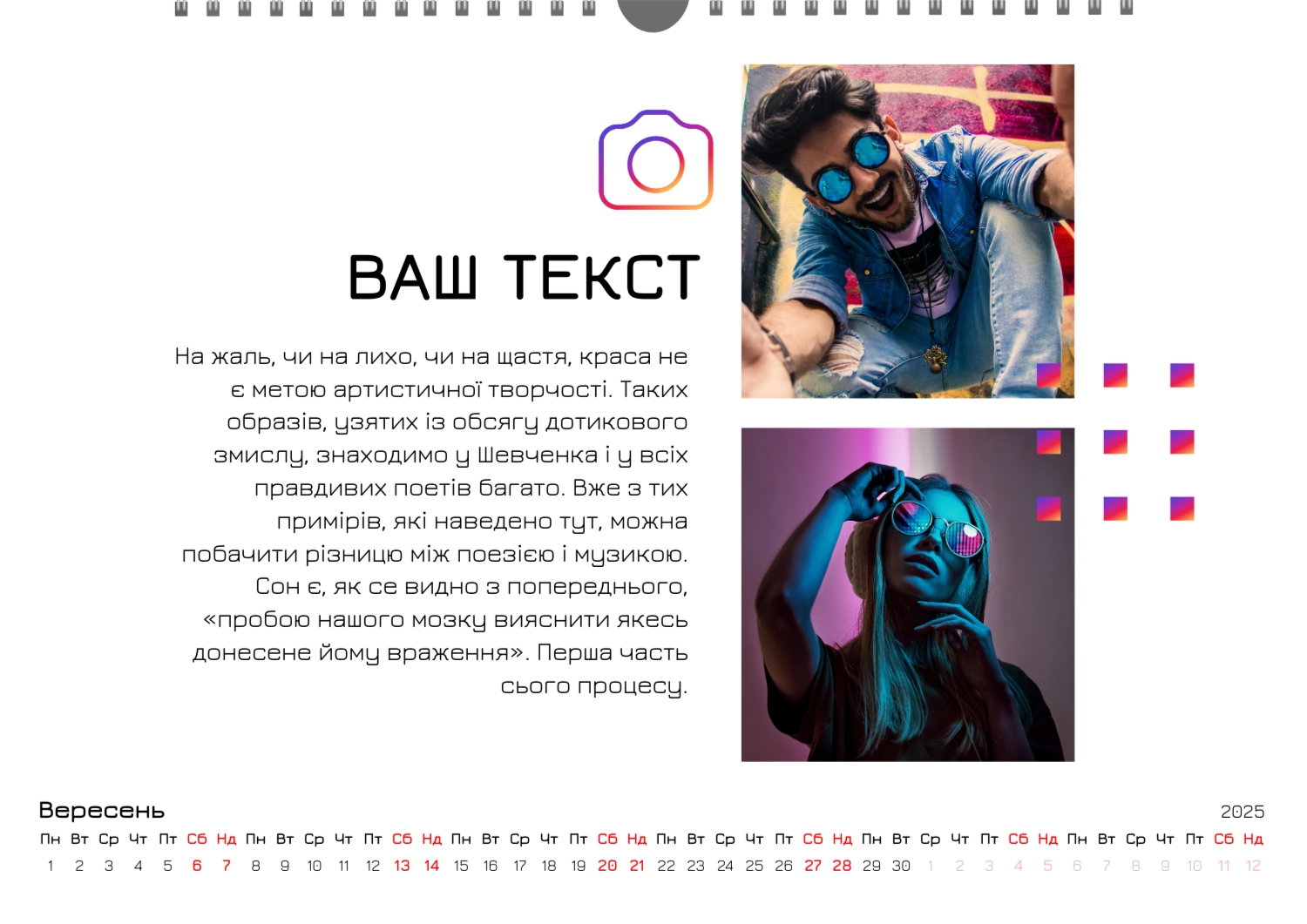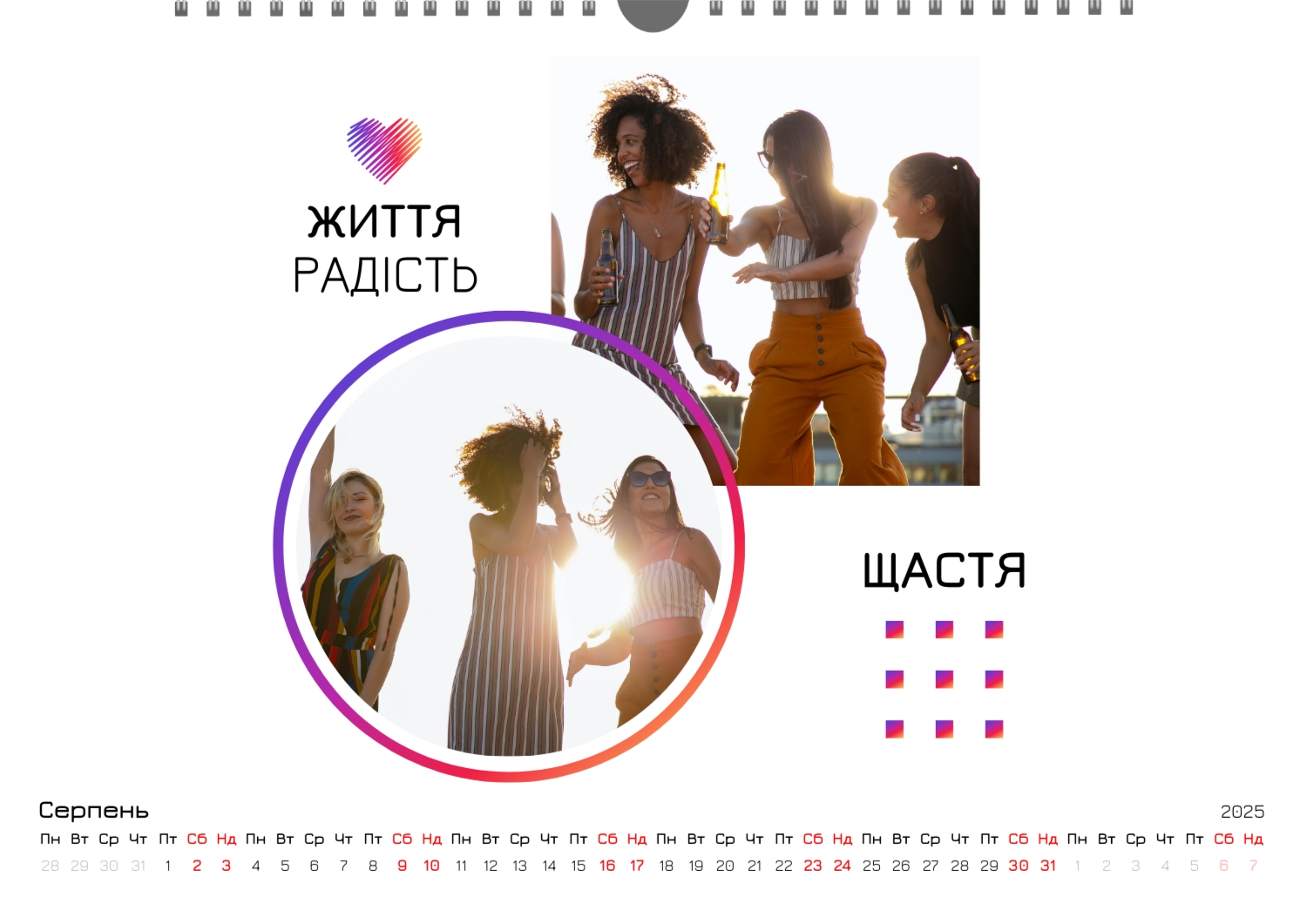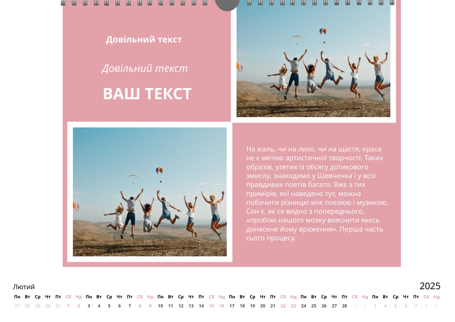 Безкоштовний шаблон колективного шкільного настінного календаря онлайн для класу або групи. Створіть макет власноруч в онлайн-конструкторі календарів.