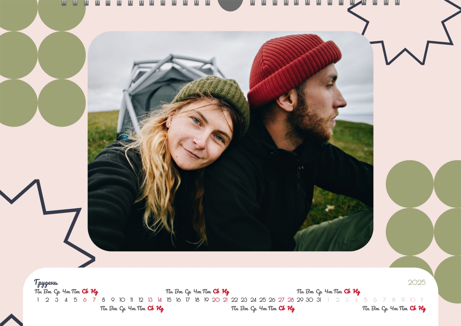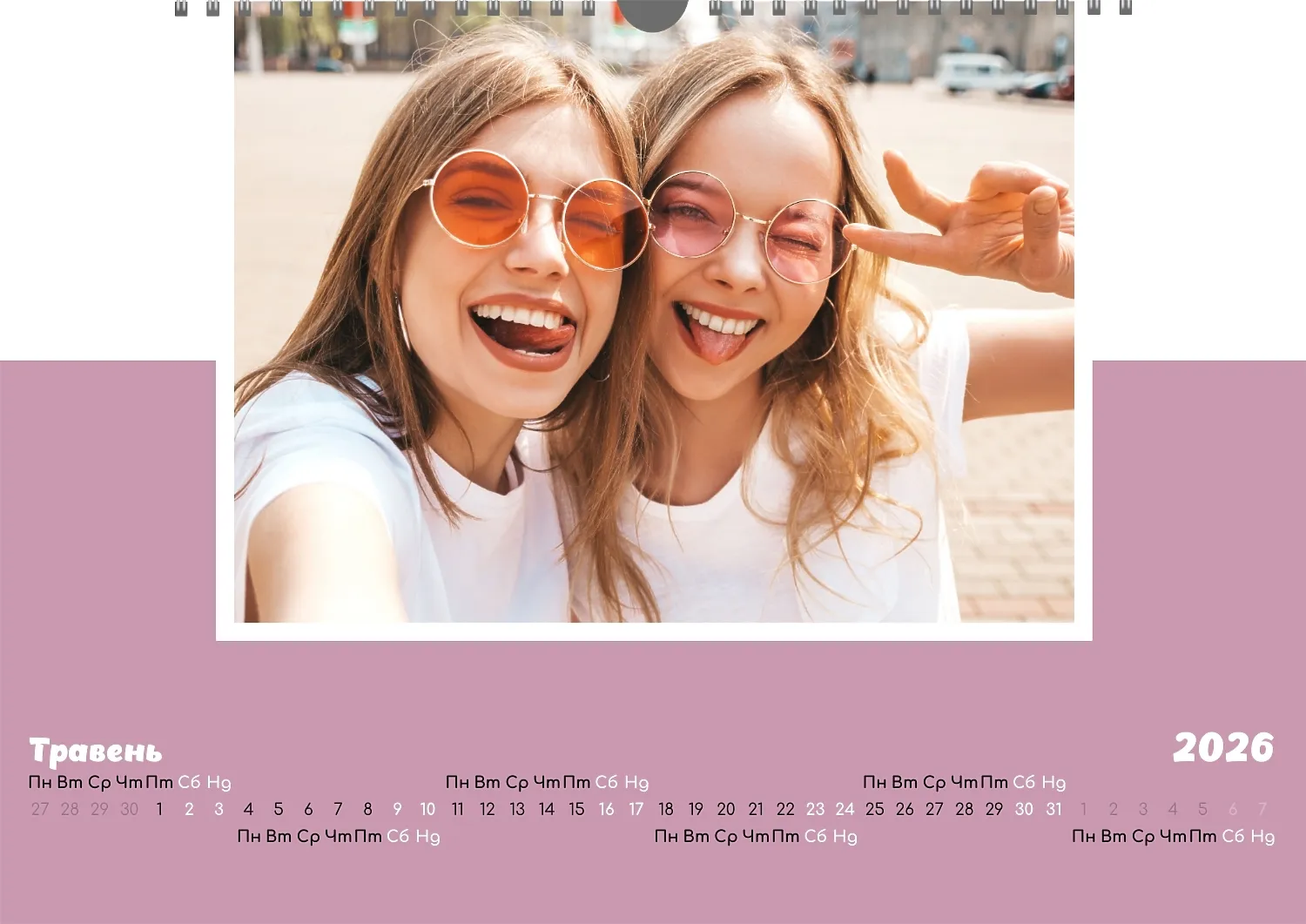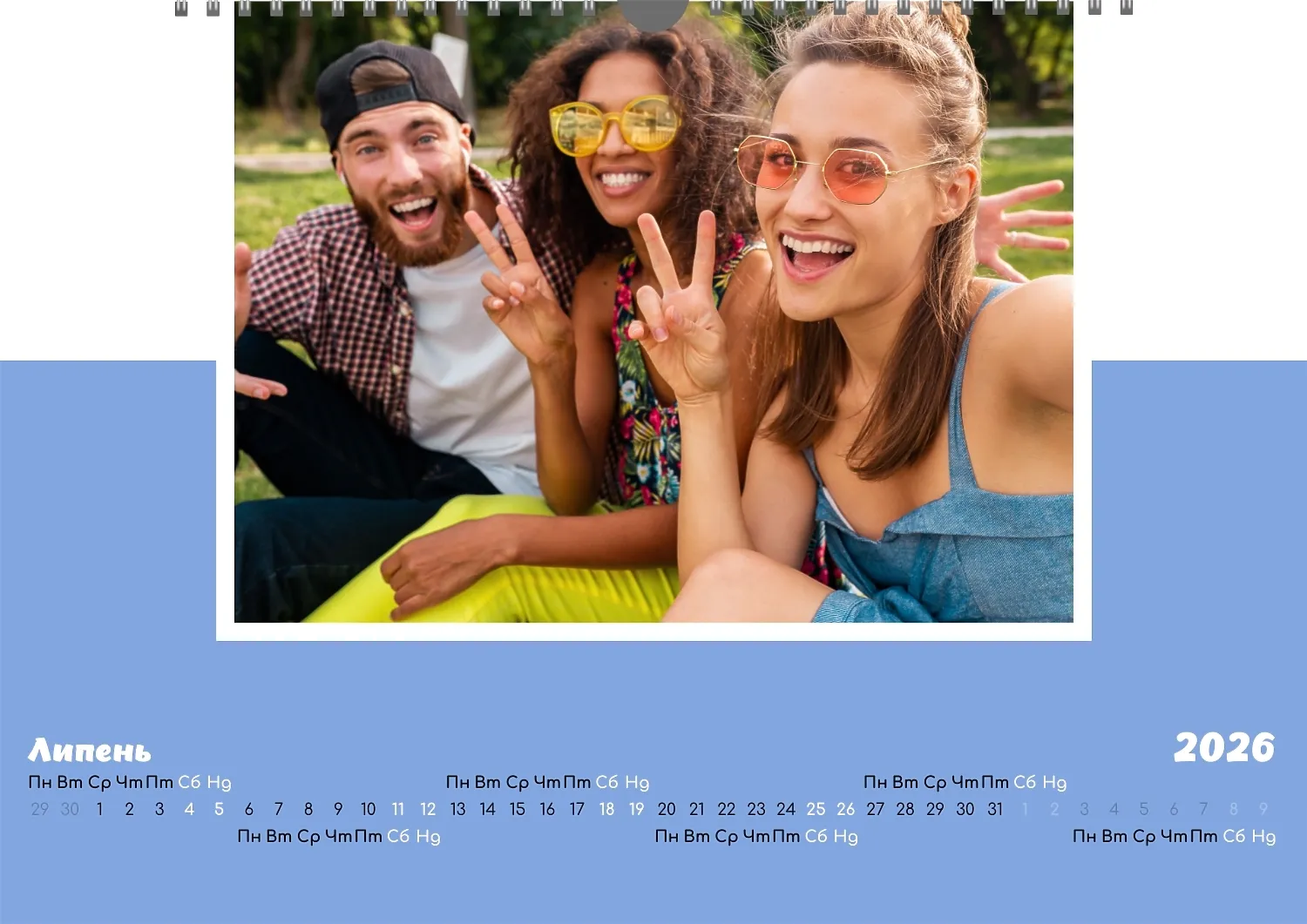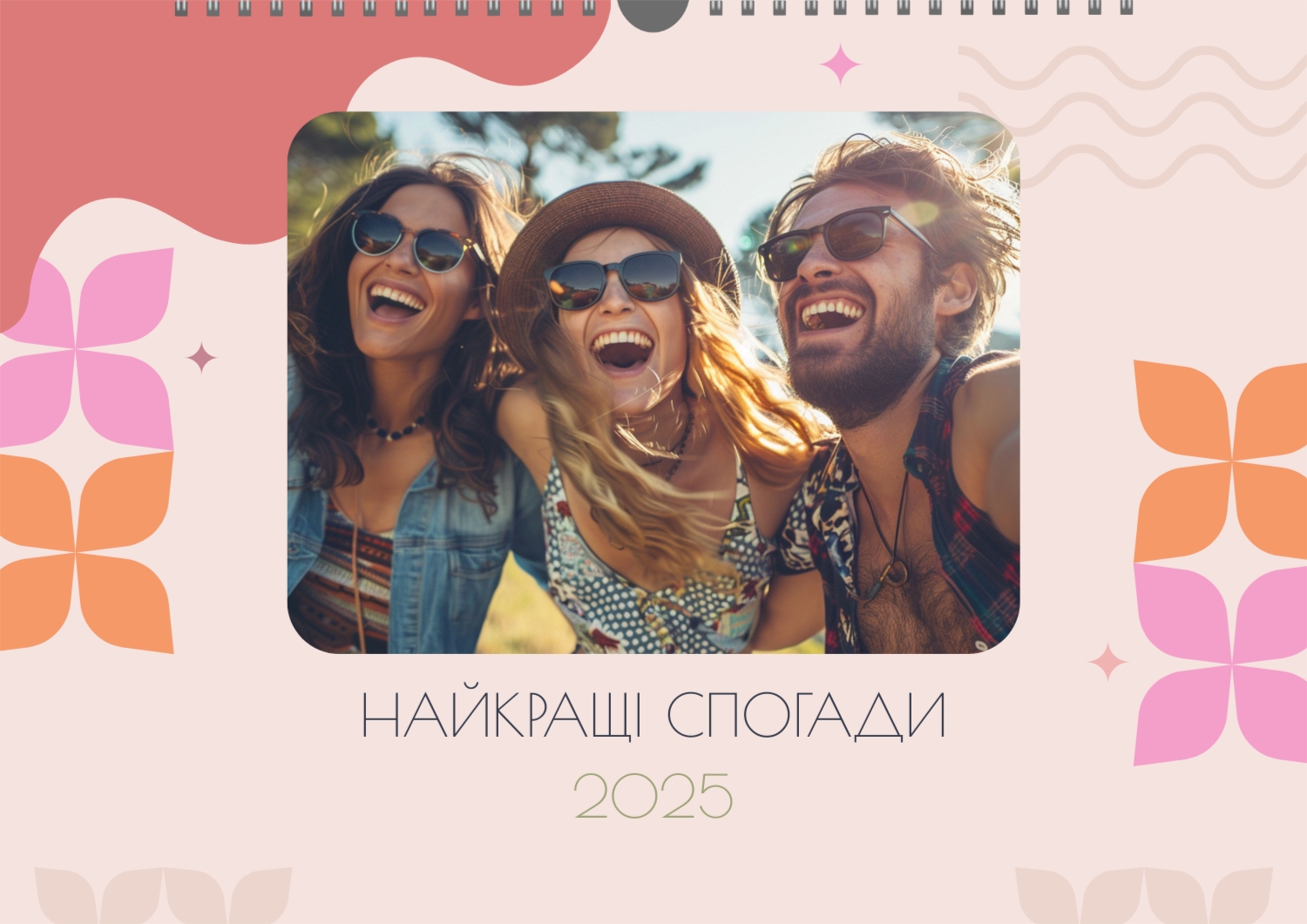Безкоштовний шаблон календаря зі спільними спогадами друзів. Створіть макет власноруч в онлайн-конструкторі календарів.