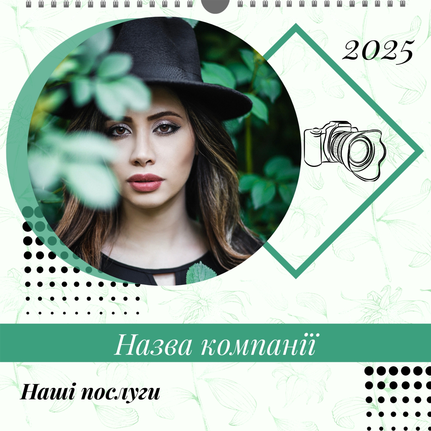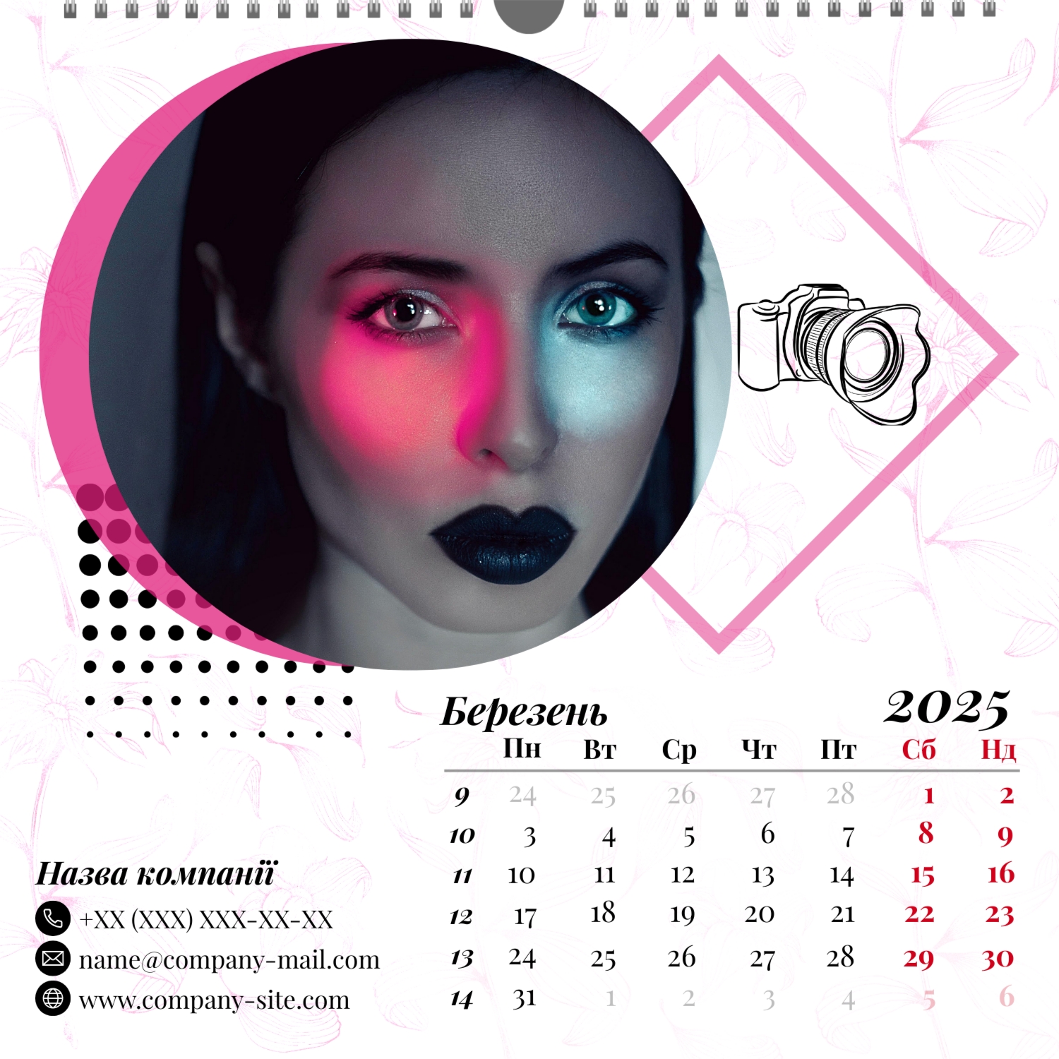 Безкоштовний шаблон настінного календаря-портфоліо для фотостудій, фотографів і фотохудожників, з можливістю редагування його в конструкторі календарів.